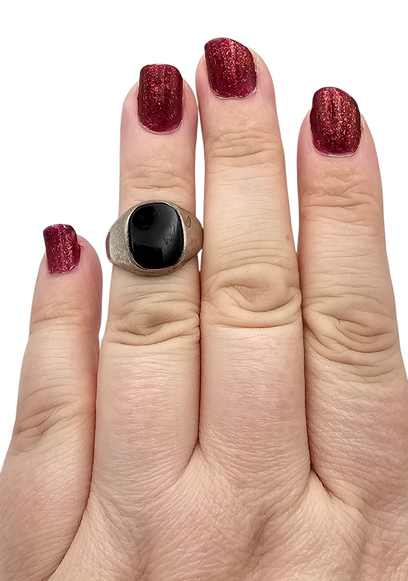 Signed MLT Black Rhinestone Sterling Silver Ring Size 6 4 G