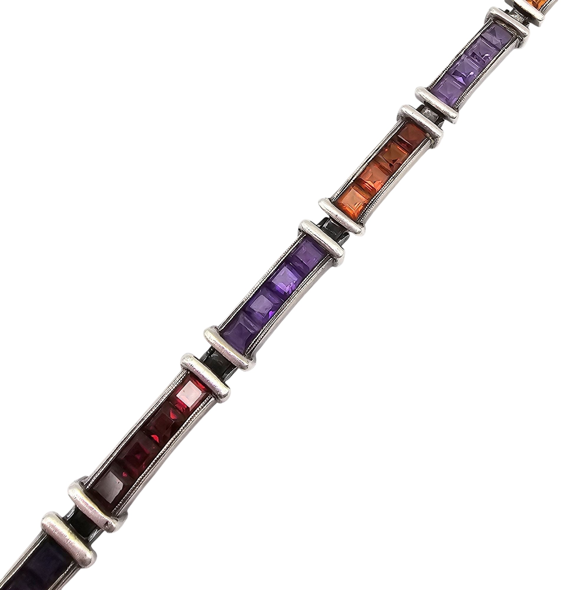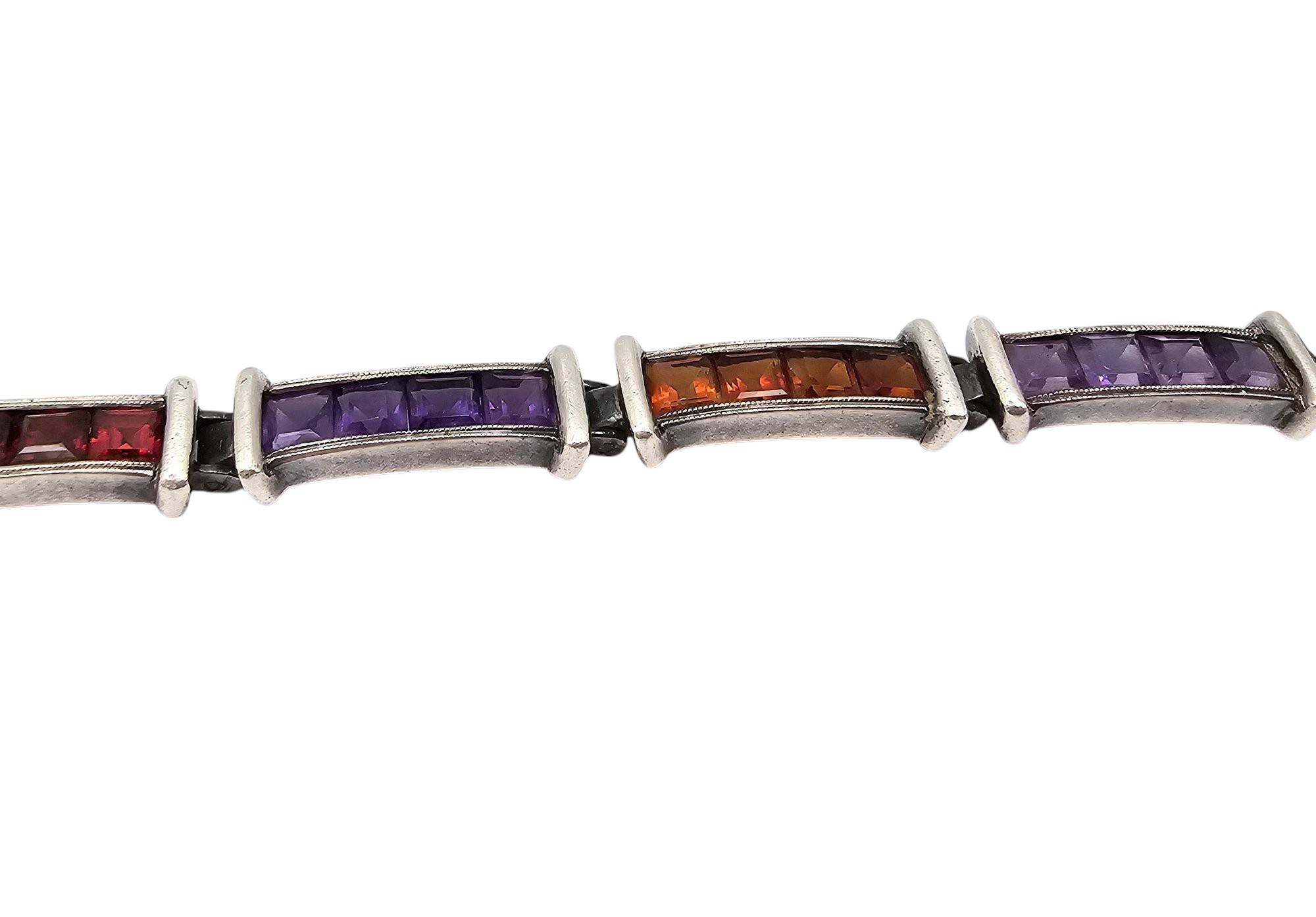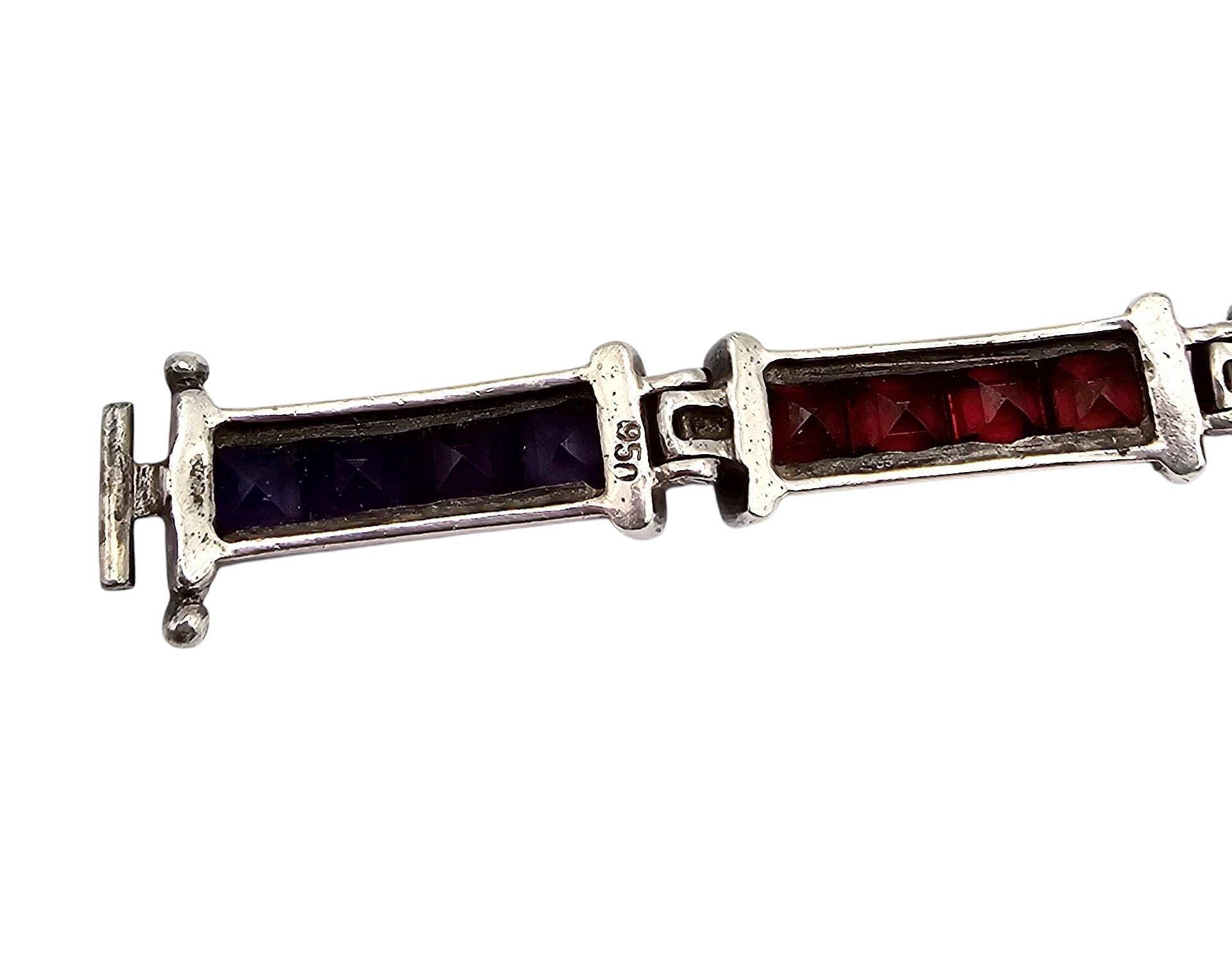 Amethyst Tourmaline 950 Silver Link Bracelet 26.9 G