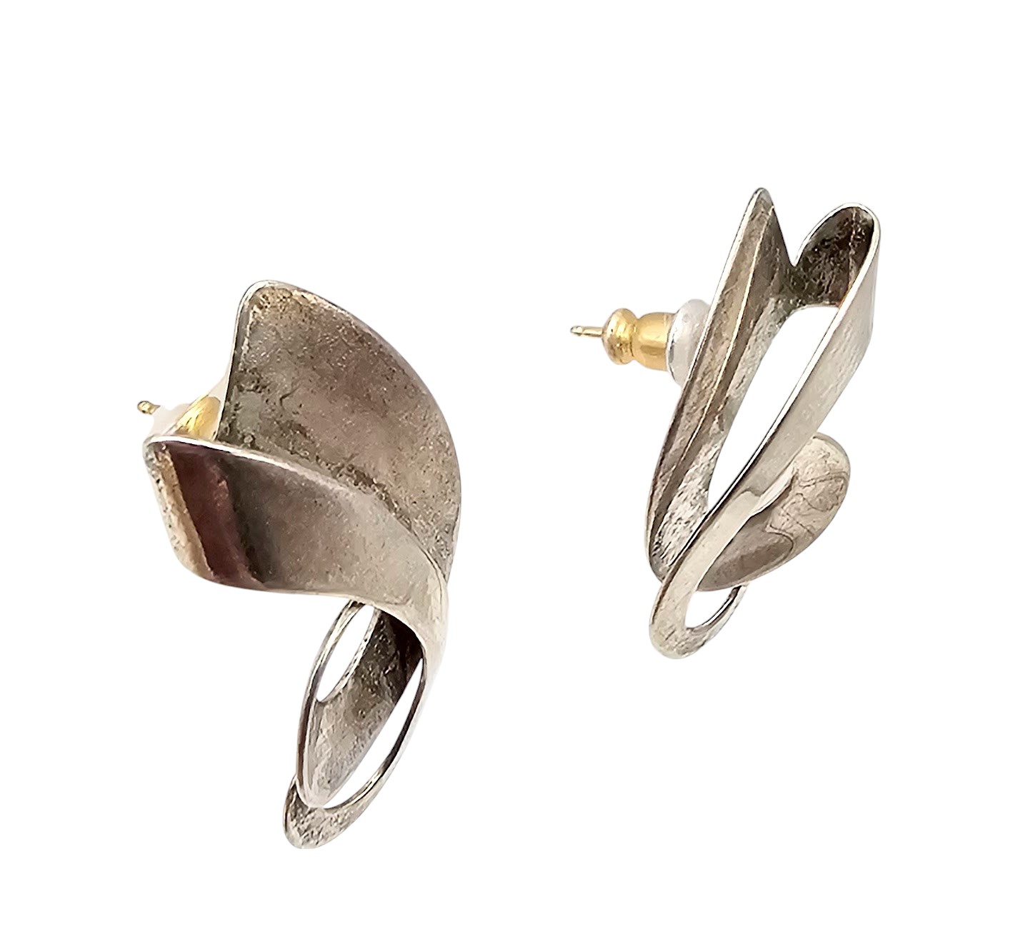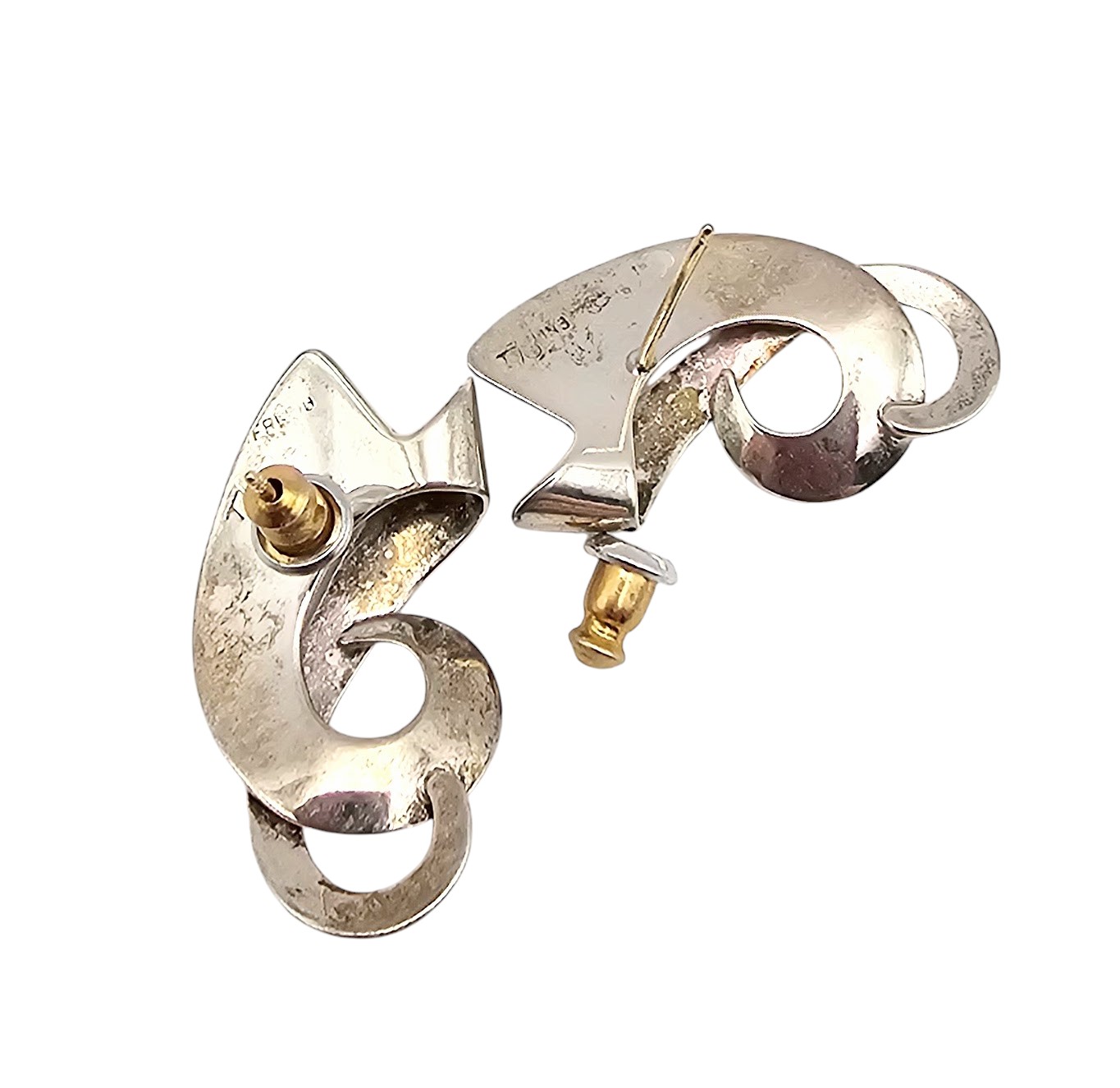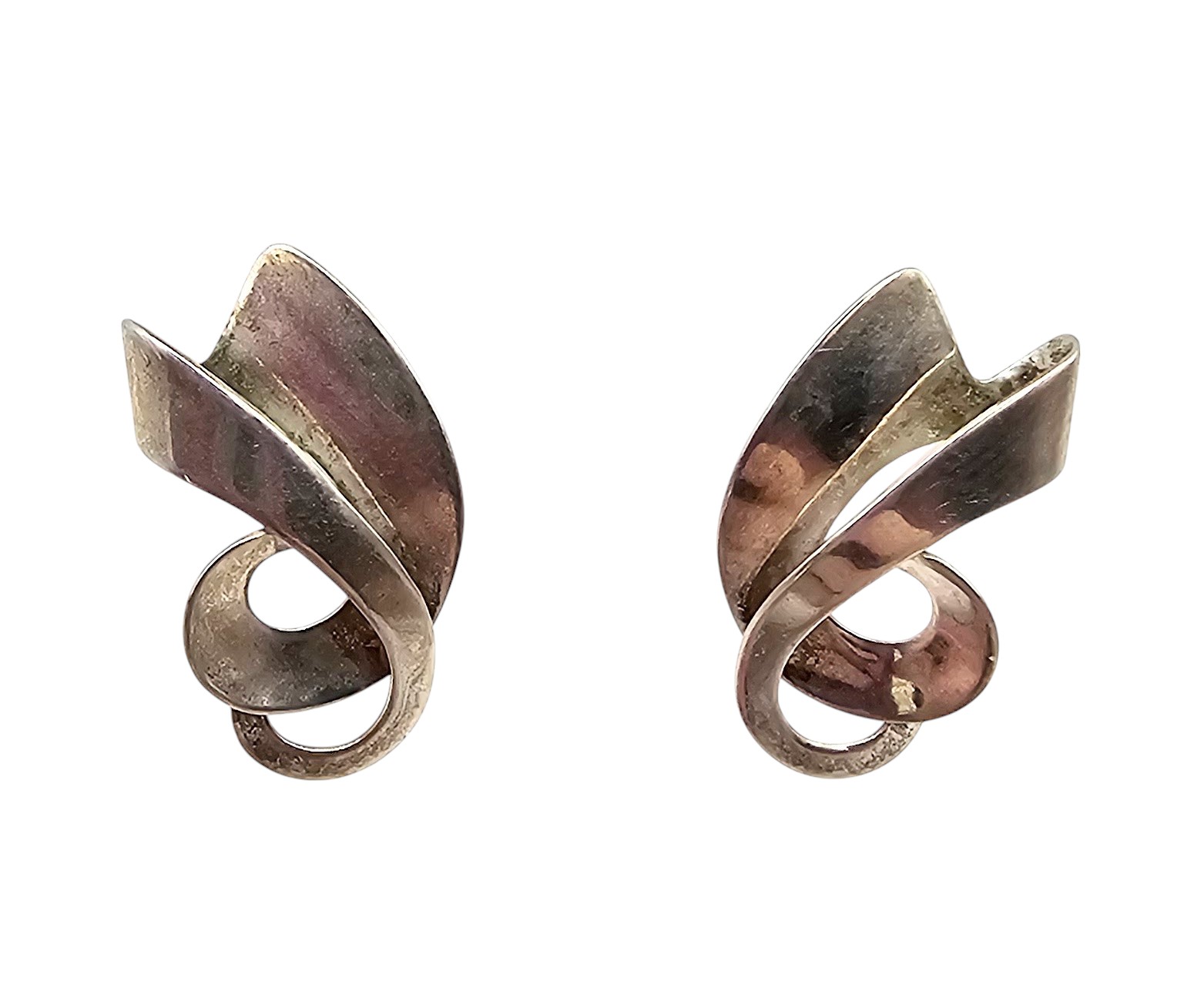 Signed Sterling Silver Swirl Earrings 3.1 G