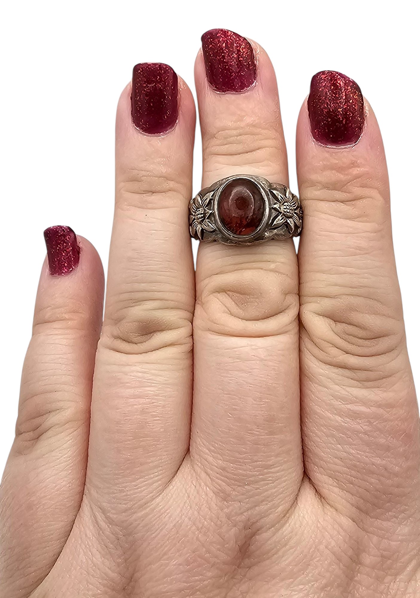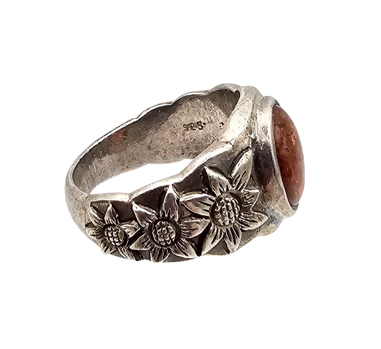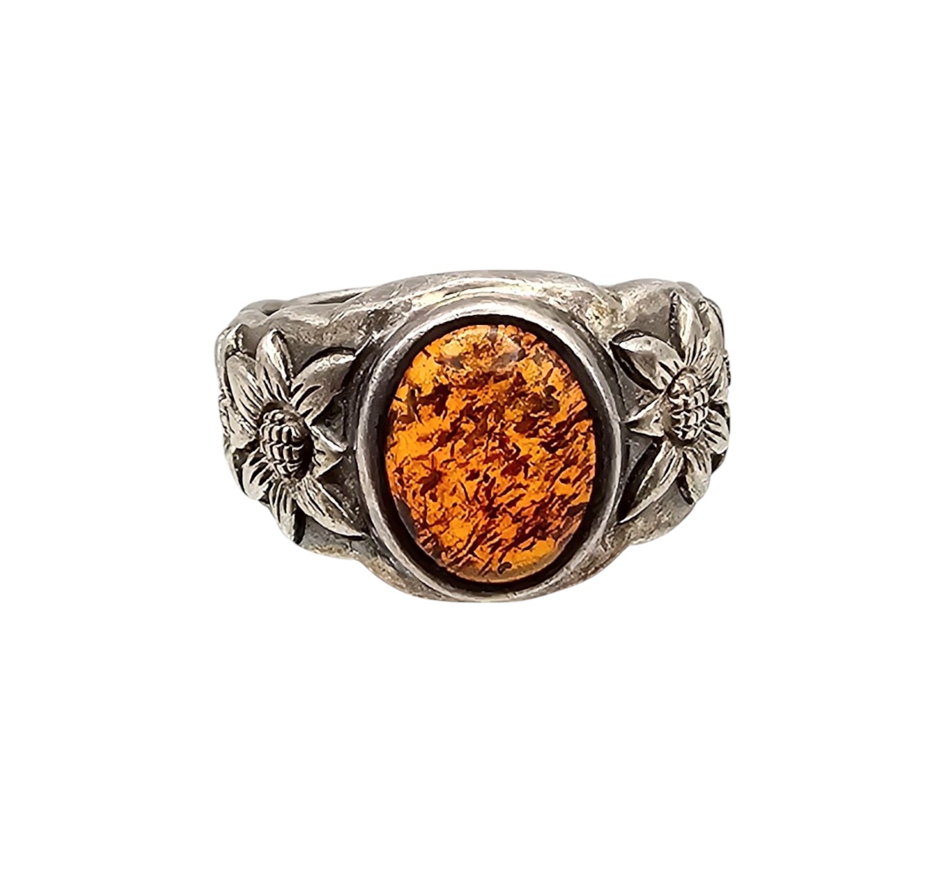 Amber Sterling Silver Floral Ring Size 6.25 8.3 G