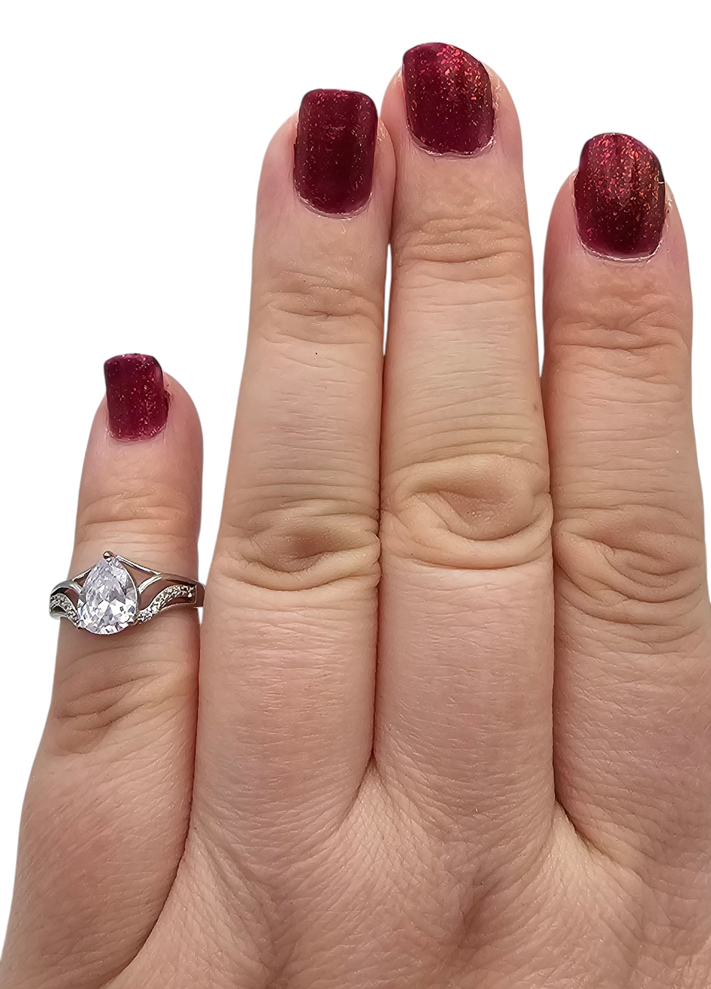 Rhinestone Sterling Silver Cocktail Ring Size 4 2 G