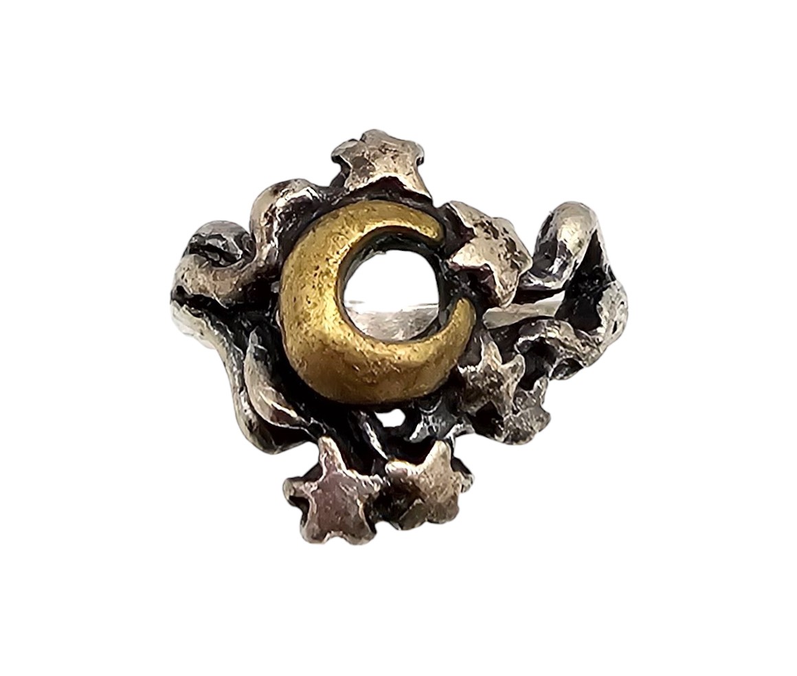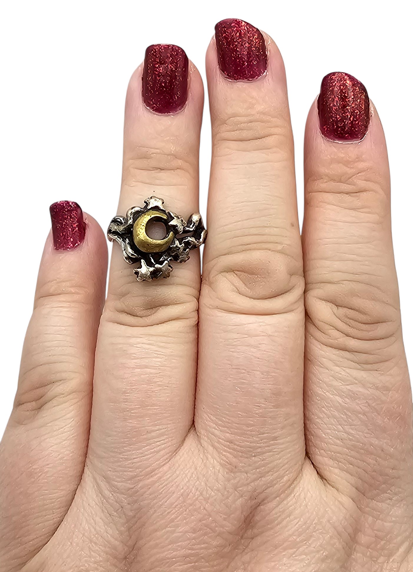 Signed Sterling Silver Two-Tone moon stars Ring Size 5.75 4.8 G