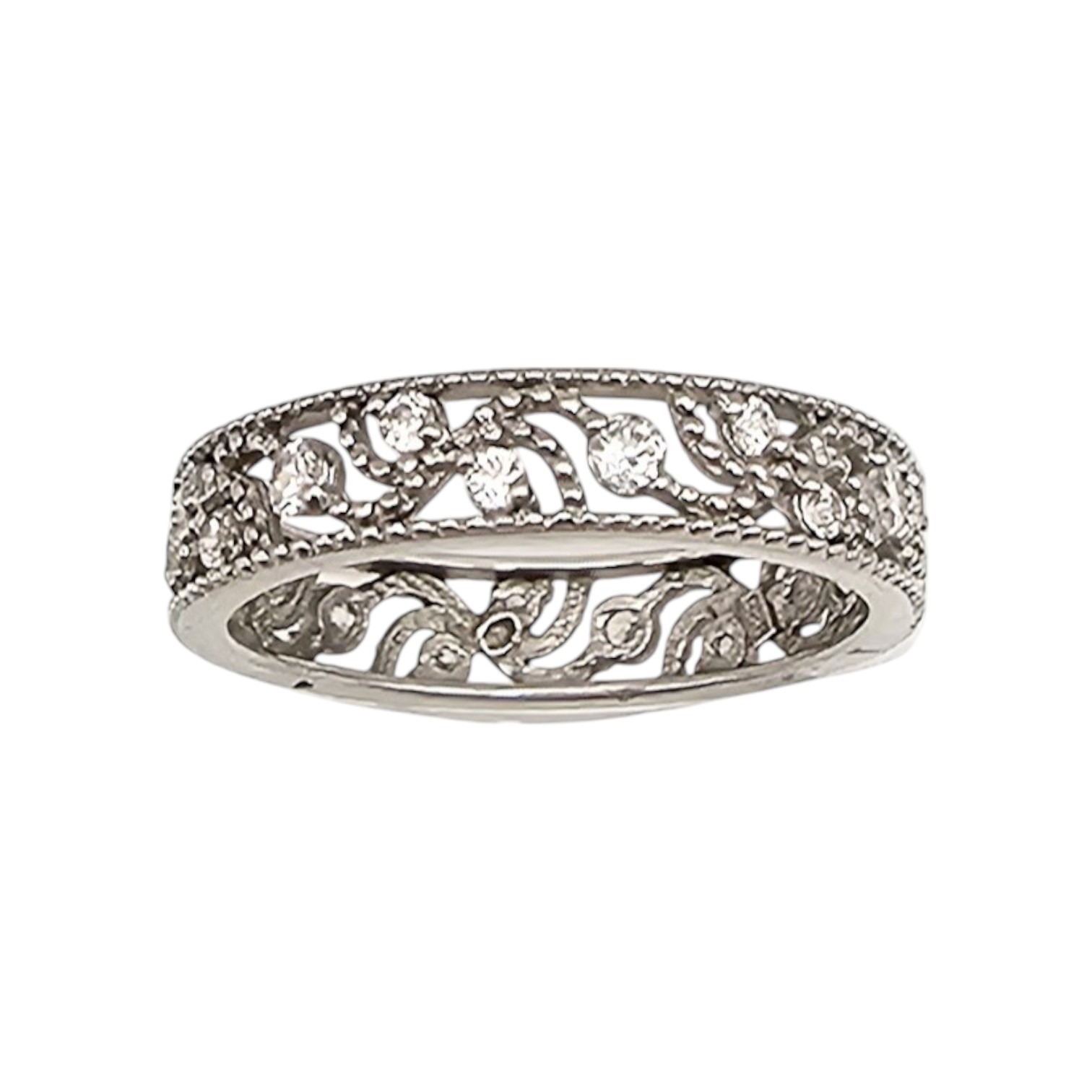 Rhinestone Sterling Silver Cocktail Ring Size 6.75 2.1 G