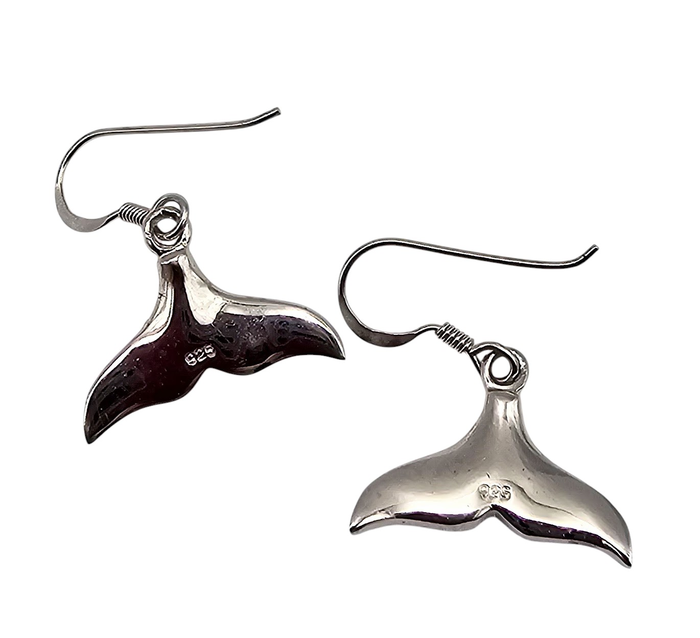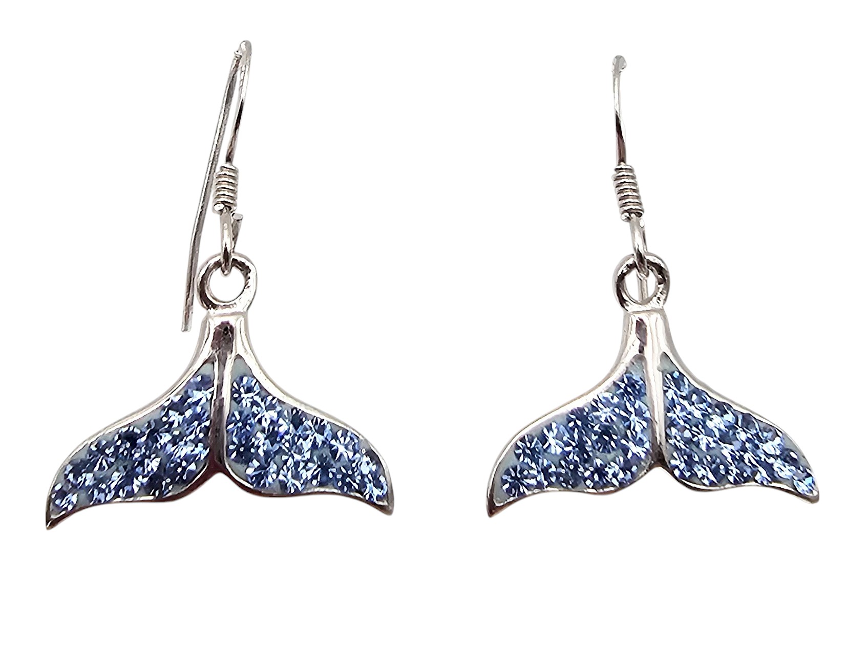 Rhinestone Sterling Silver Whale Tail Drop Dangle Earrings 3.4 G