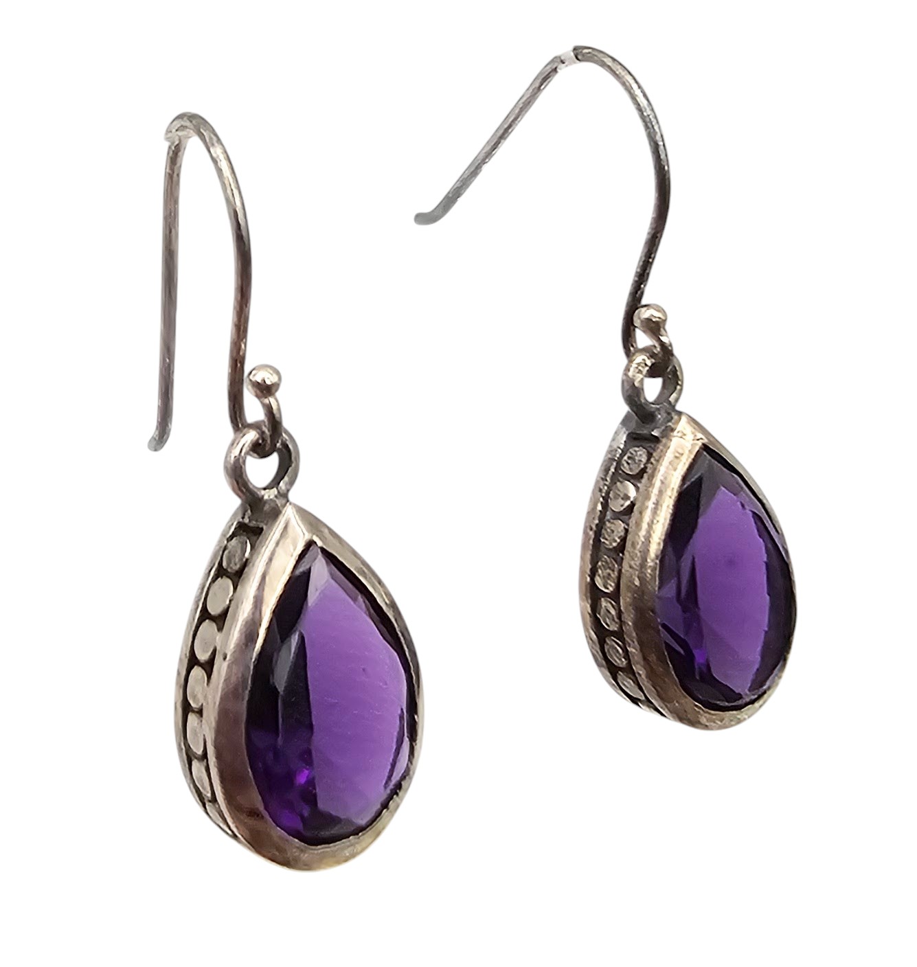 Amethyst Sterling Silver Drop Dangle Earrings 4.8 G