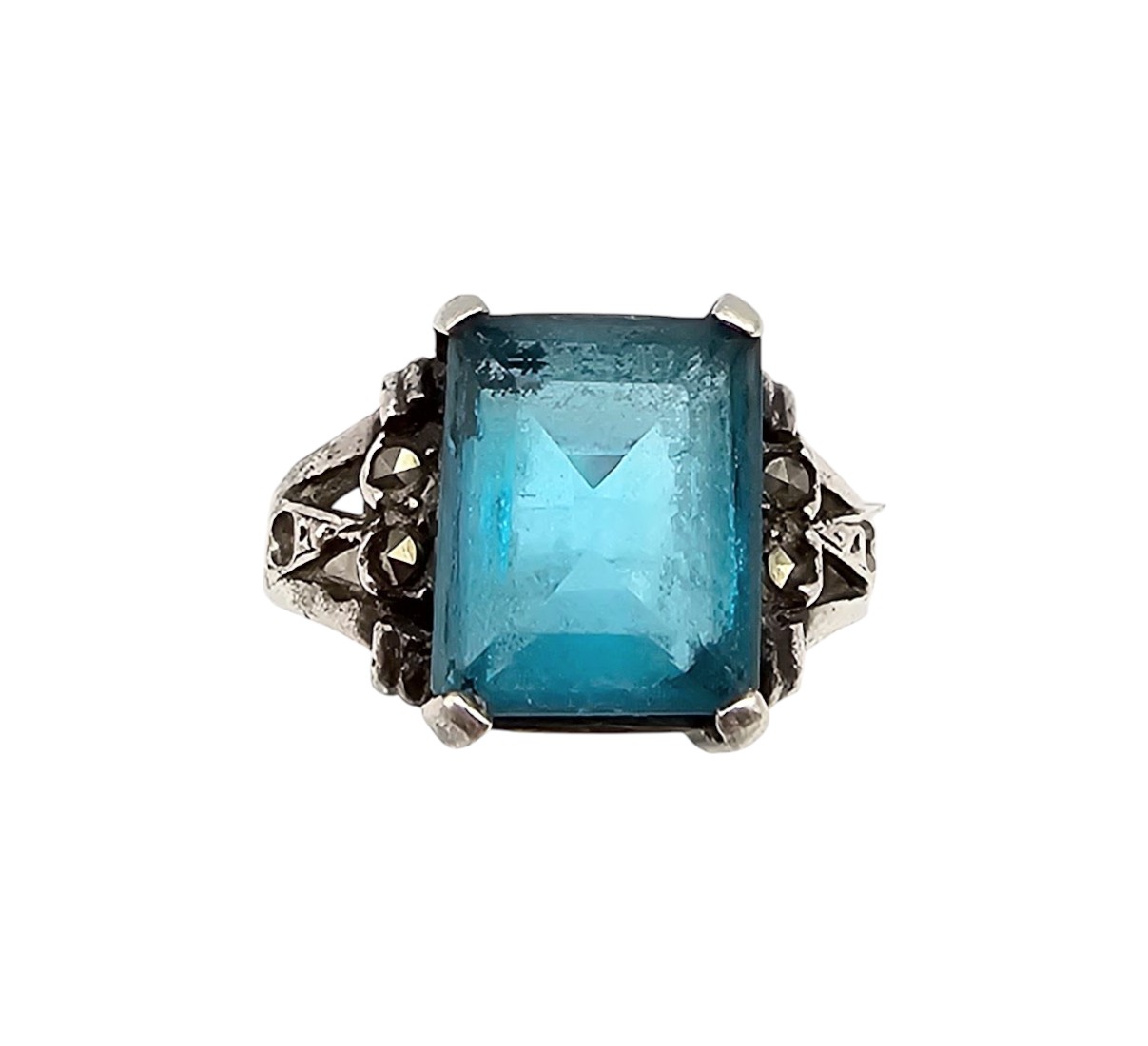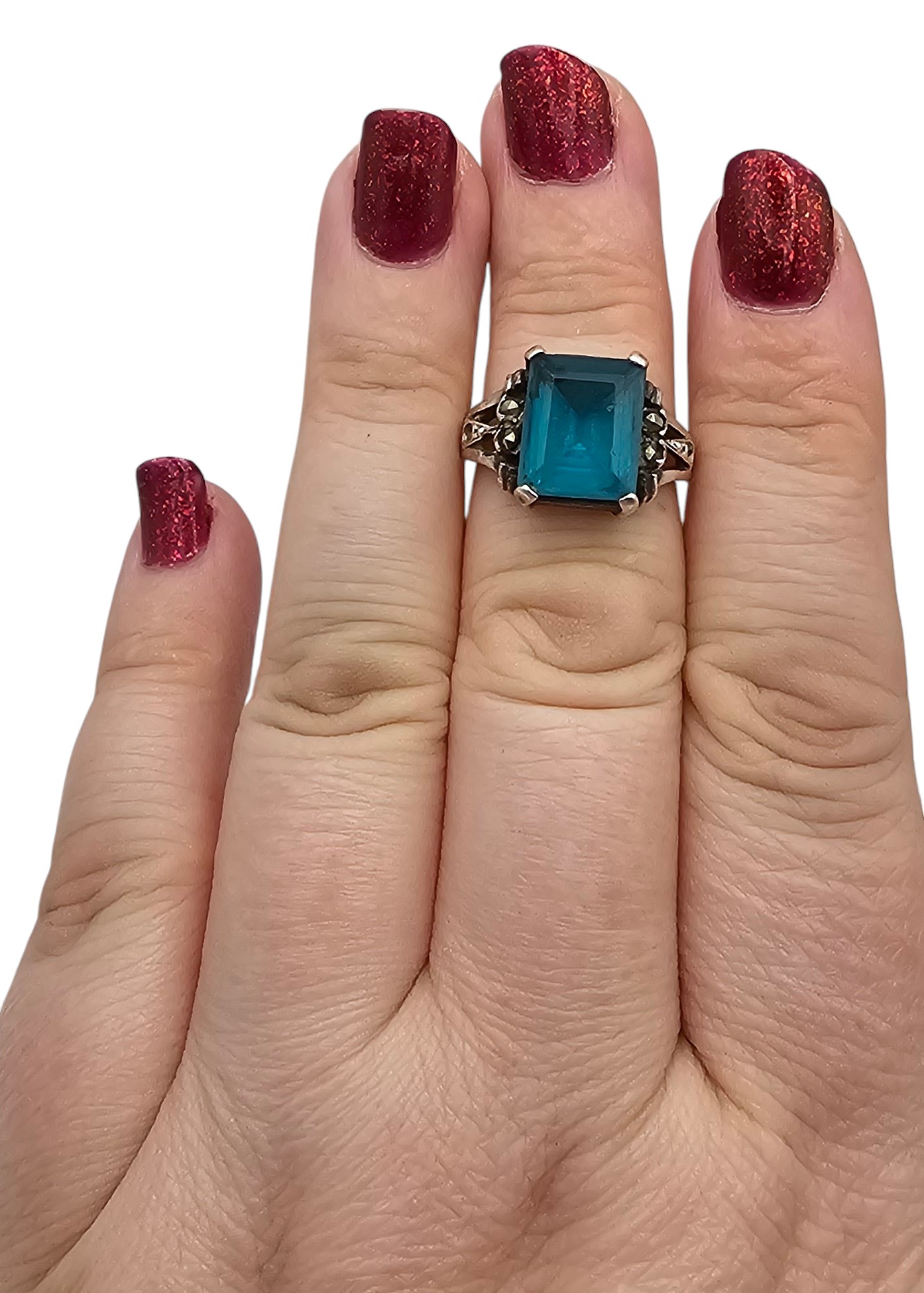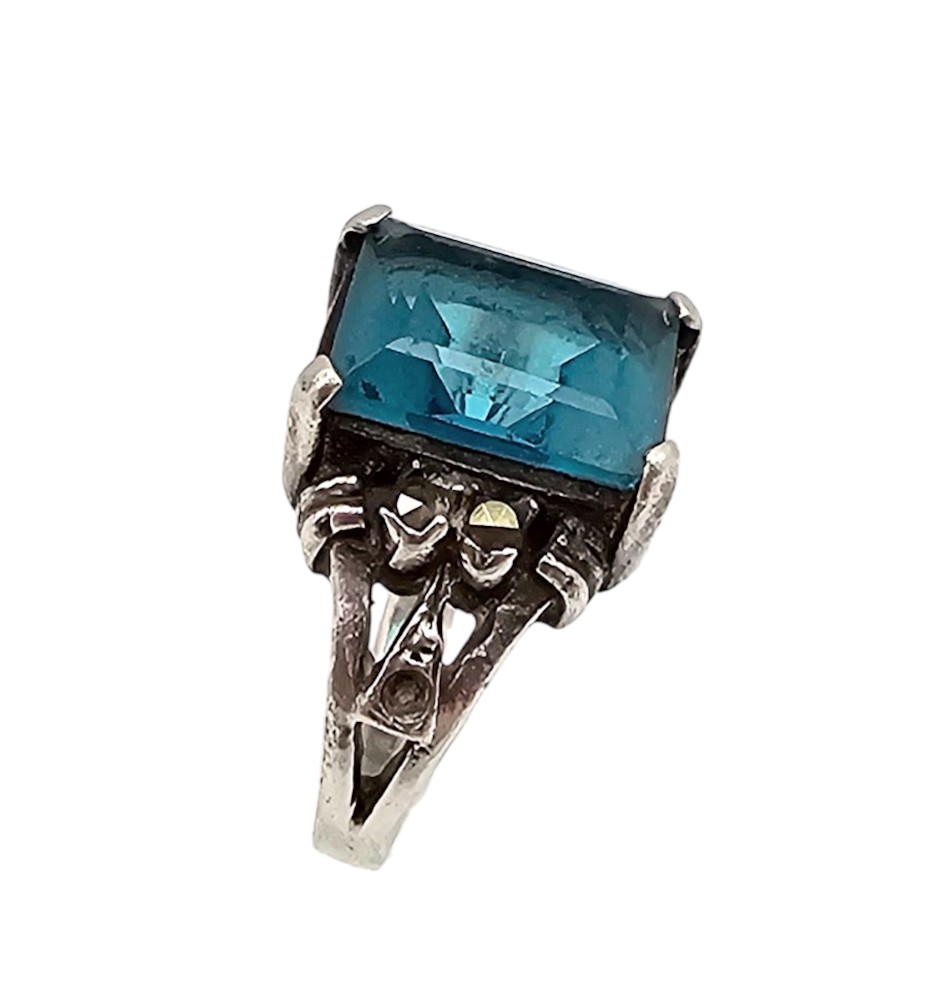 Rhinestone Sterling Silver Cocktail Ring Size 6.5 6.1 G