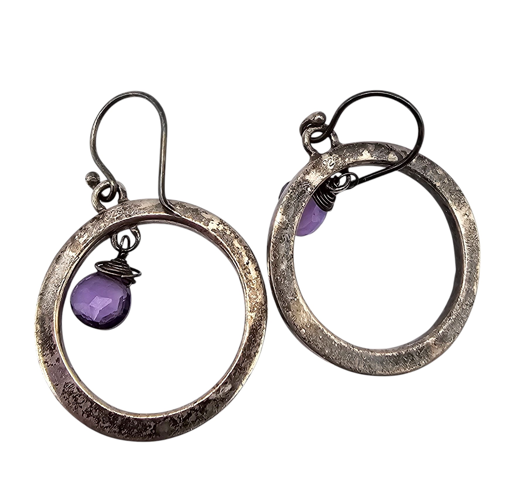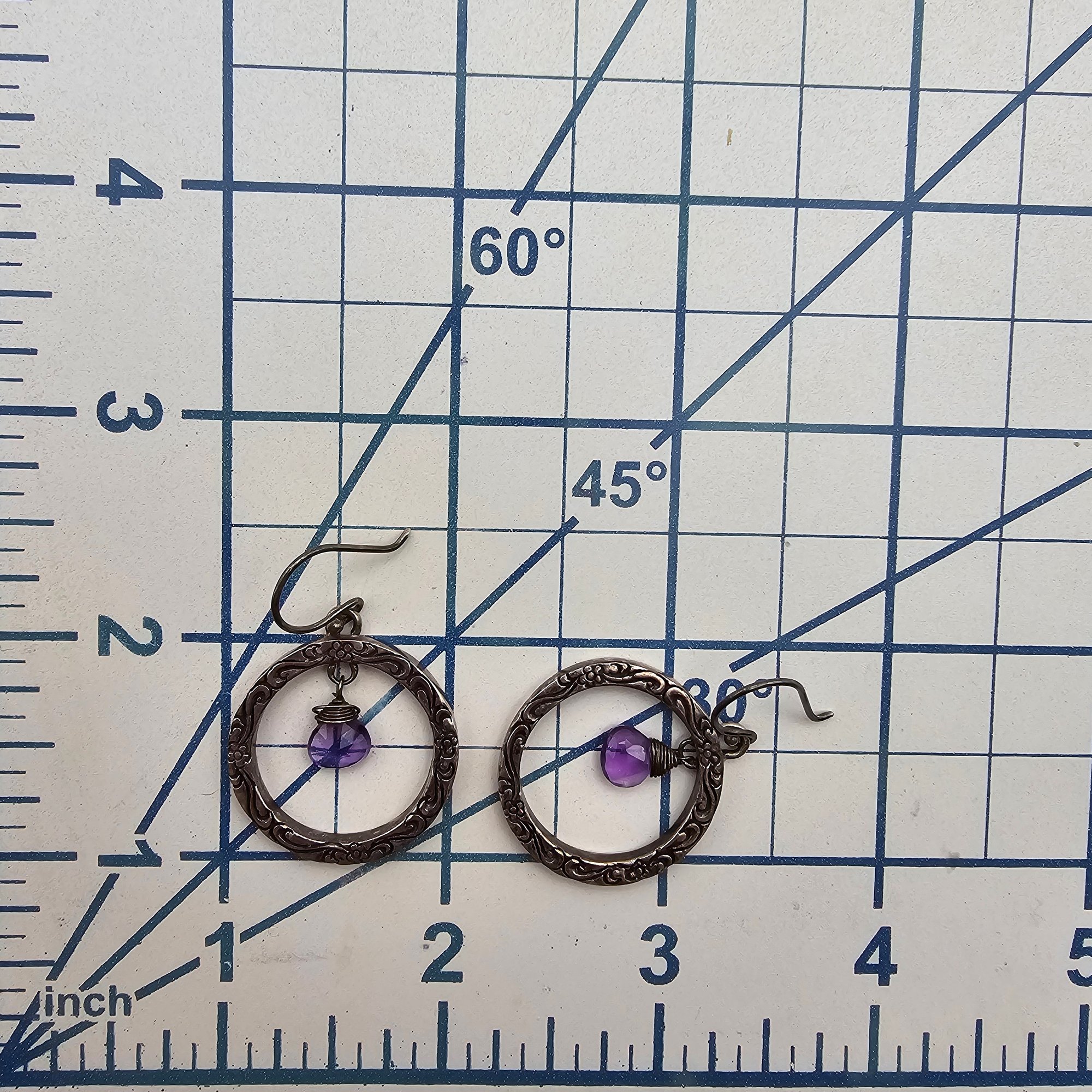 Amethyst Sterling Silver Circle Drop Dangle Earrings 11.5 G
