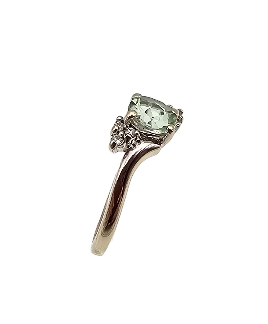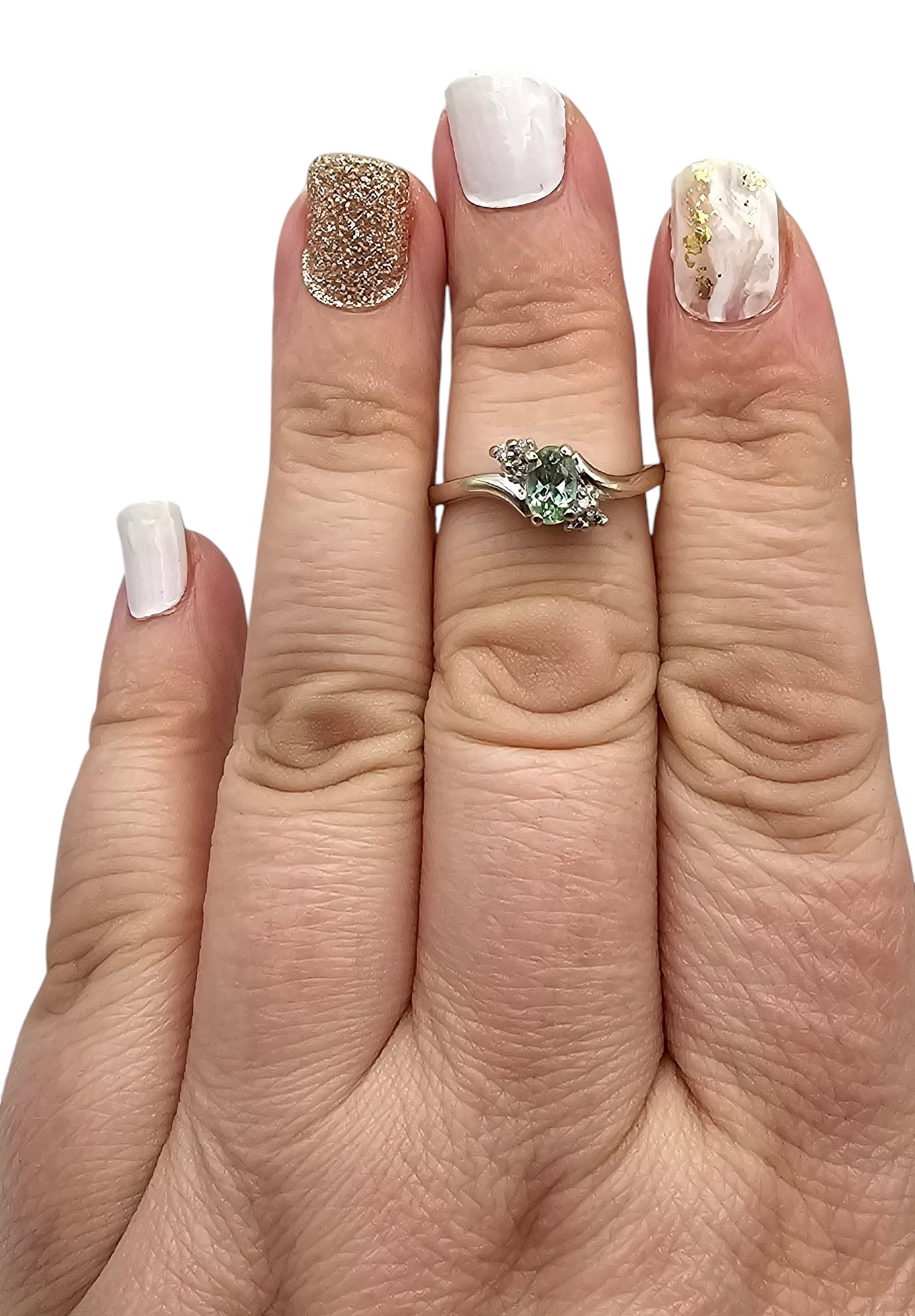 Prasiolite Diamond 14K White Gold Cocktail Ring Size 7.25 2.6 G