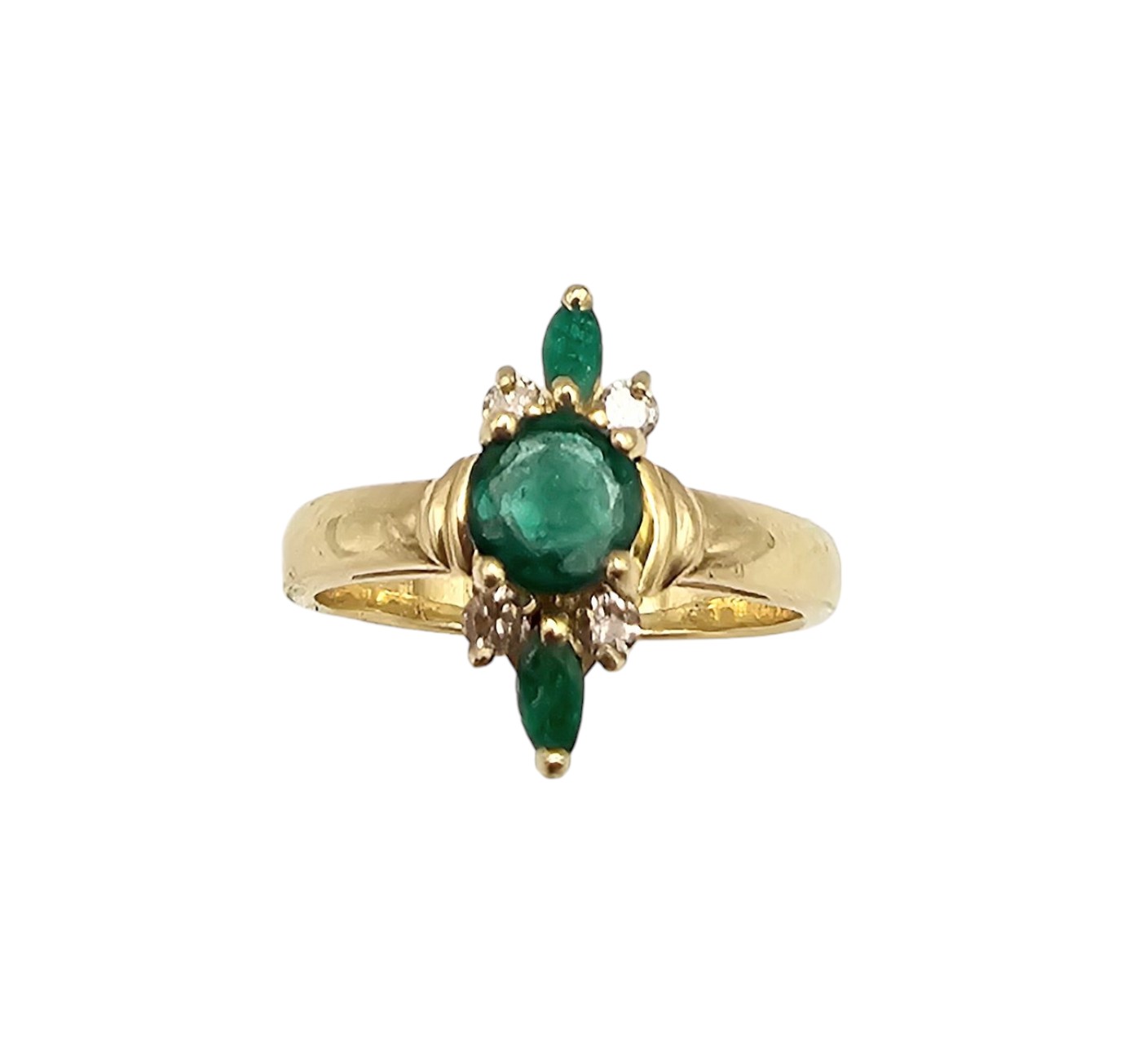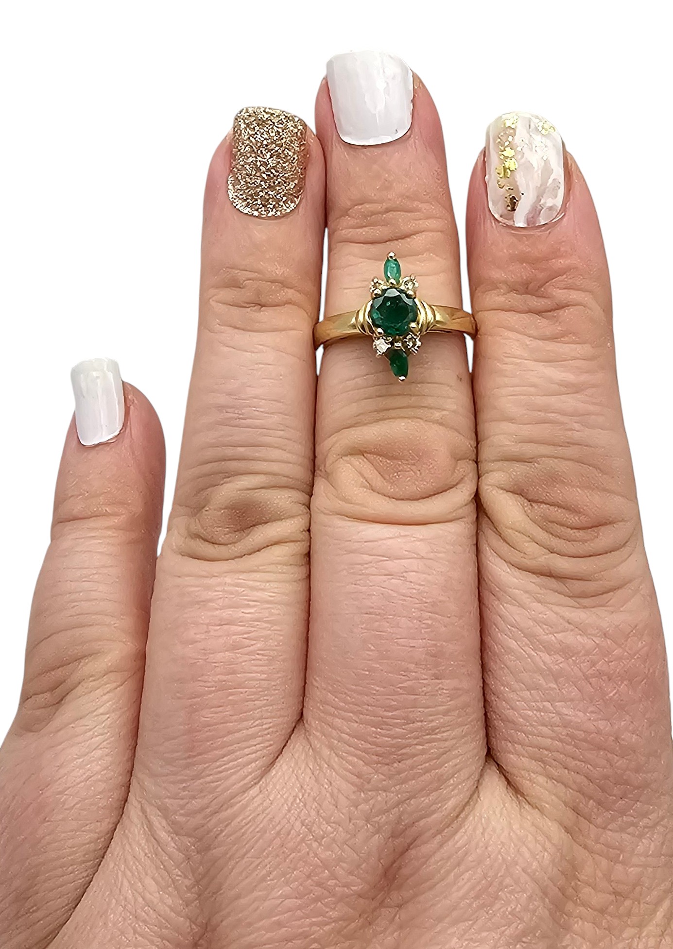 Emerald Diamond 14K Gold Cocktail Ring Size 6.25 4.2 G