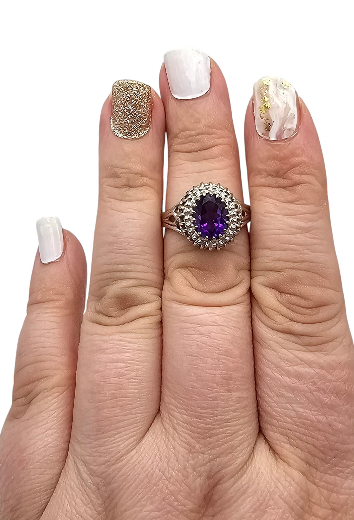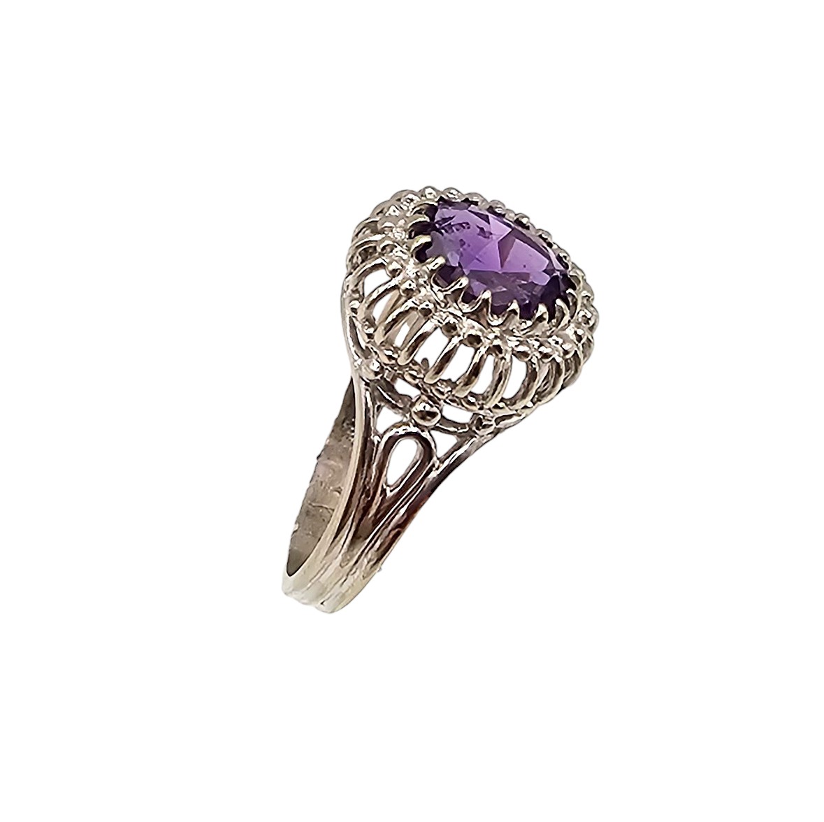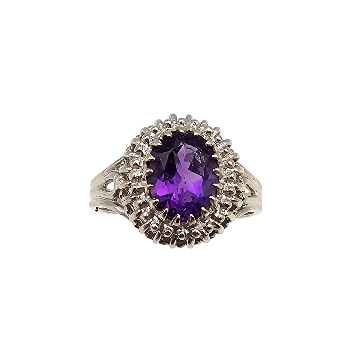 BH Amethyst 14K White Gold Cocktail Ring Size 7.5 4.4 G