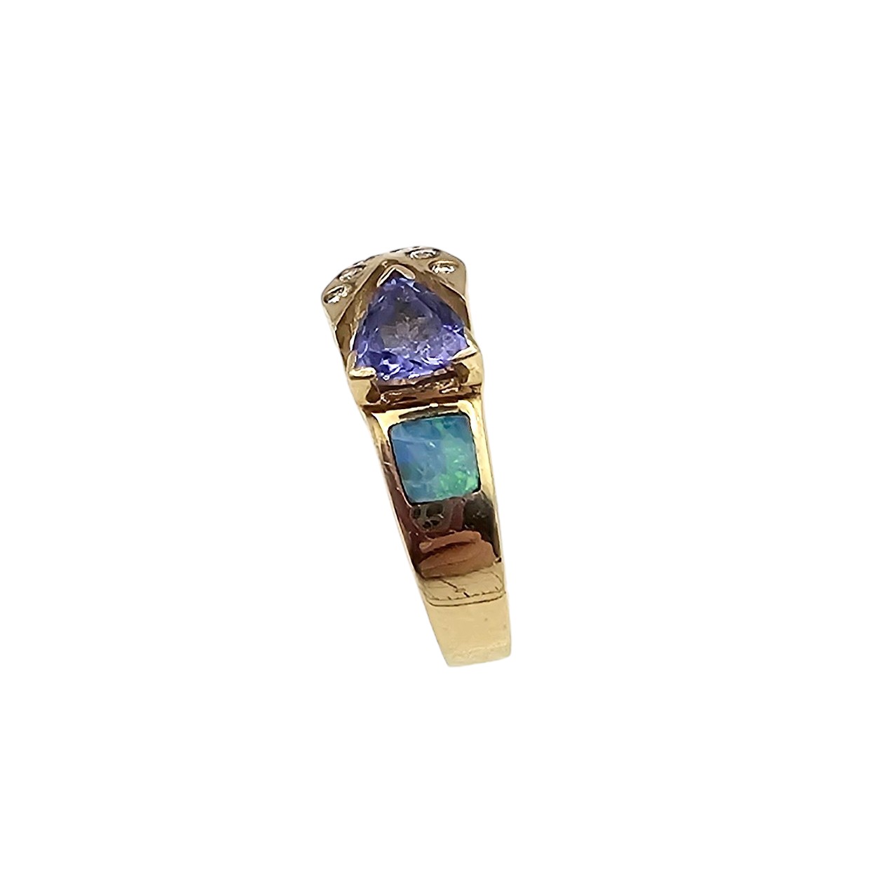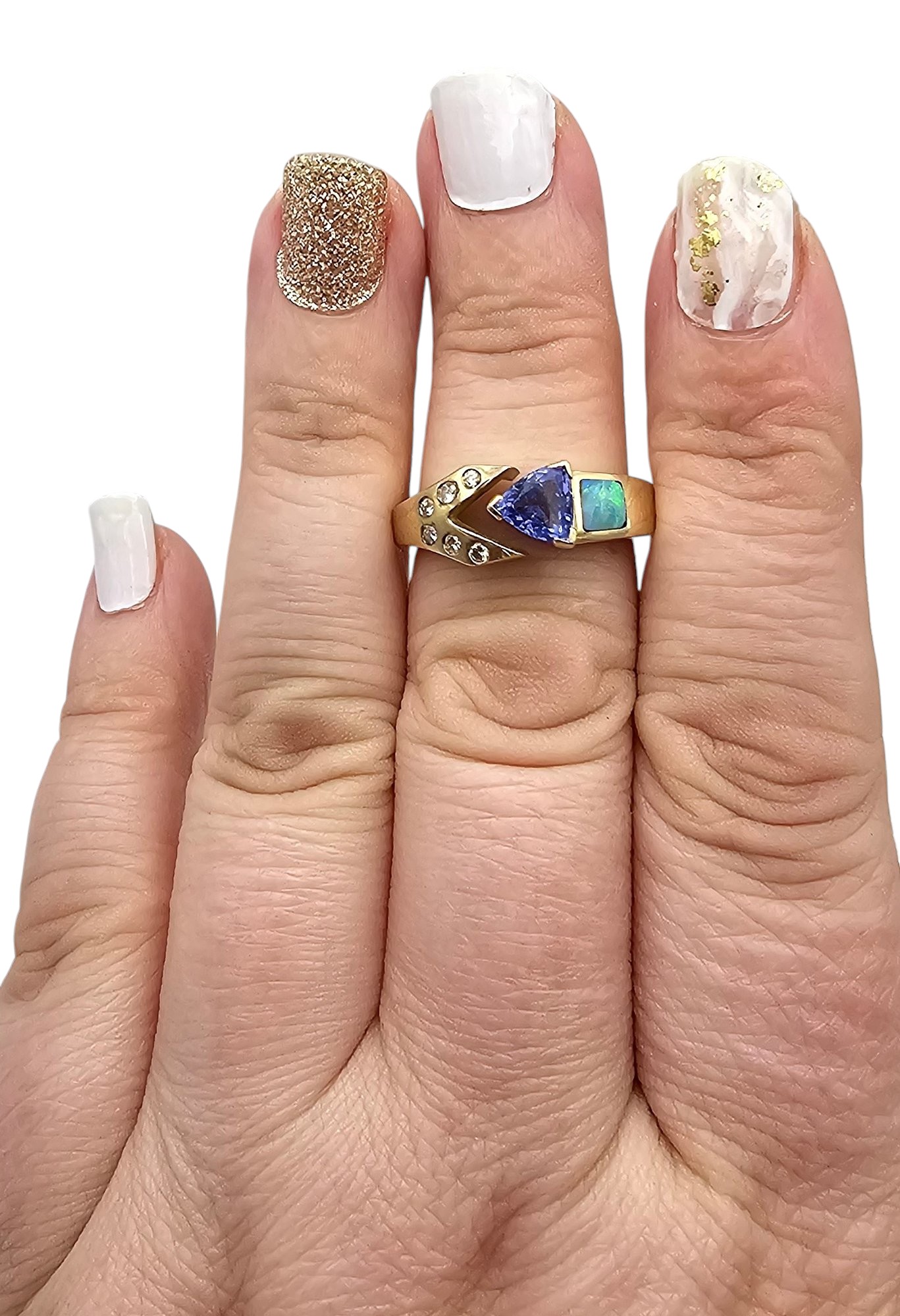 PAR Opal Tanzanite Diamond 14K Gold Cocktail Ring Size 7 4.5 G