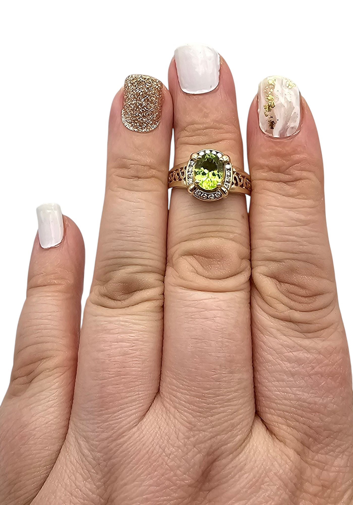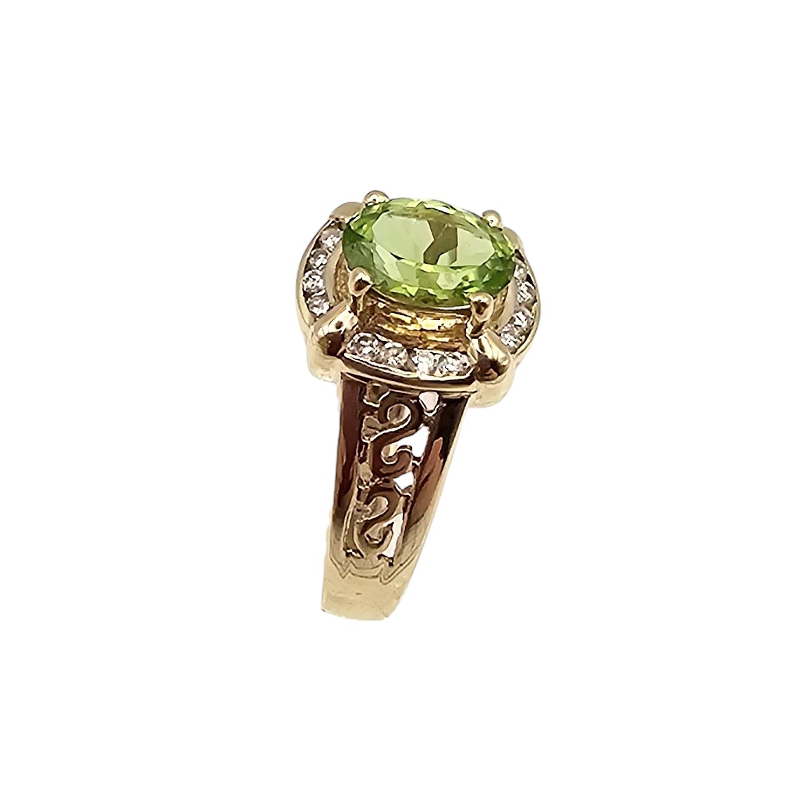 3HD Peridot Diamond 10K Gold Cocktail Ring Size 6.75 3.6 G