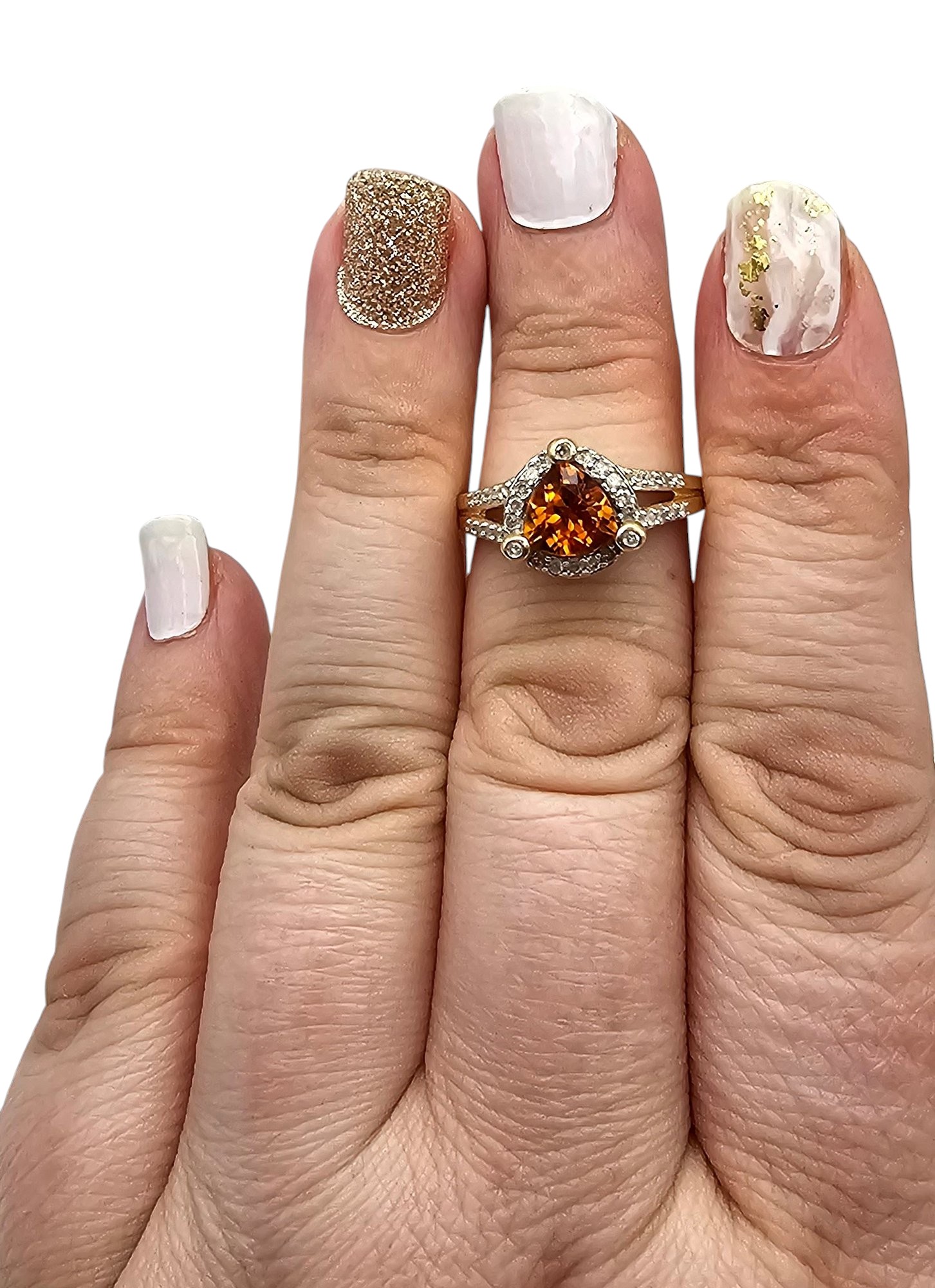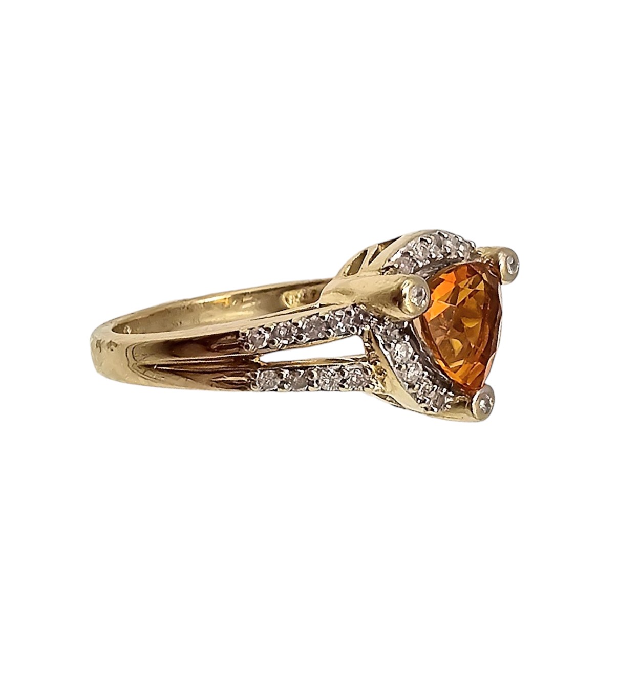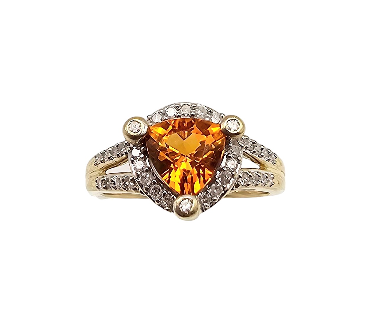 Citrine Diamond 14K Gold Cocktail Ring Size 6.75 4.3 G