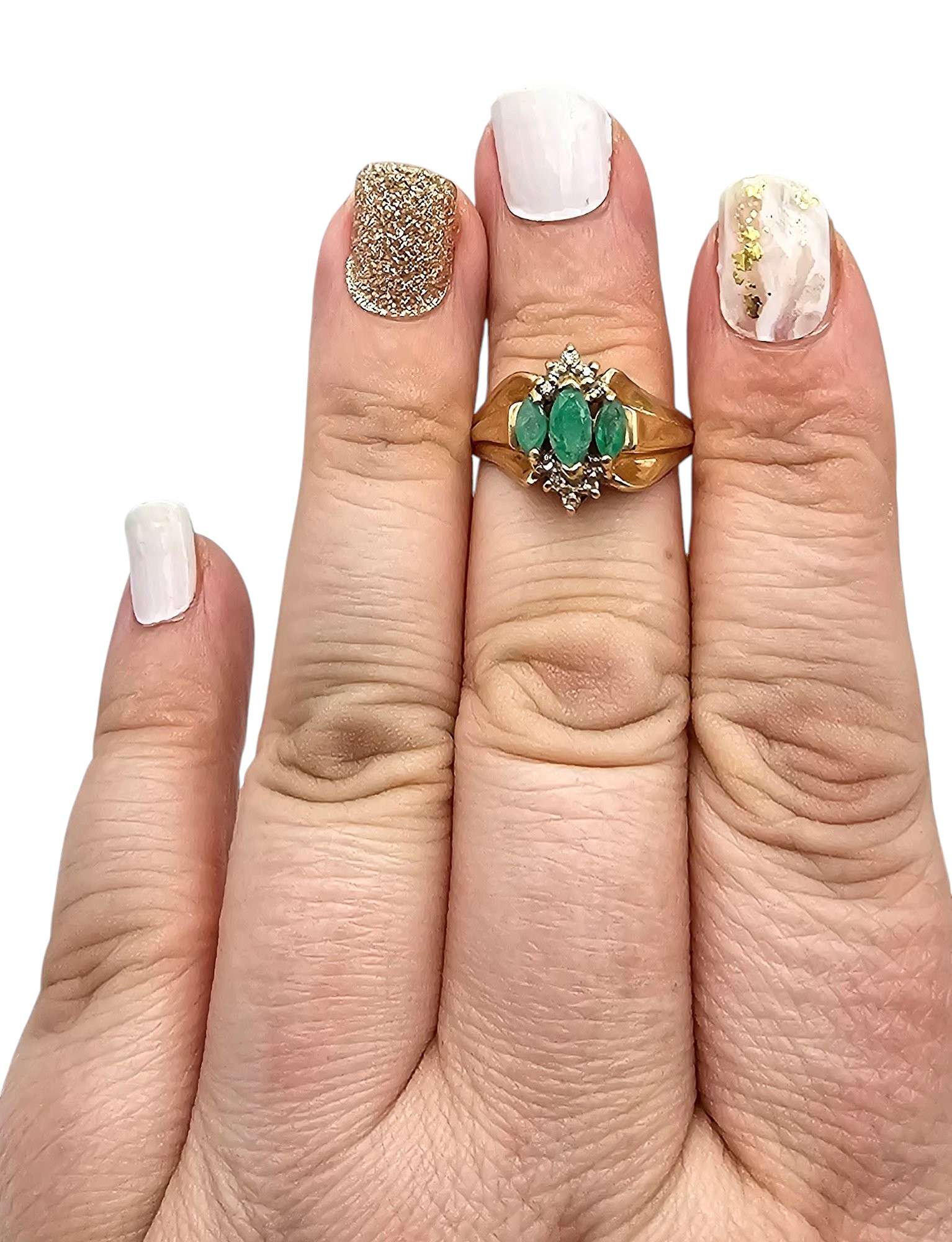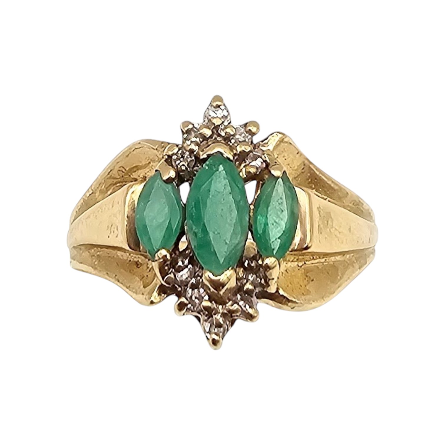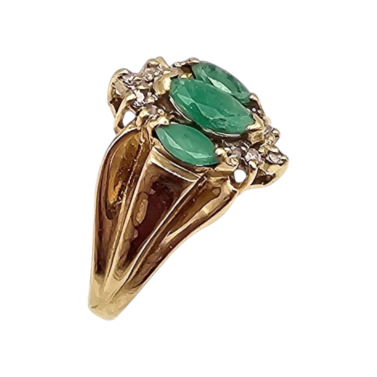 Emerald Diamond 10K Gold Cocktail Ring Size 5.75 3.2 G