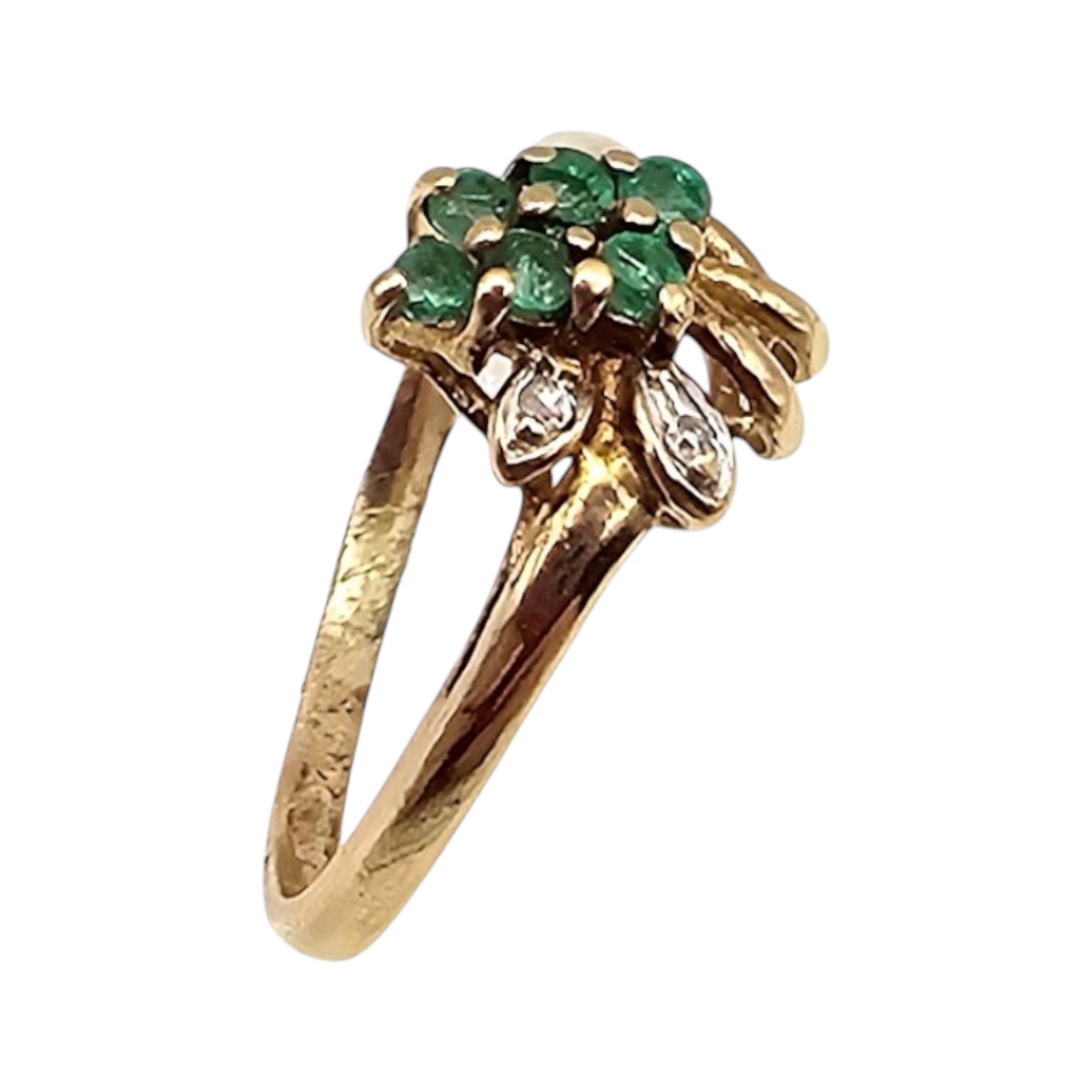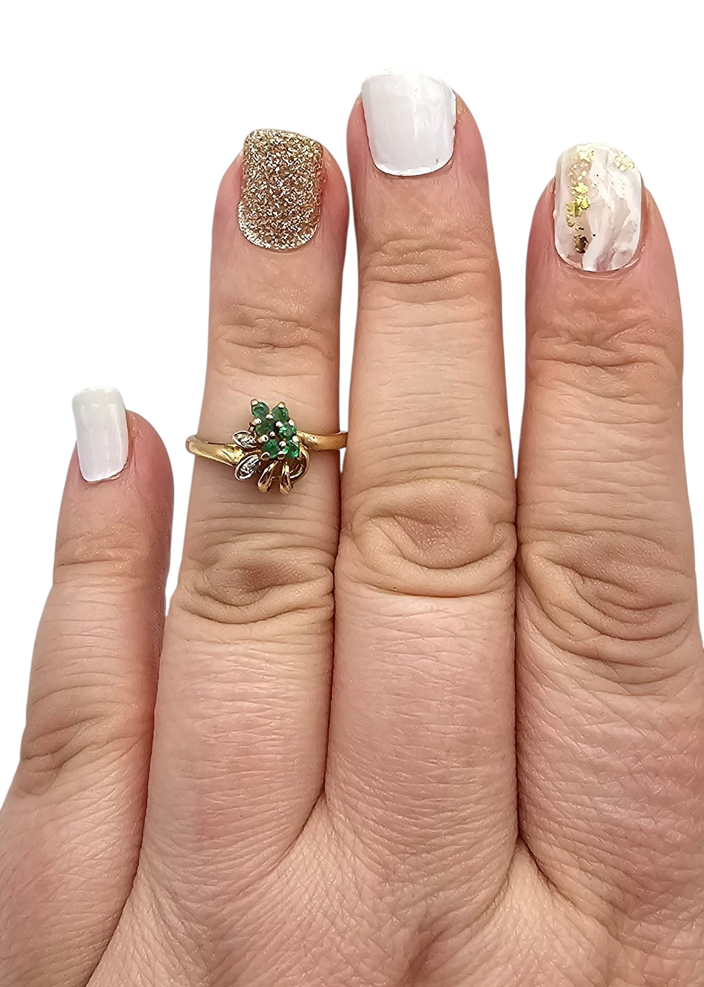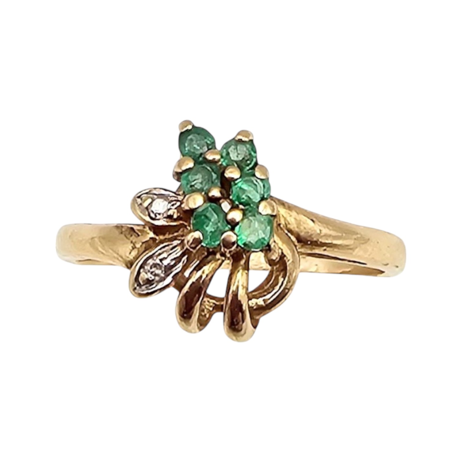 ESX Emerald Diamond 14K Gold Cocktail Ring Size 5.5 1.9 G