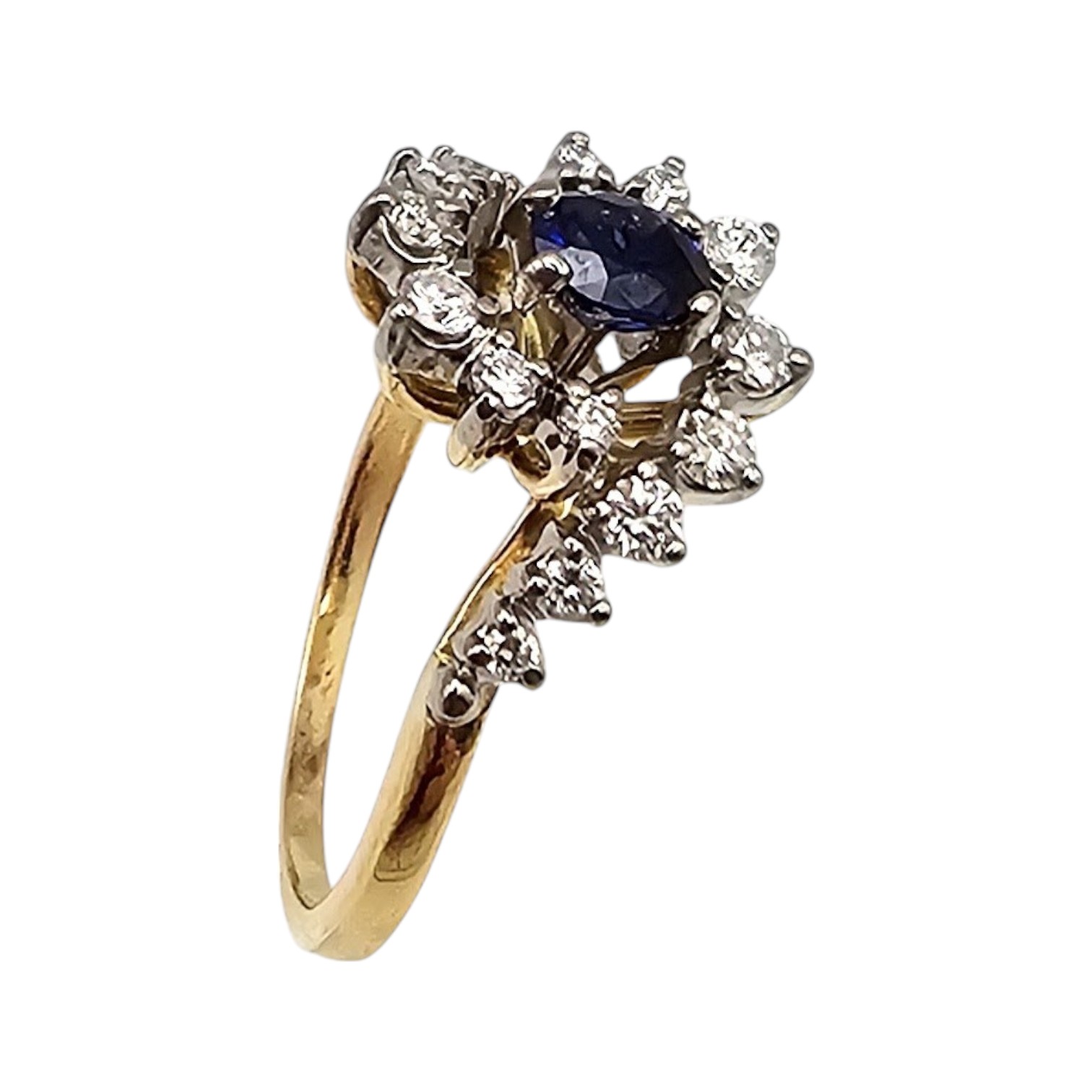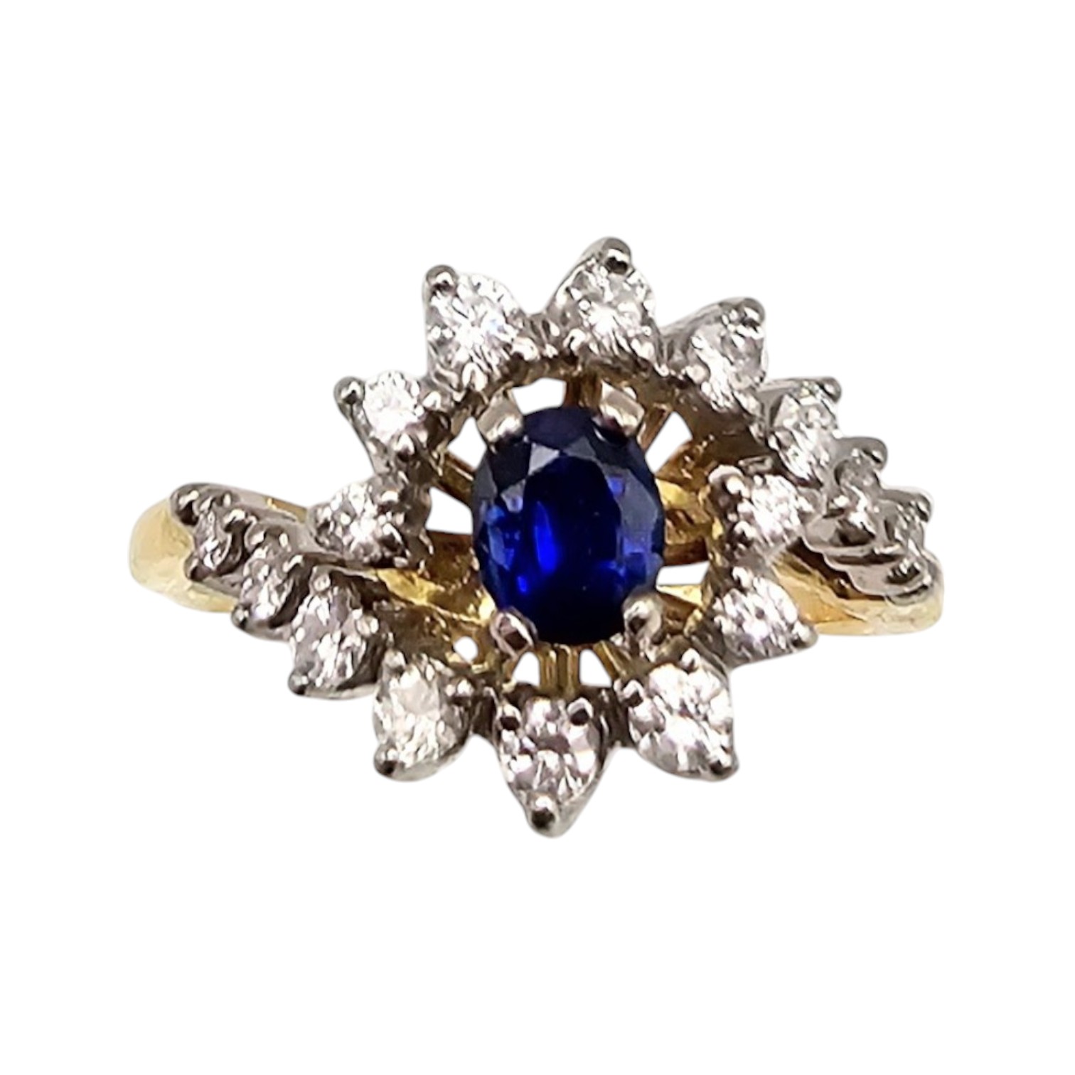 Sapphire Diamond 18K Gold Cocktail Ring Size 6.5 4.9 G