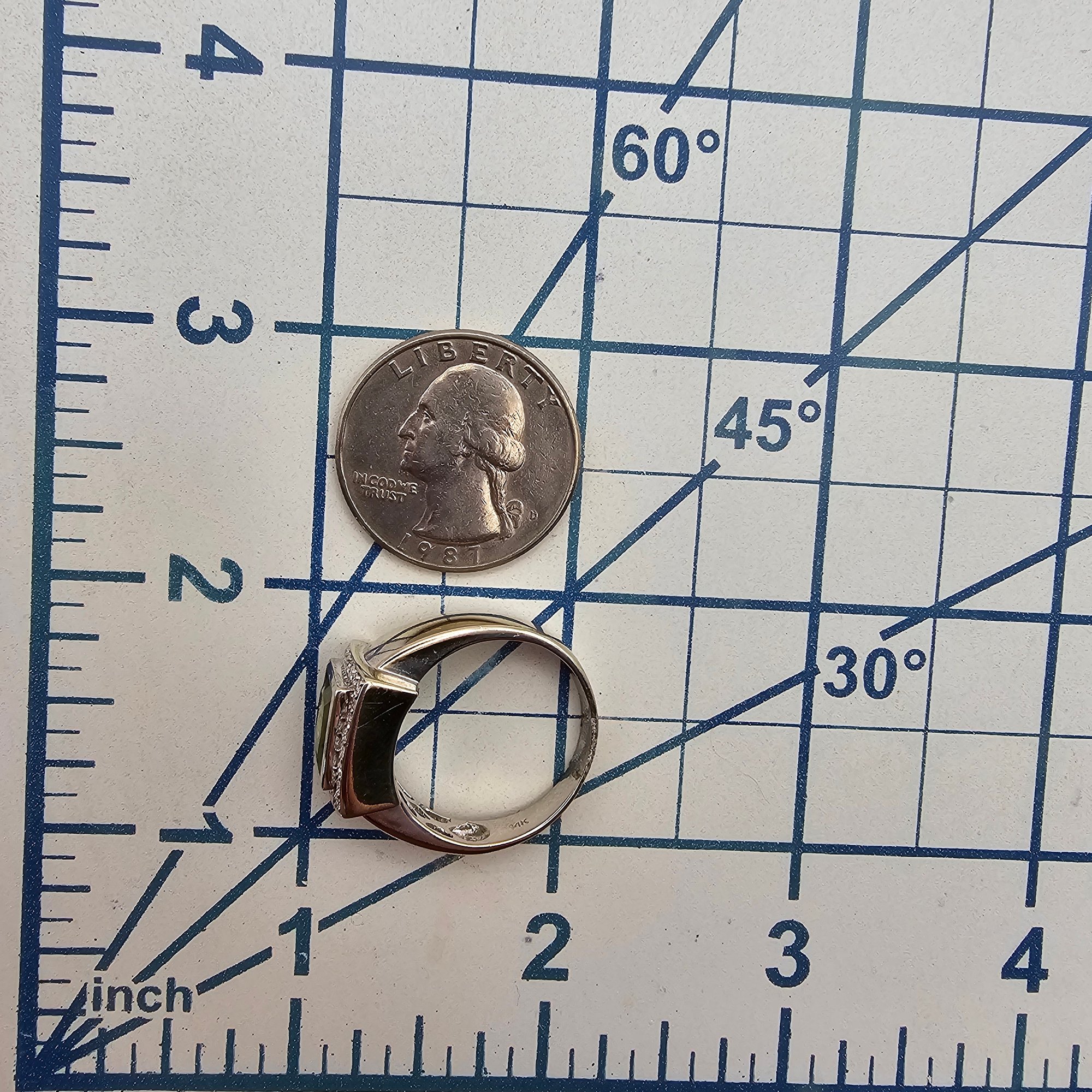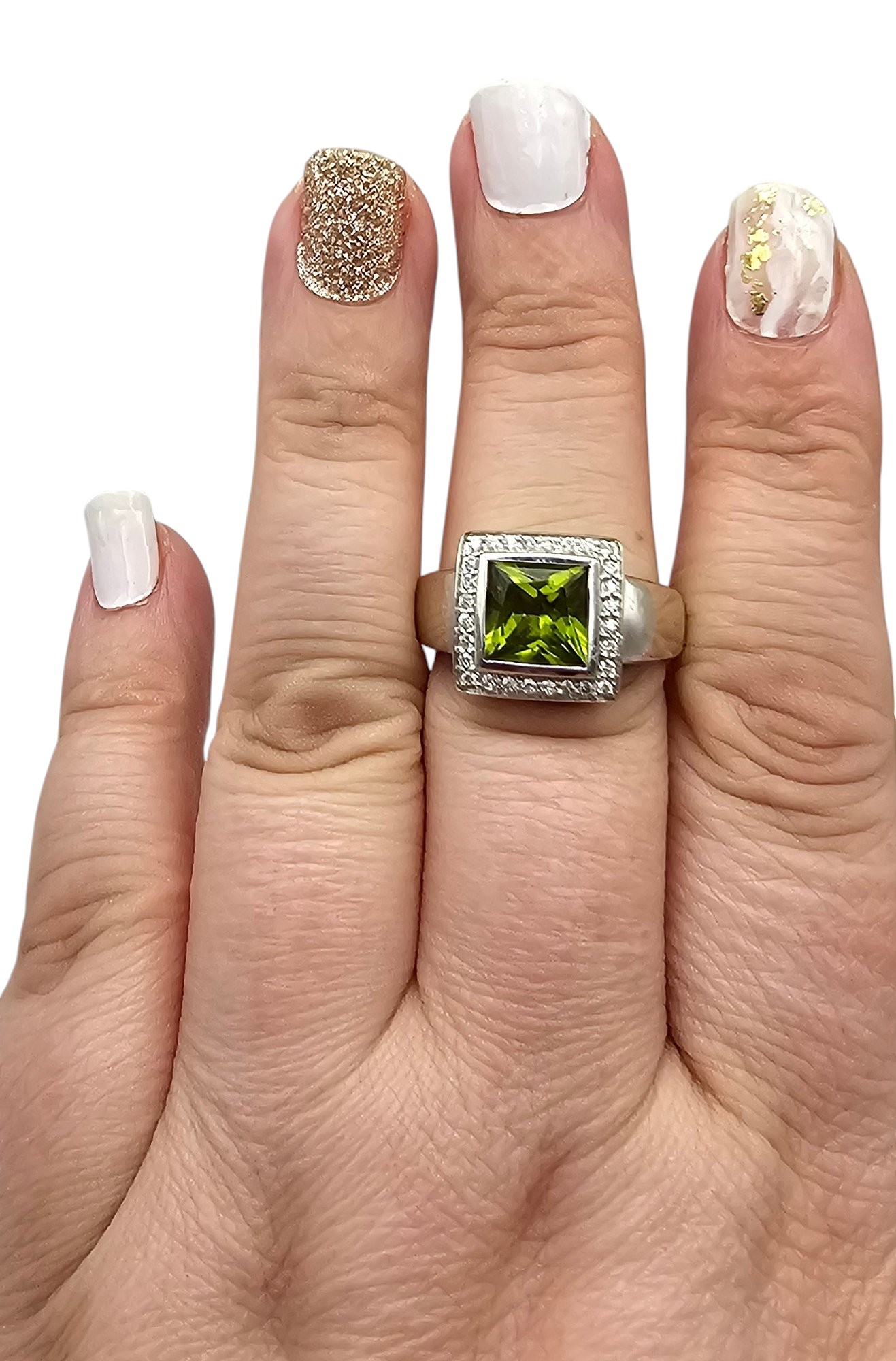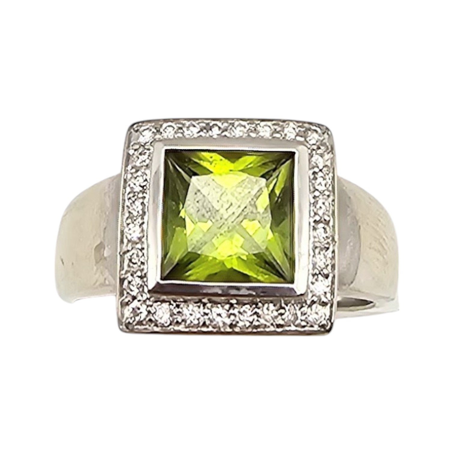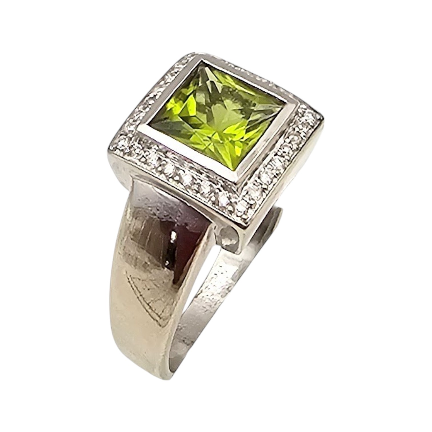 QCD Peridot Diamond 14K White Gold Cocktail Ring Size 9.5 7.6 G