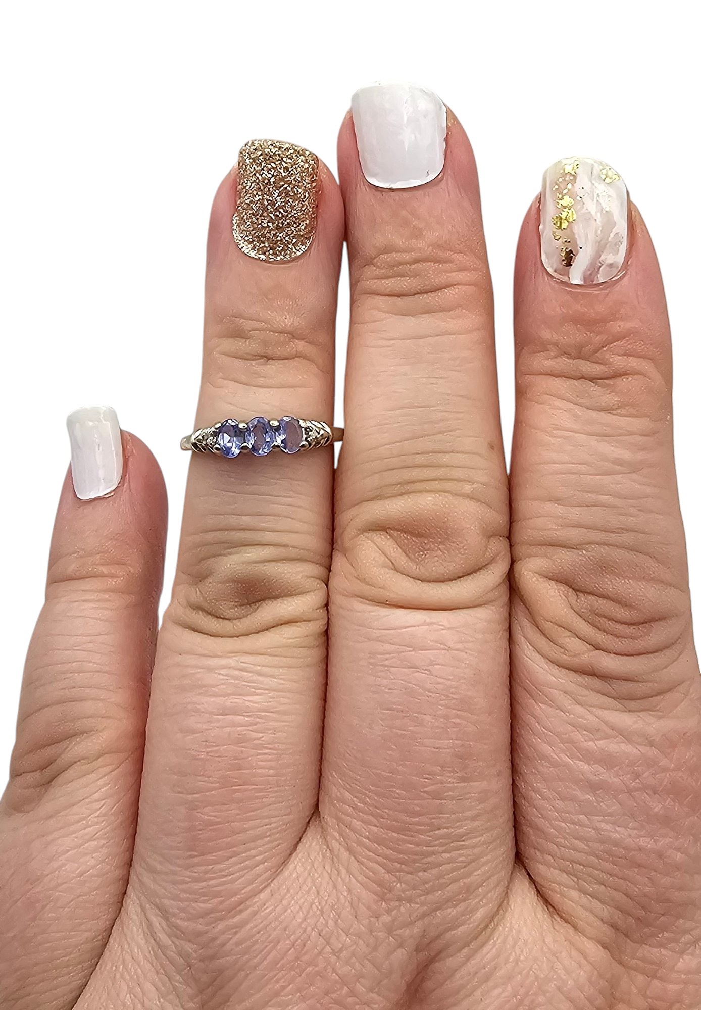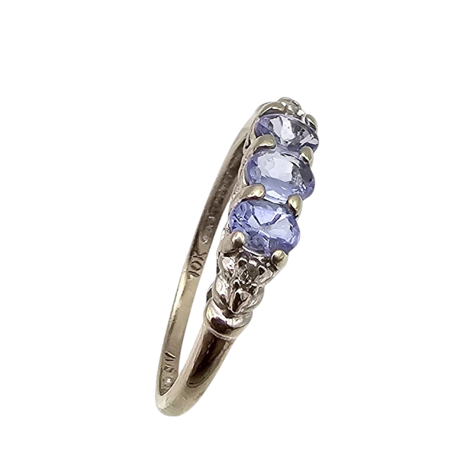S Diamond Tanzanite 10K White Gold Cocktail Ring Size 4.75 1.2 G