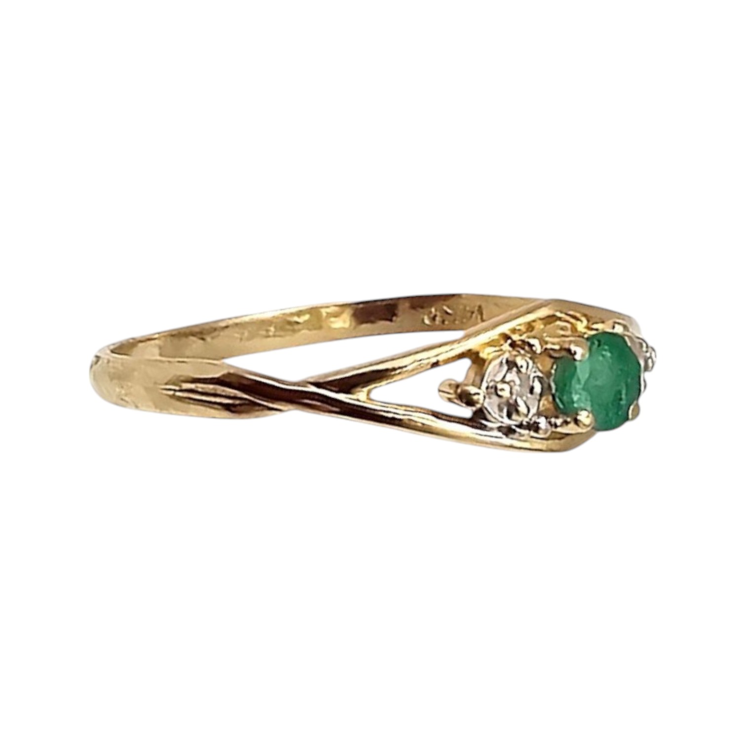 T&C Emerald Diamond 14K Gold Cocktail Ring Size 6.5 1.1 G
