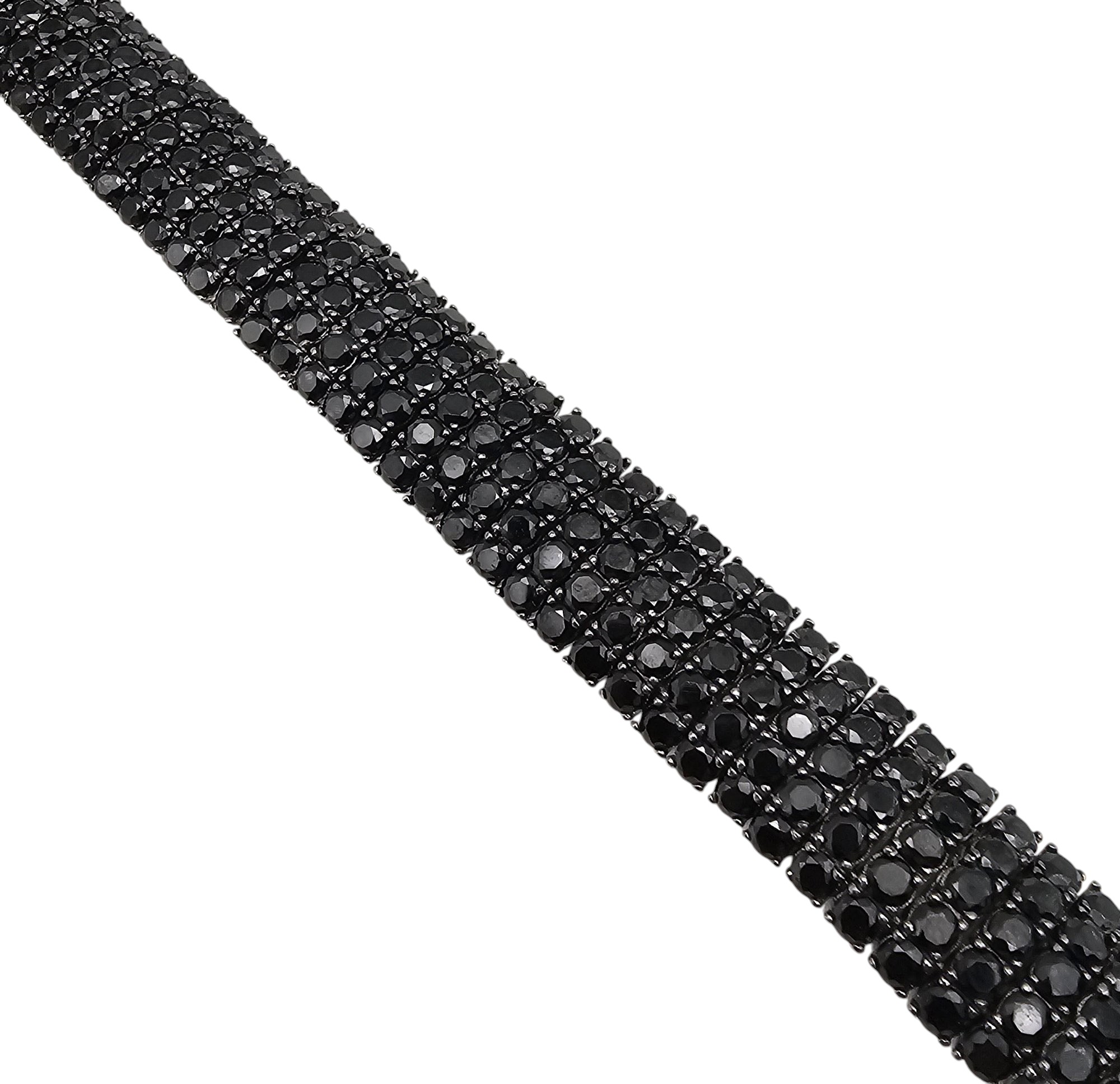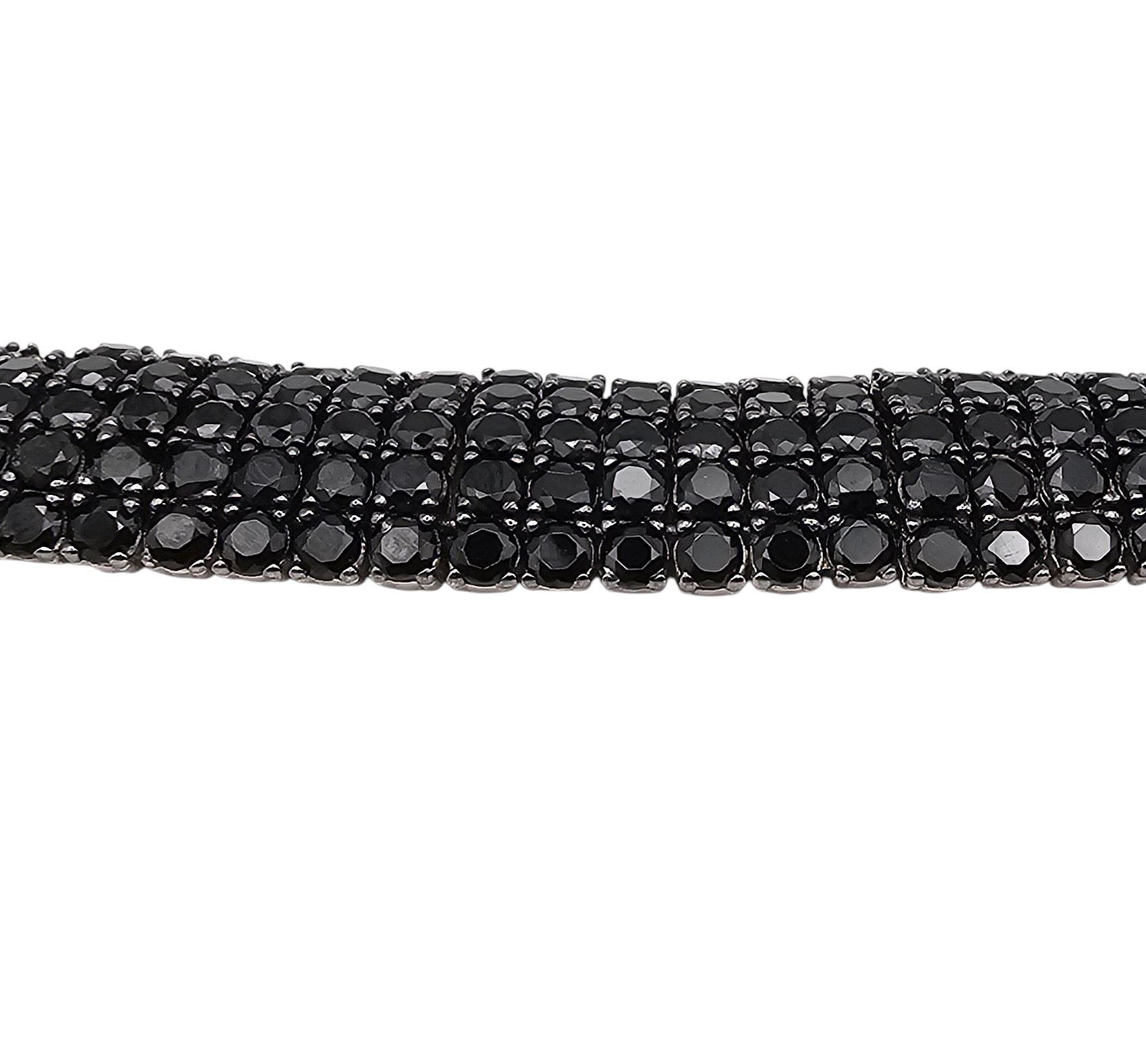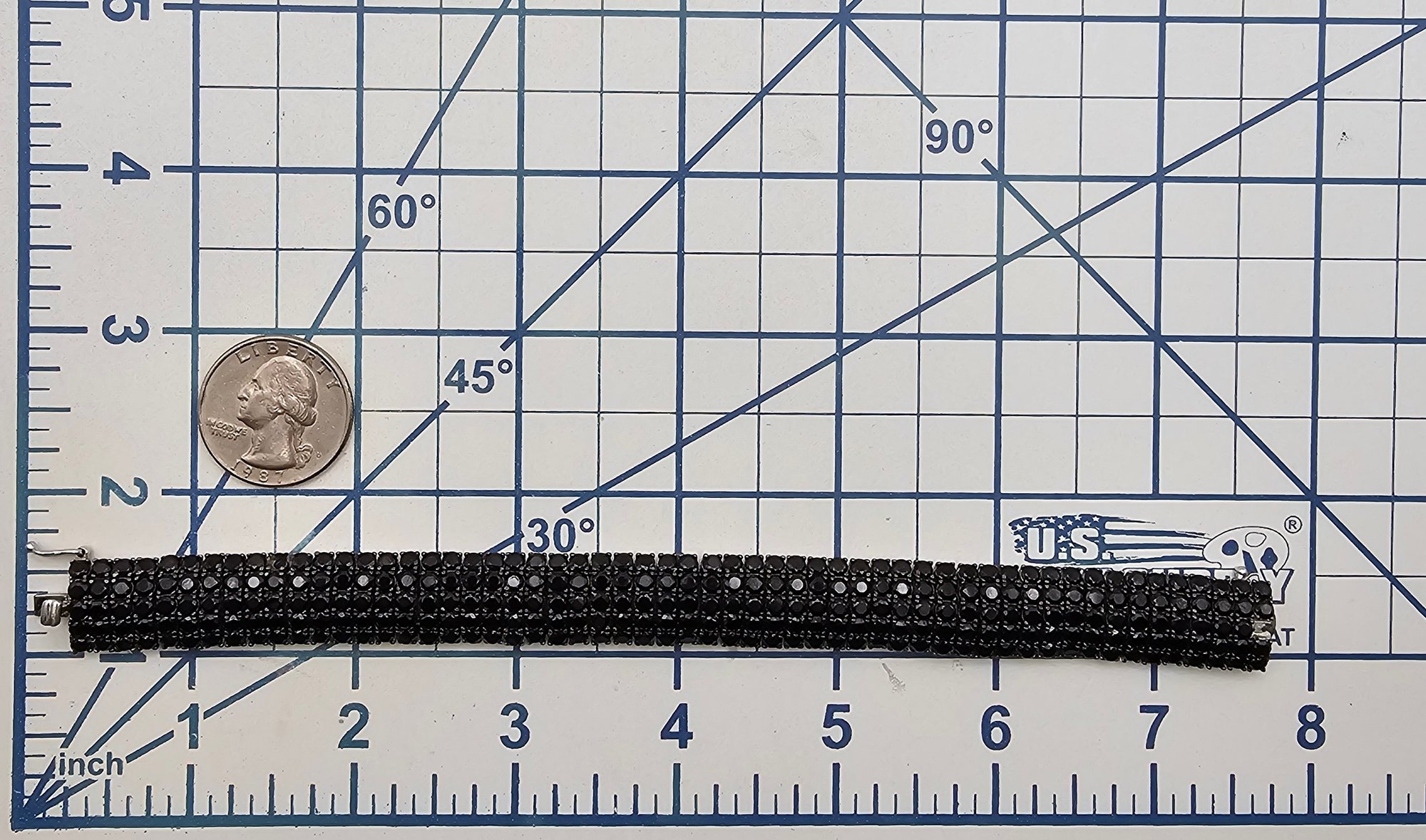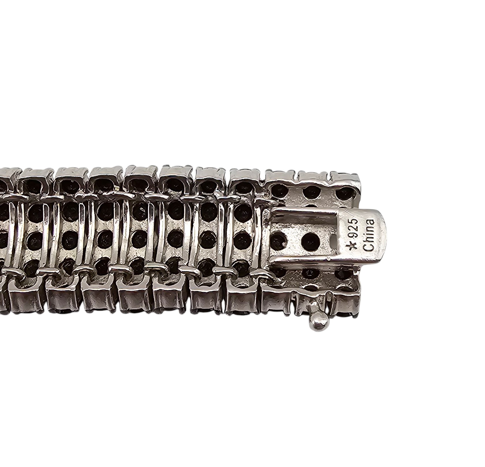 Signed Star Onyx Sterling Silver Tennis Bracelet Stainless Steel Closure 38.9 G