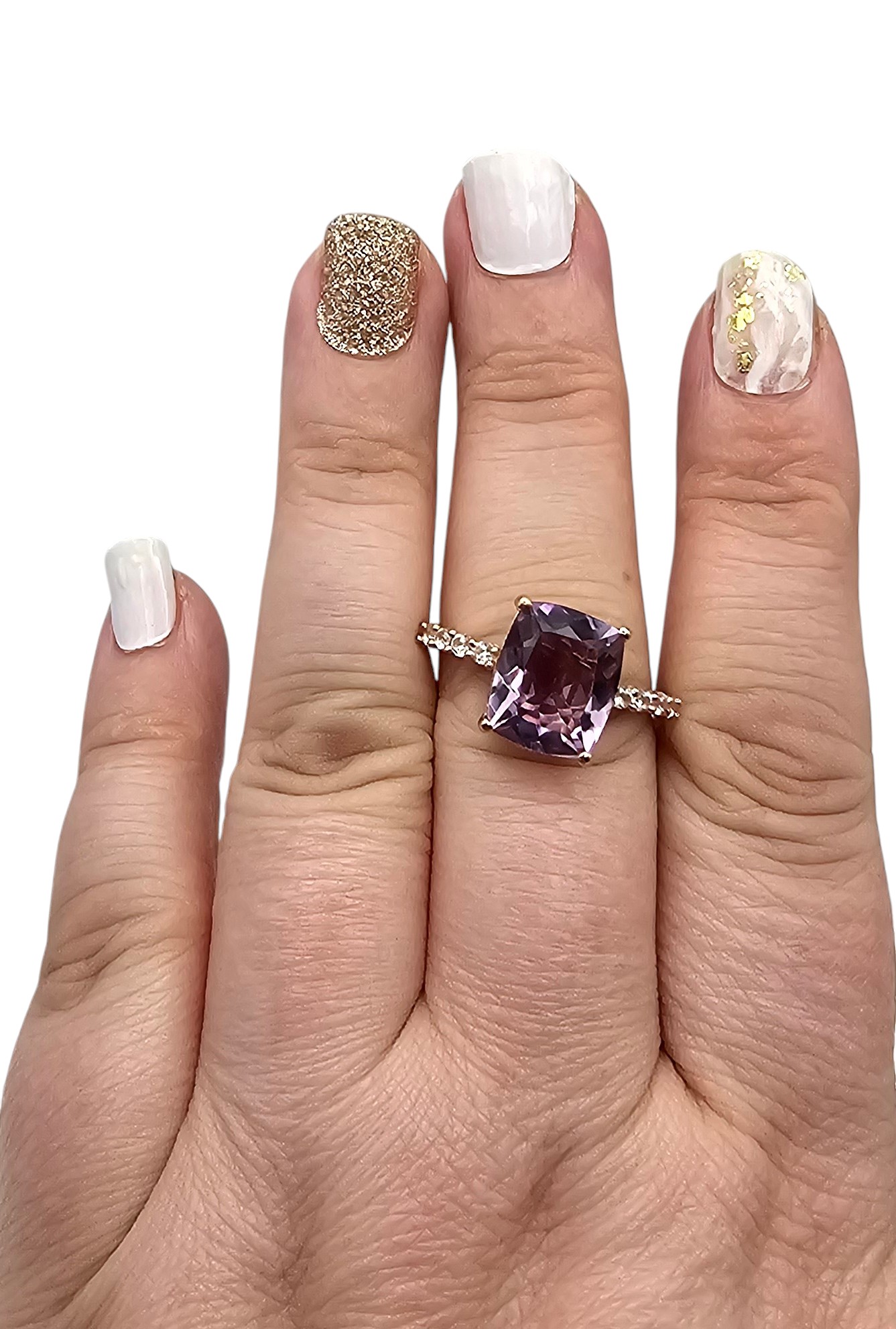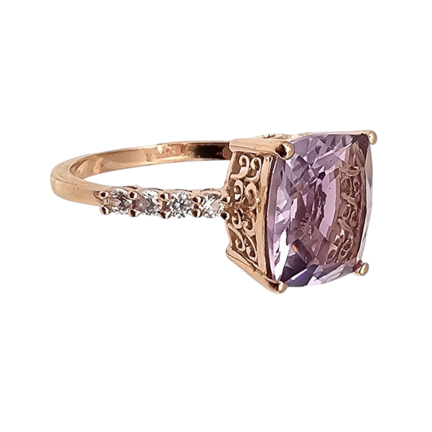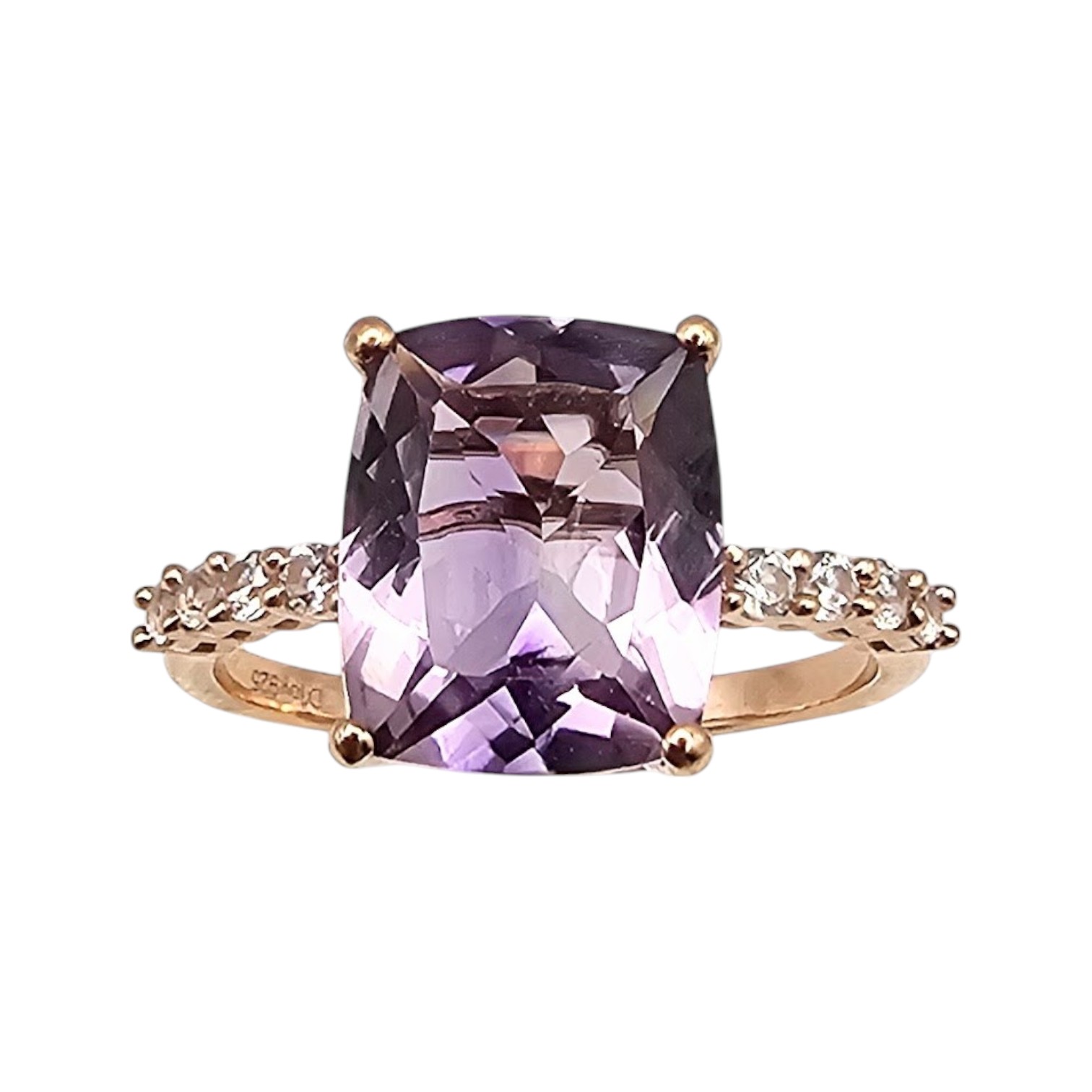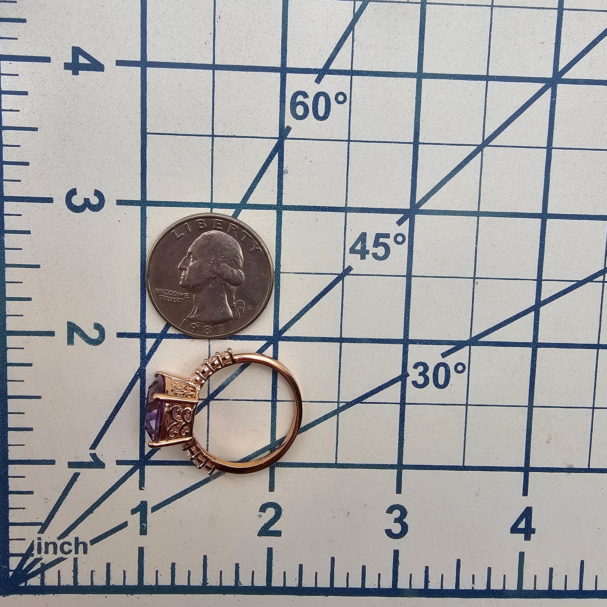 D’Joy Amethyst White Zircon Rose Gold Over Sterling Silver Cocktail Ring Size 9.75 4 G