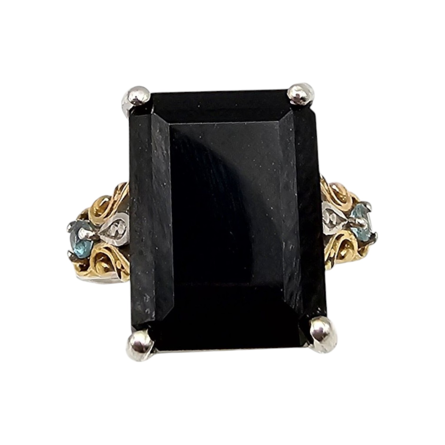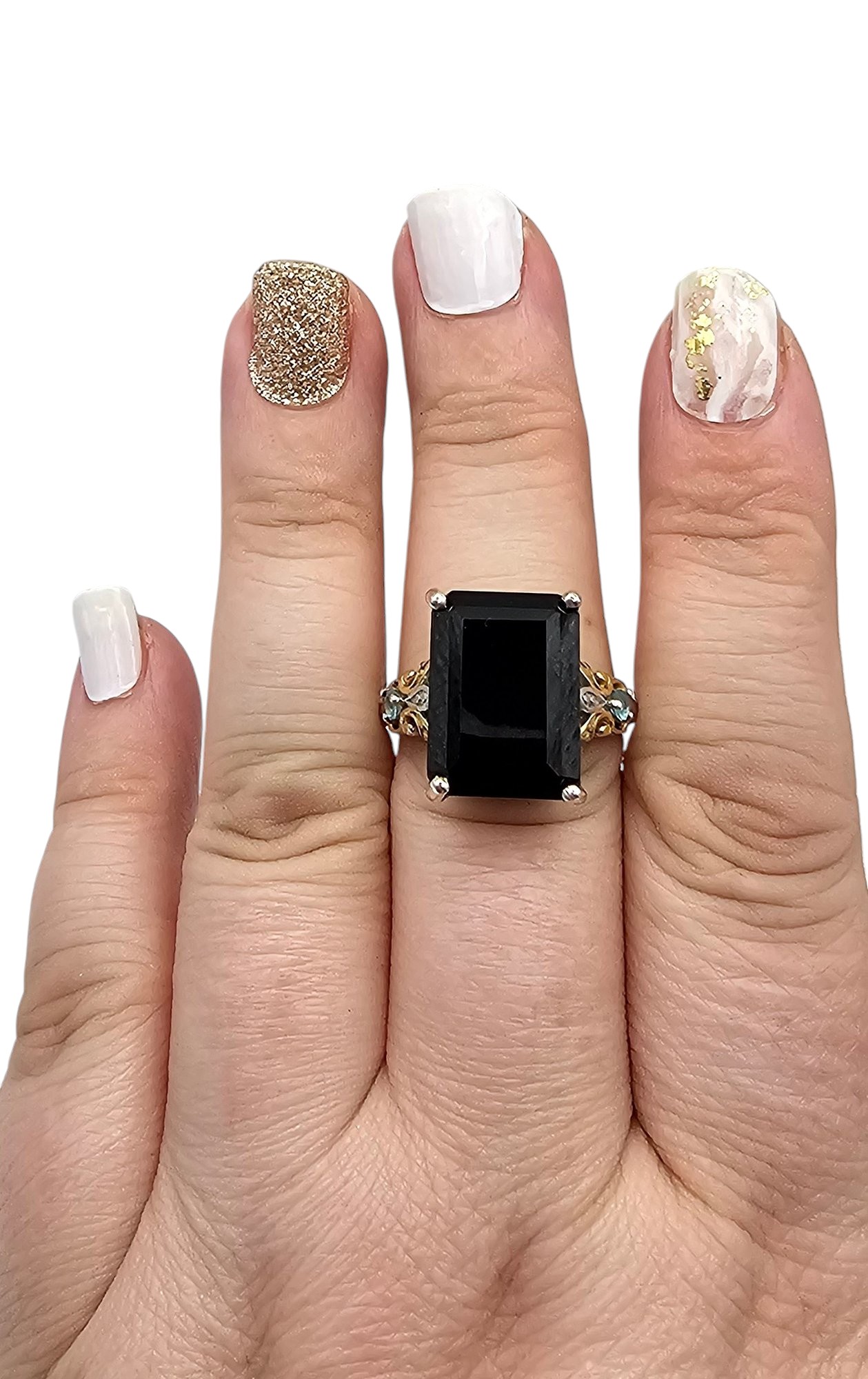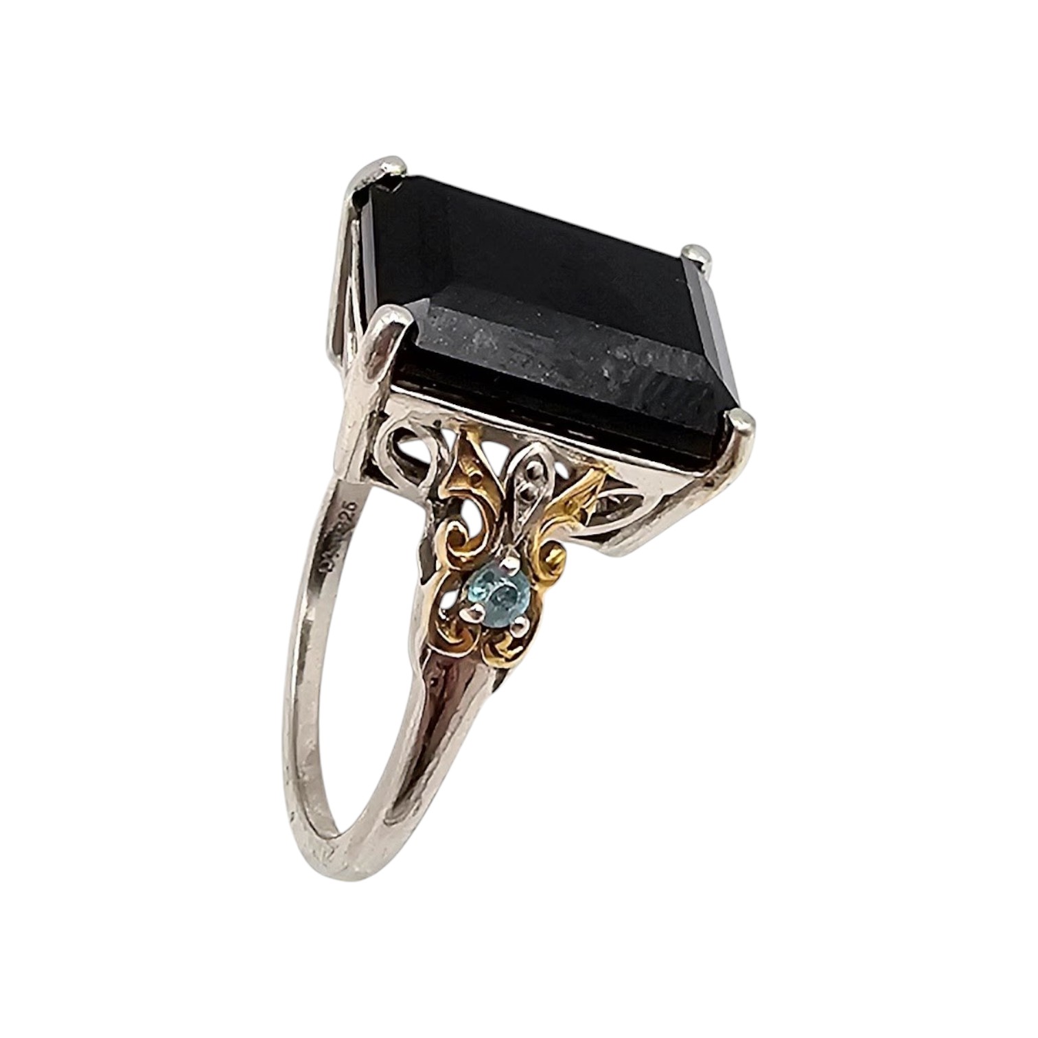D’Joy Onyx Sterling Silver Two-Tone Ring Size 9.75 7.6 G