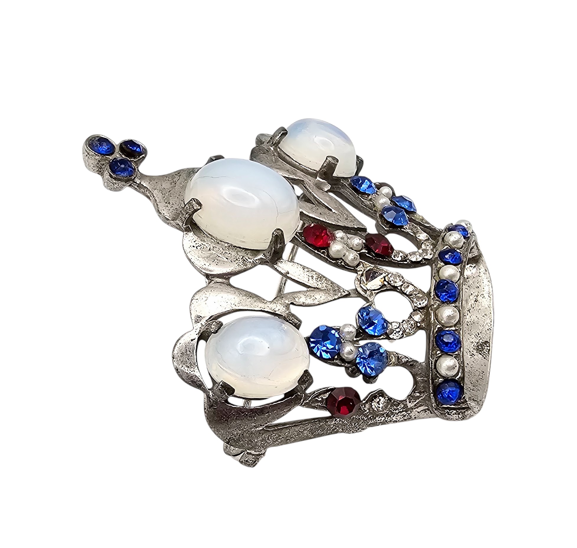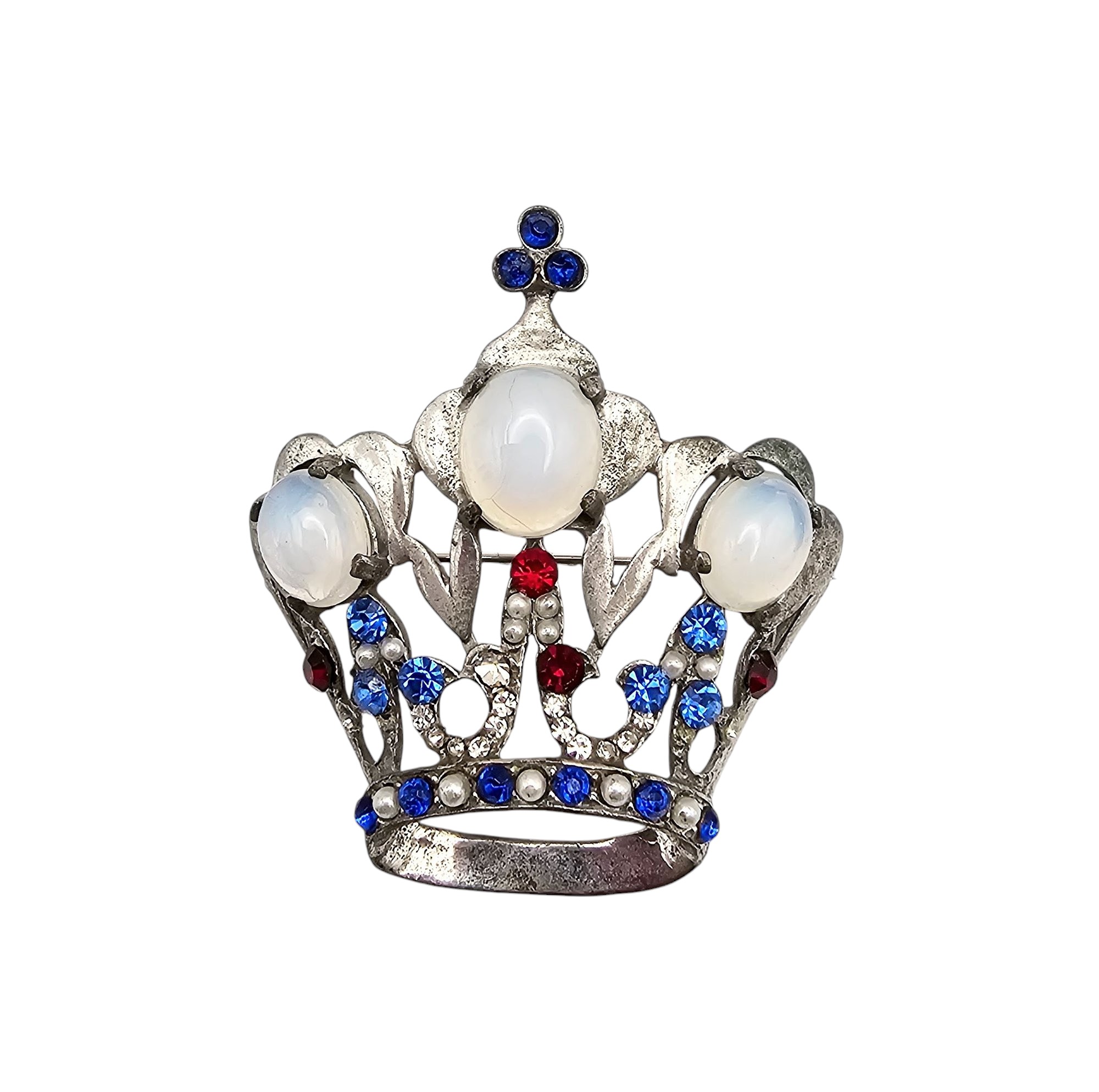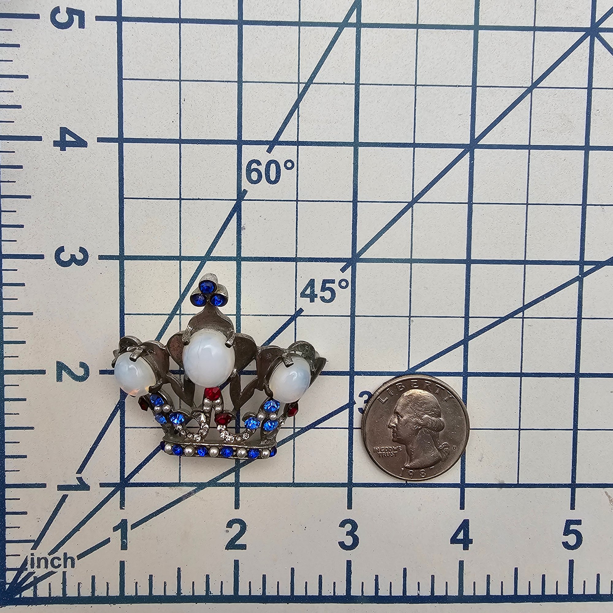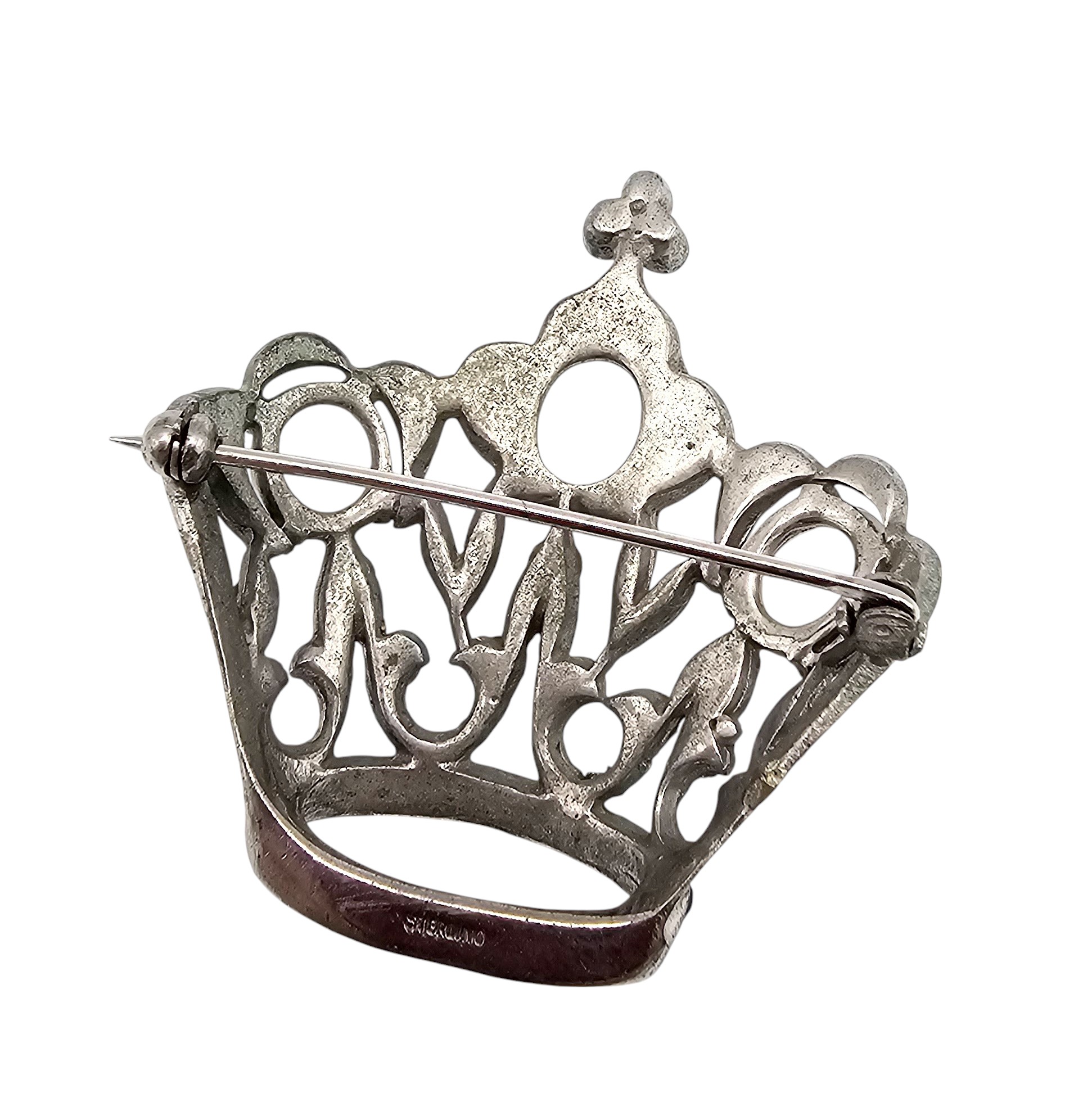 Vintage Moonstone Seed Pearl Rhinestone Sterling Silver Crown. Brooch 16.1 G as is missing one stone