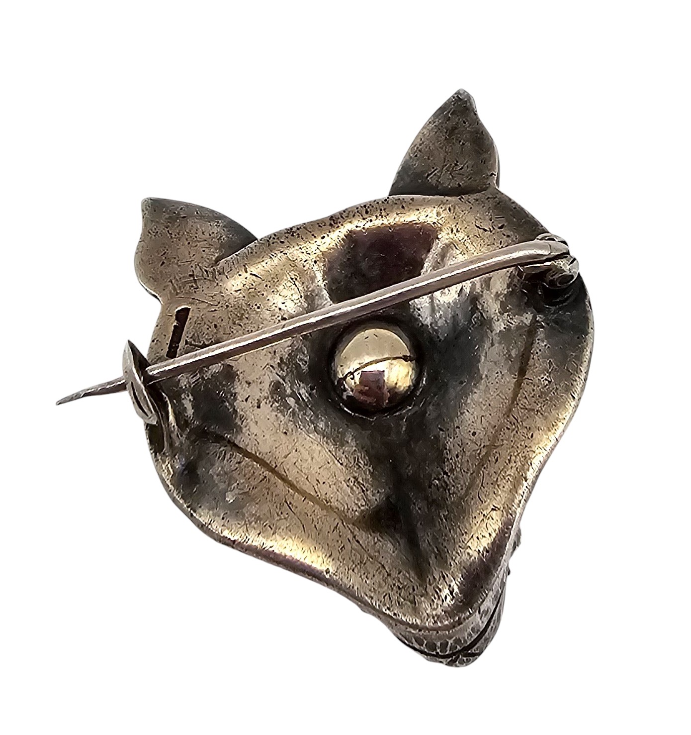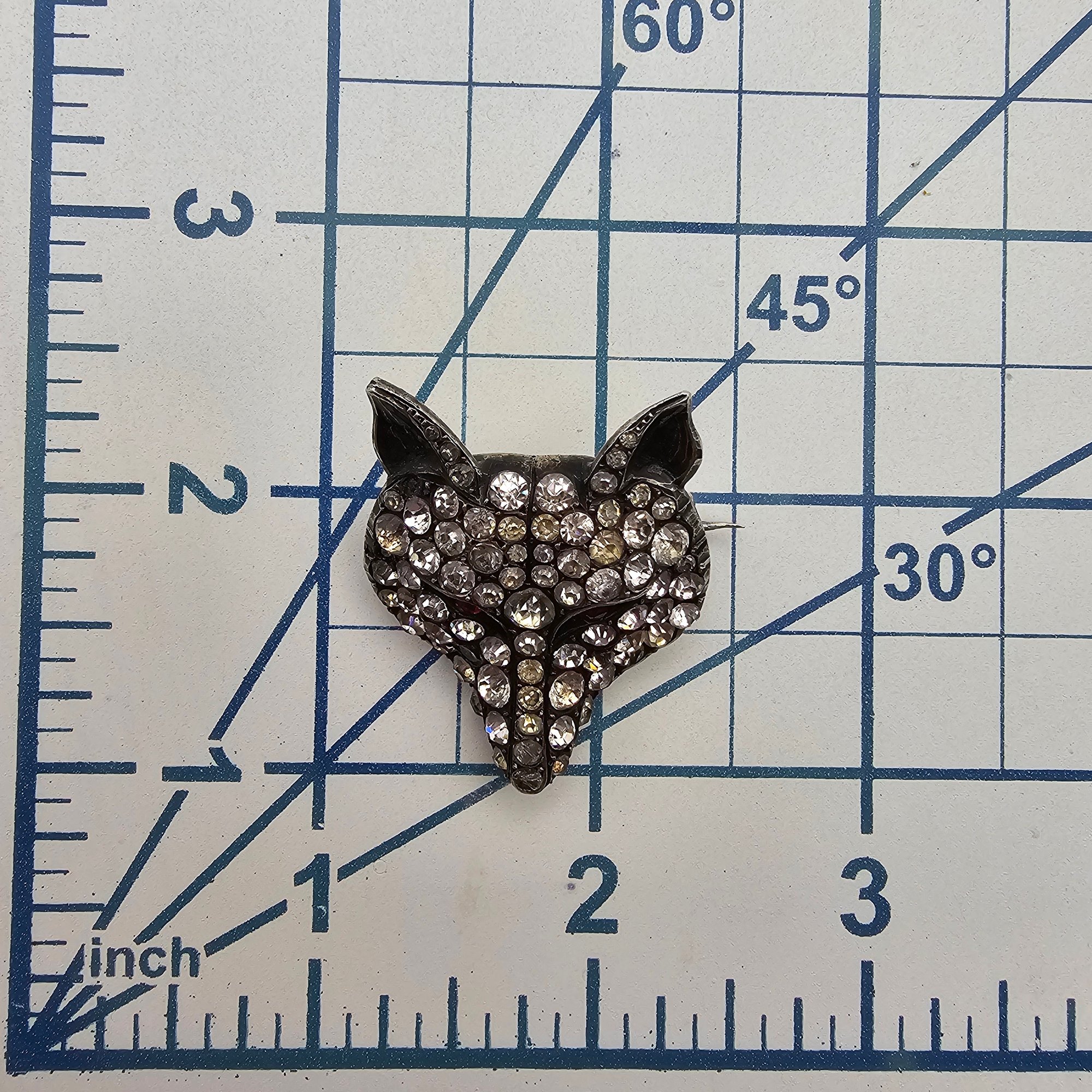 Vintage deco style rhinestone Sterling Silver Fox cat face Brooch 20 G