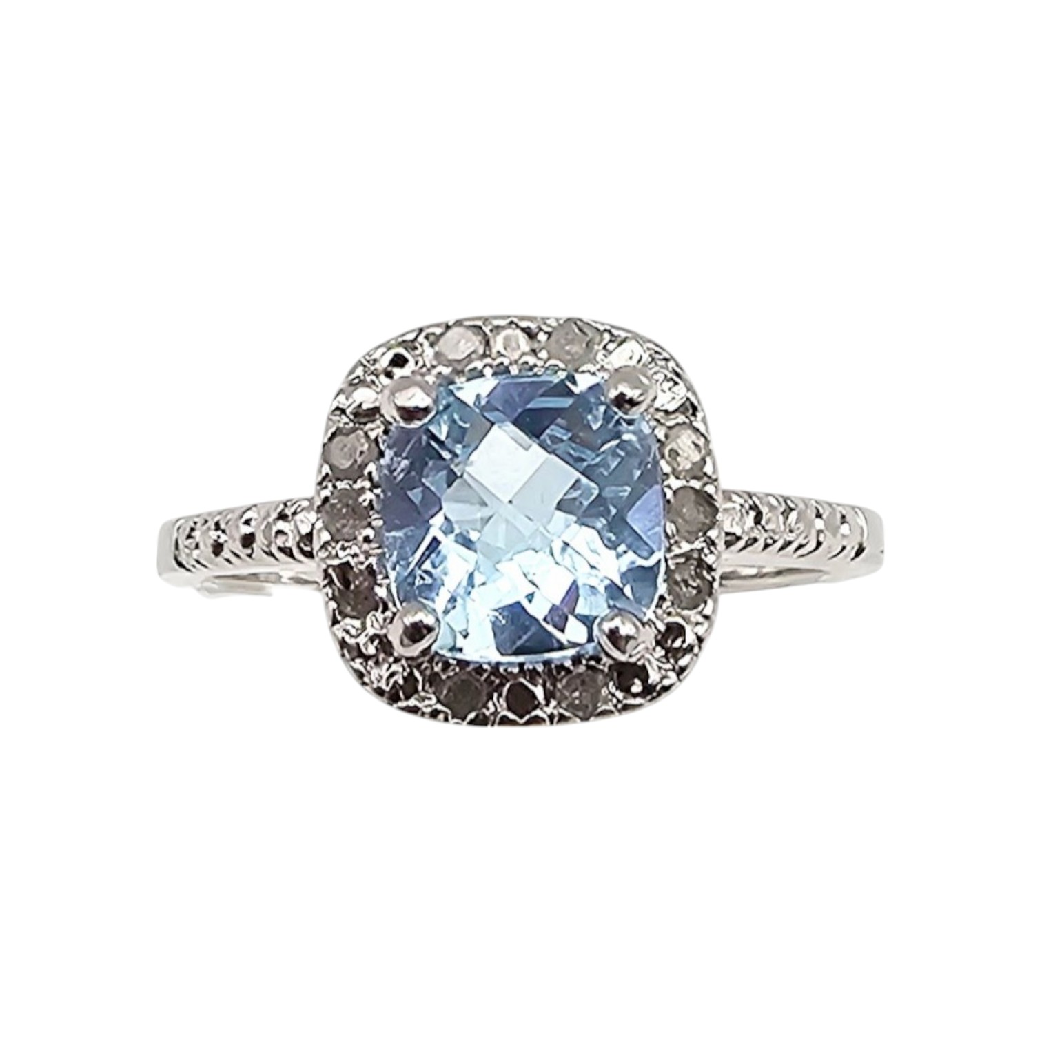 DBJ Topaz Diamond Sterling Silver Cocktail Ring Size 7.5 3.2 G