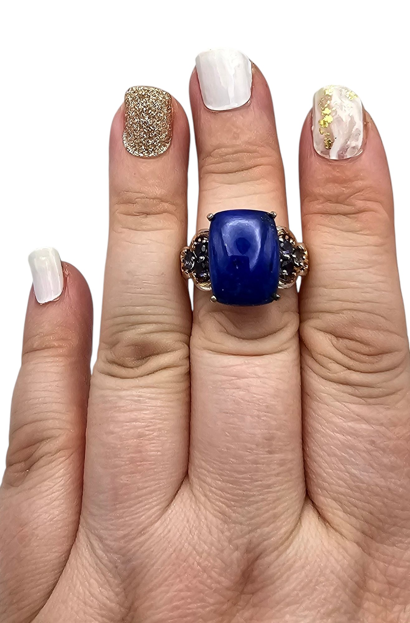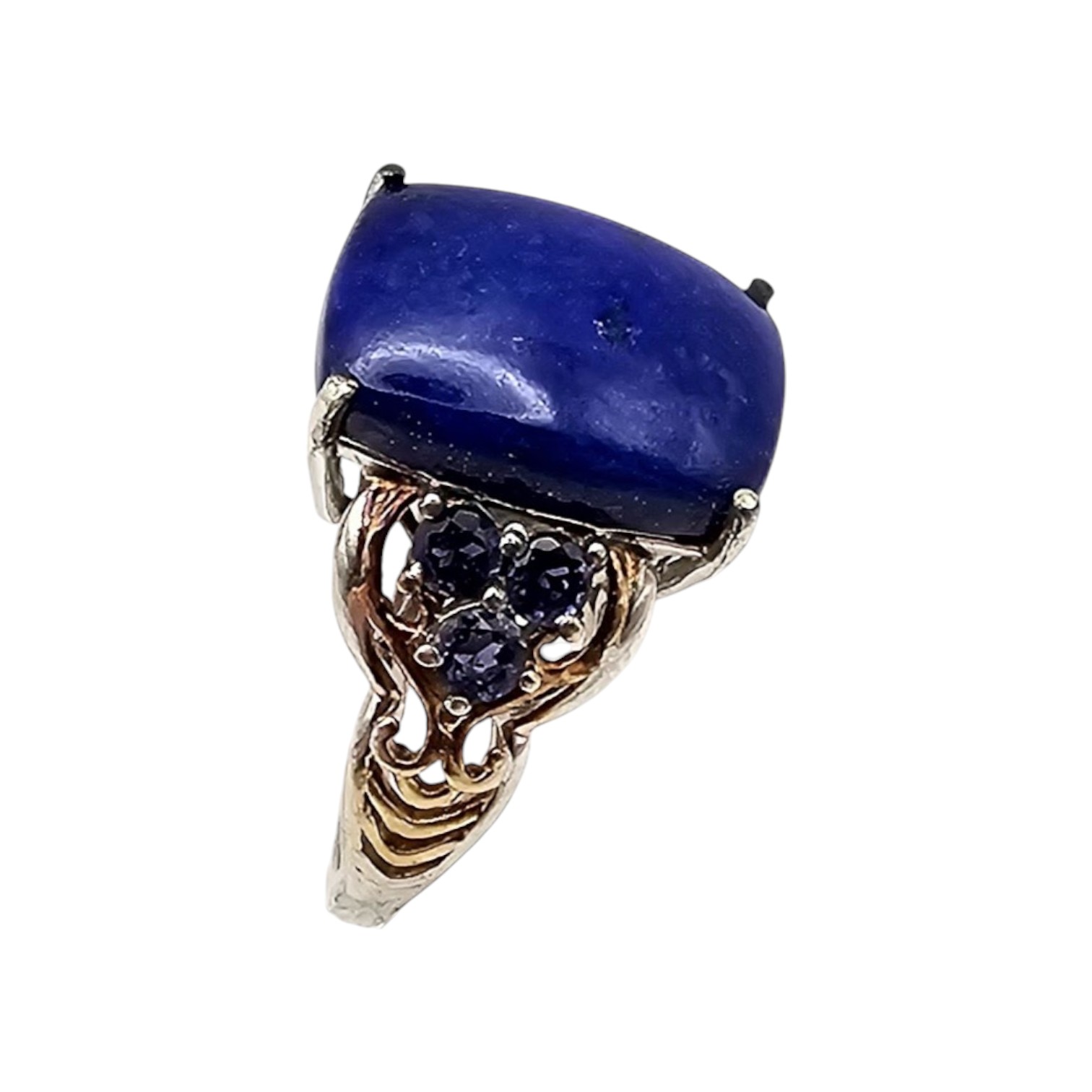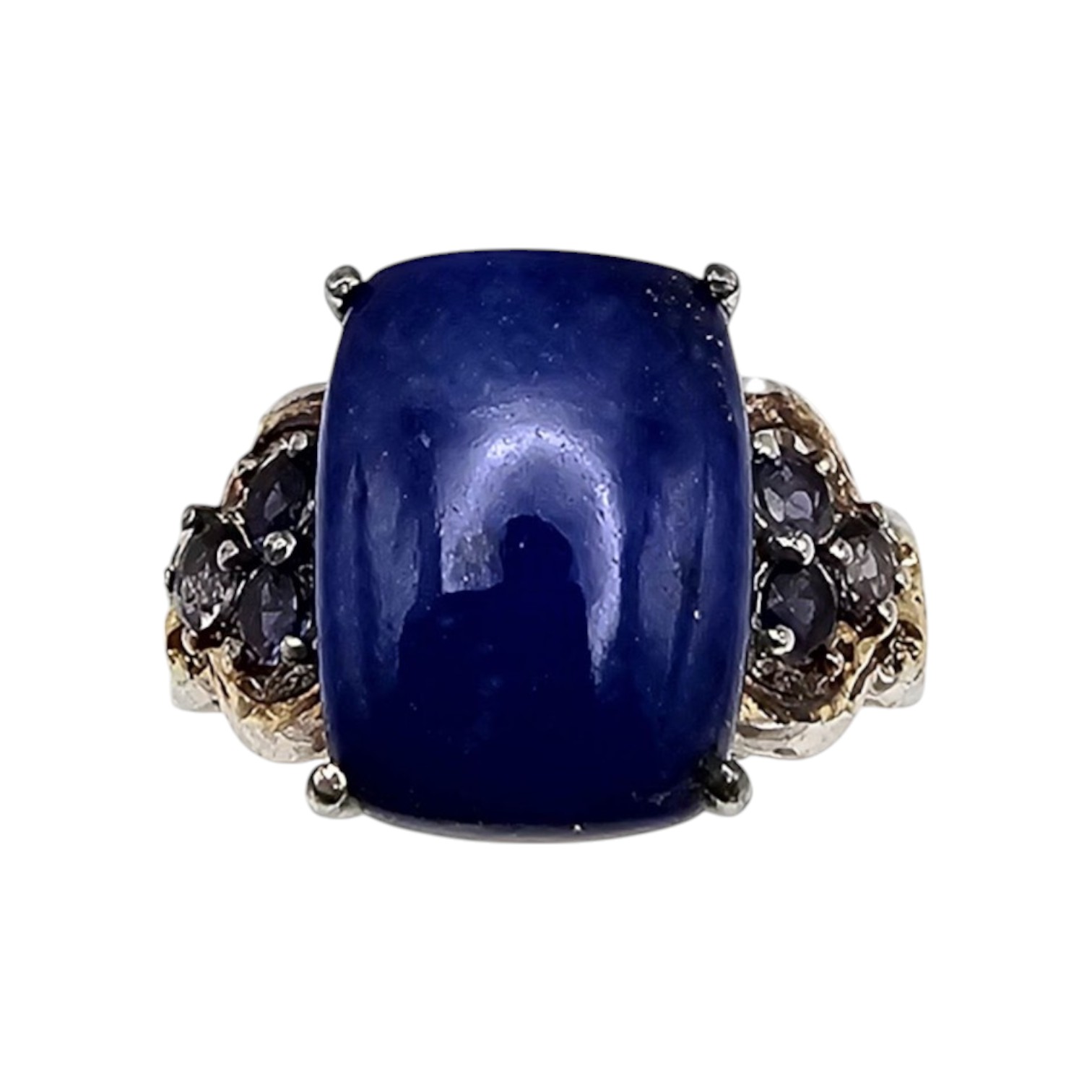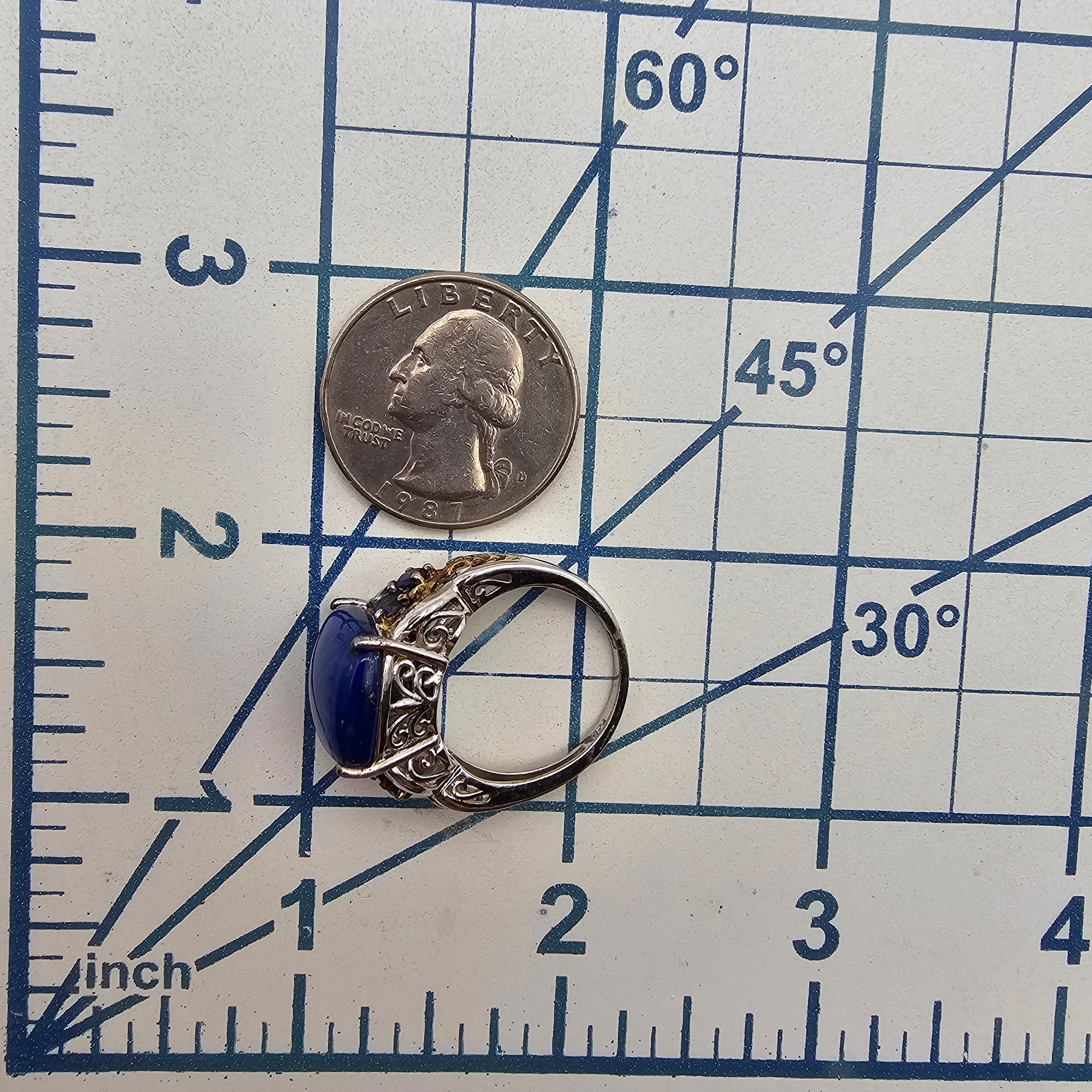 STS Lapis Rhinestone Sterling Silver Cocktail Ring Size 7.75 6.5 G