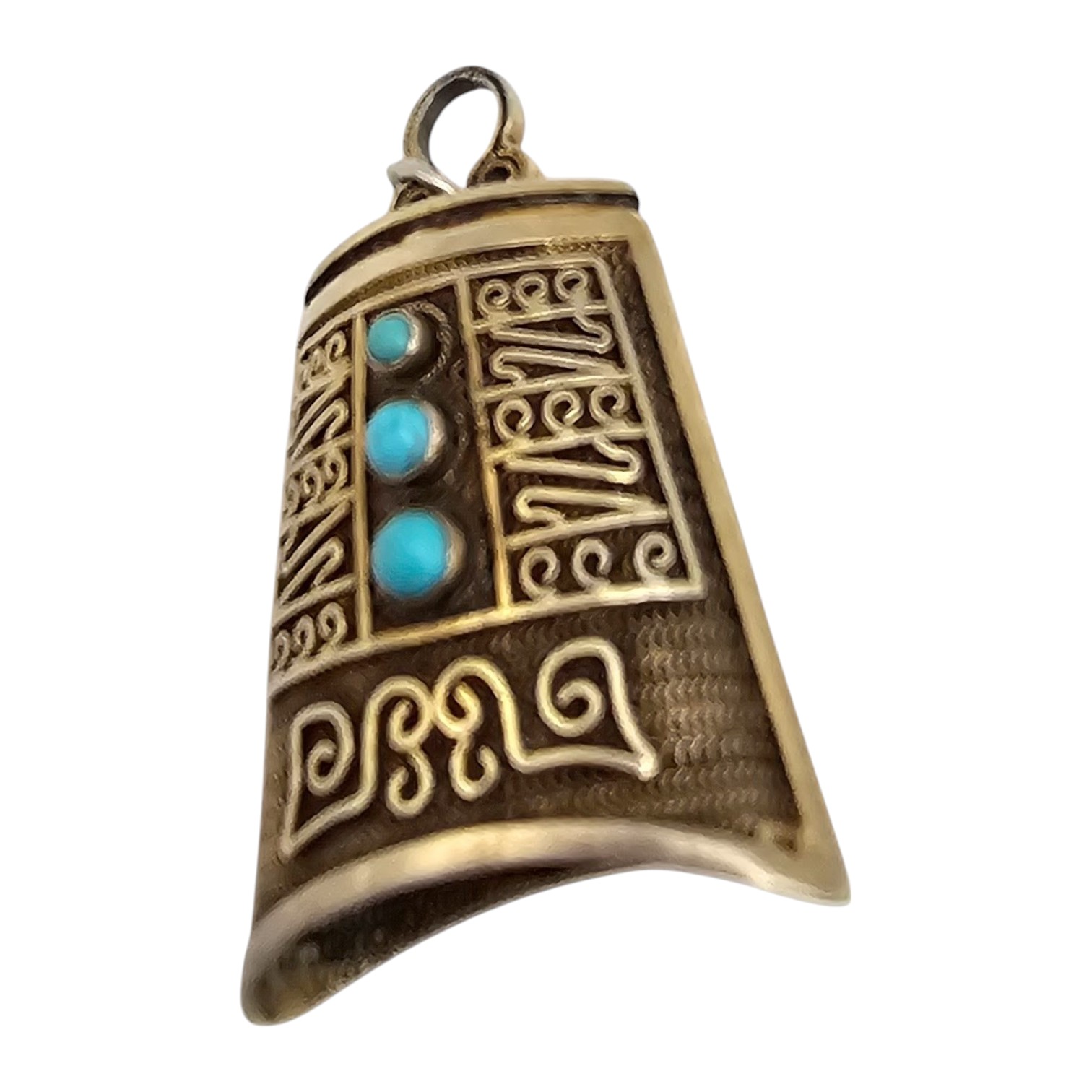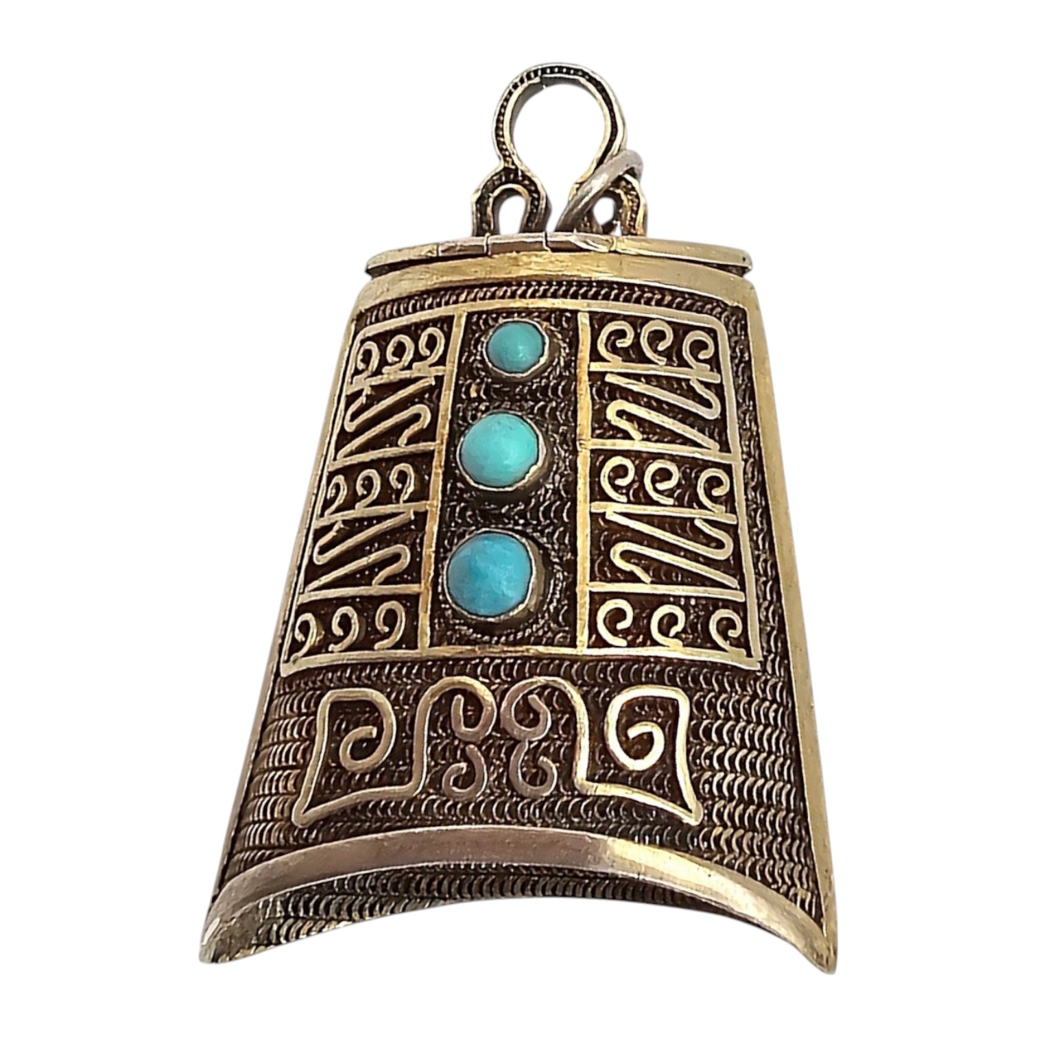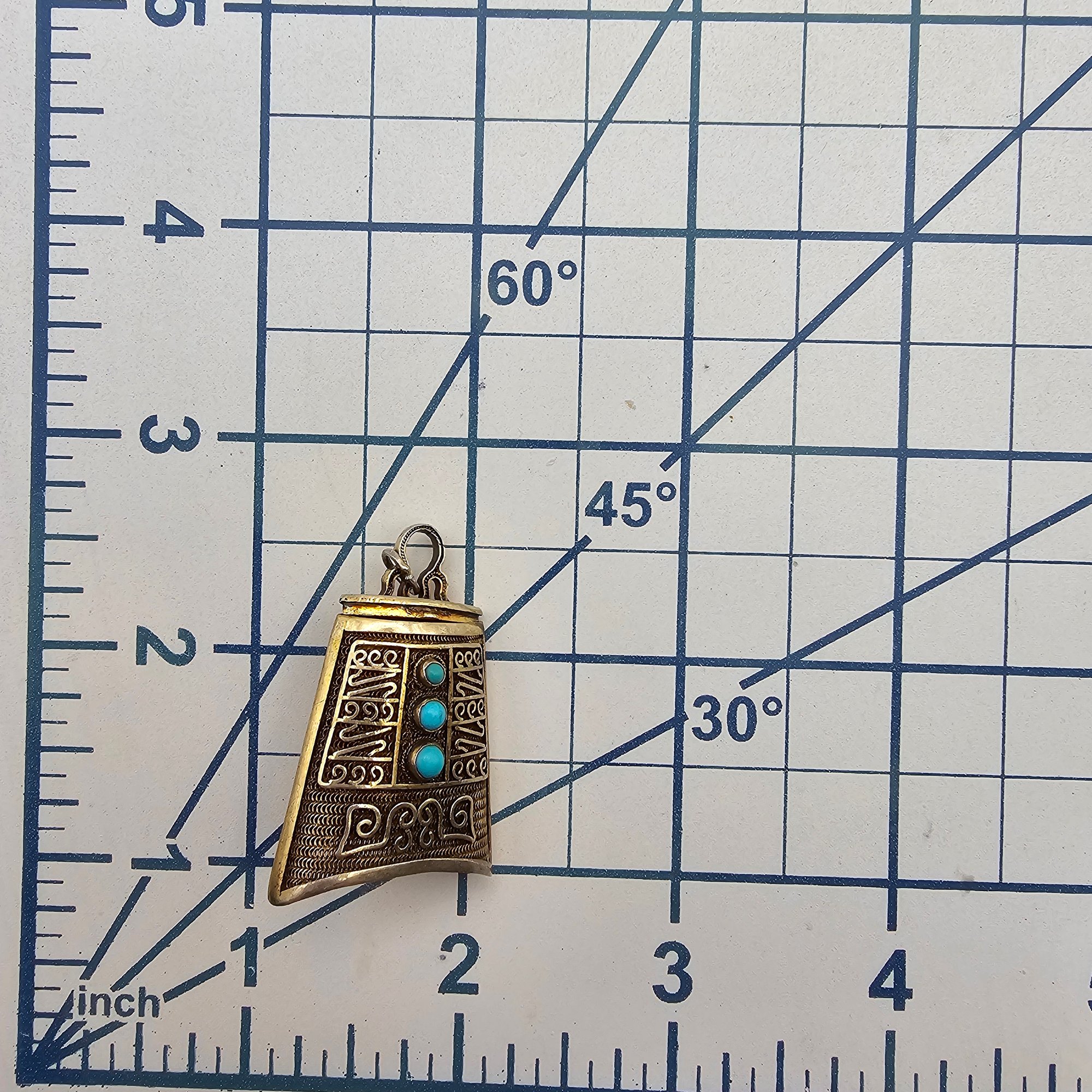 Vintage Chinese Import Turquoise Gold Over Sterling Silver mesh open top charm 8.1 G
