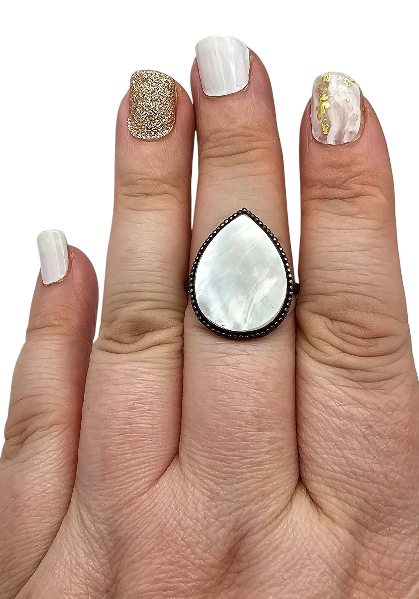 Mother Of Pearl Sterling Silver Ring Size 9.5 3.4 G