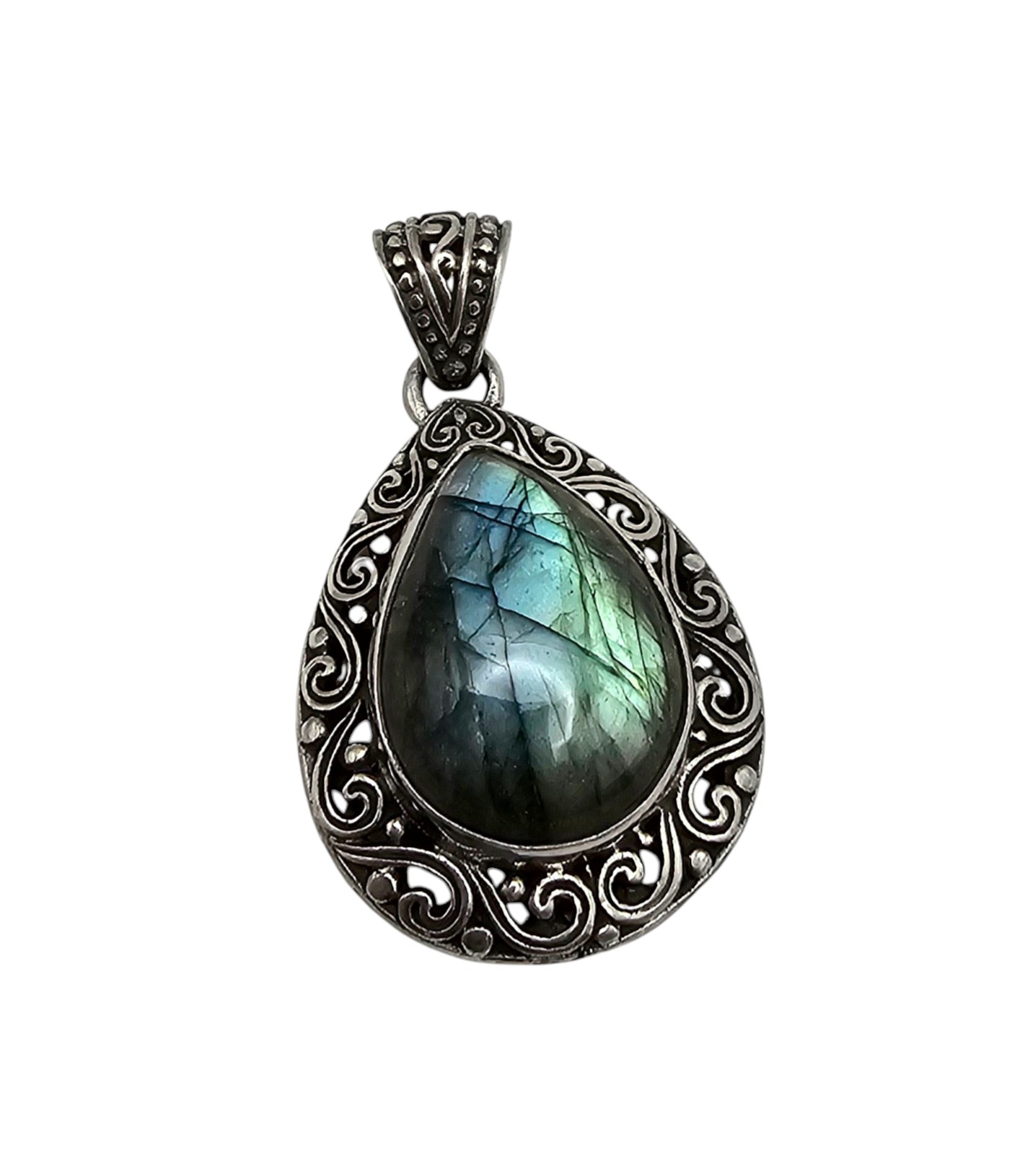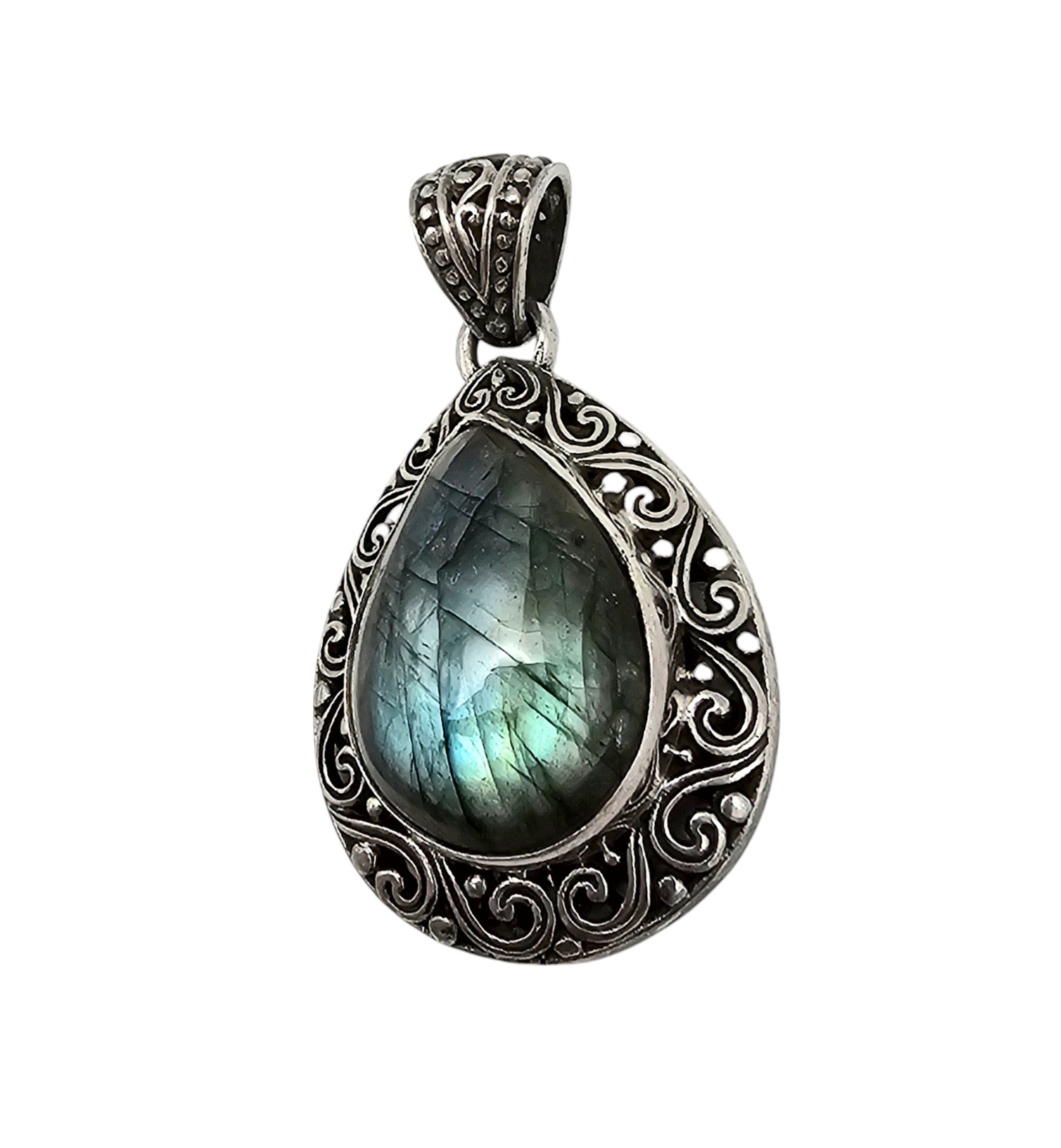 Labradorite Flower Sterling Silver Pendant 7.5 G