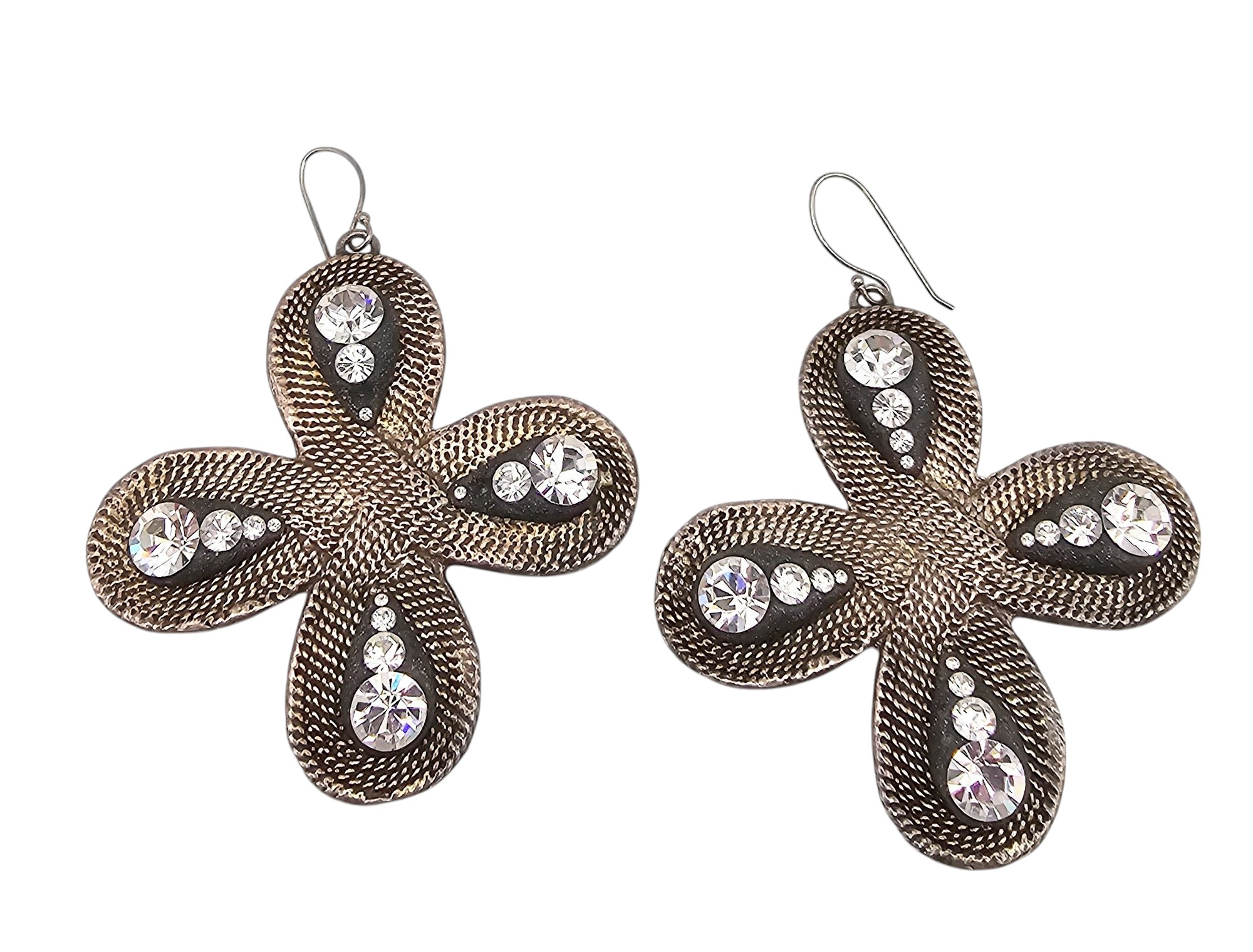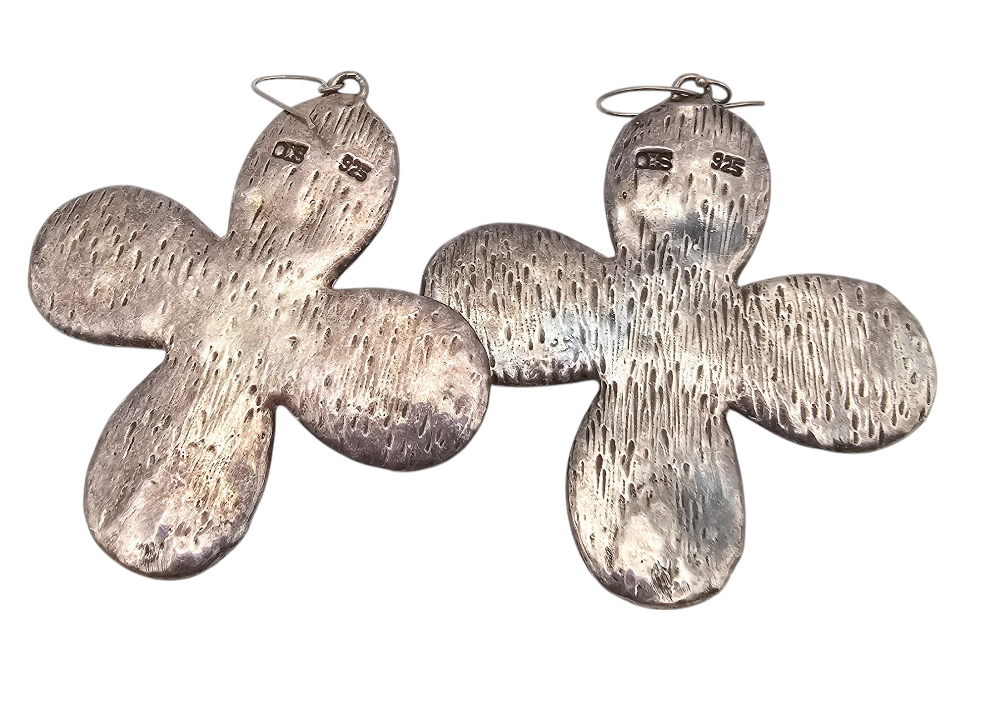O. S. Schatzman rhinestone Sterling Silver Flower Drop Dangle Earrings 21.6 G