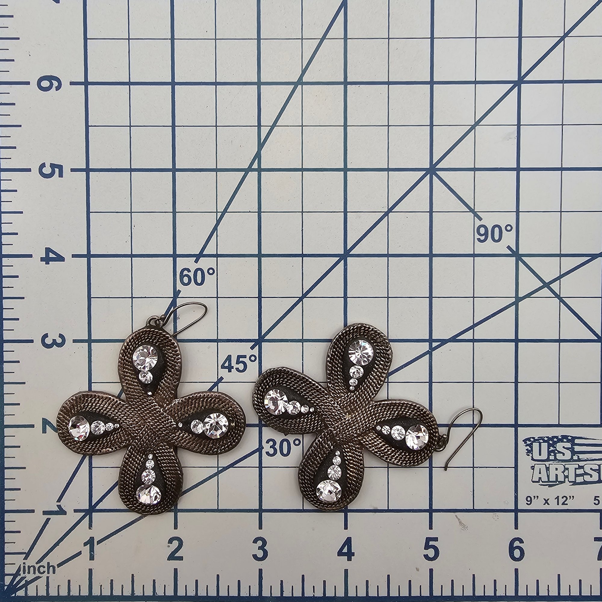 O. S. Schatzman Rhinestone Sterling Silver Flower Drop Dangle Earrings 21.6 G