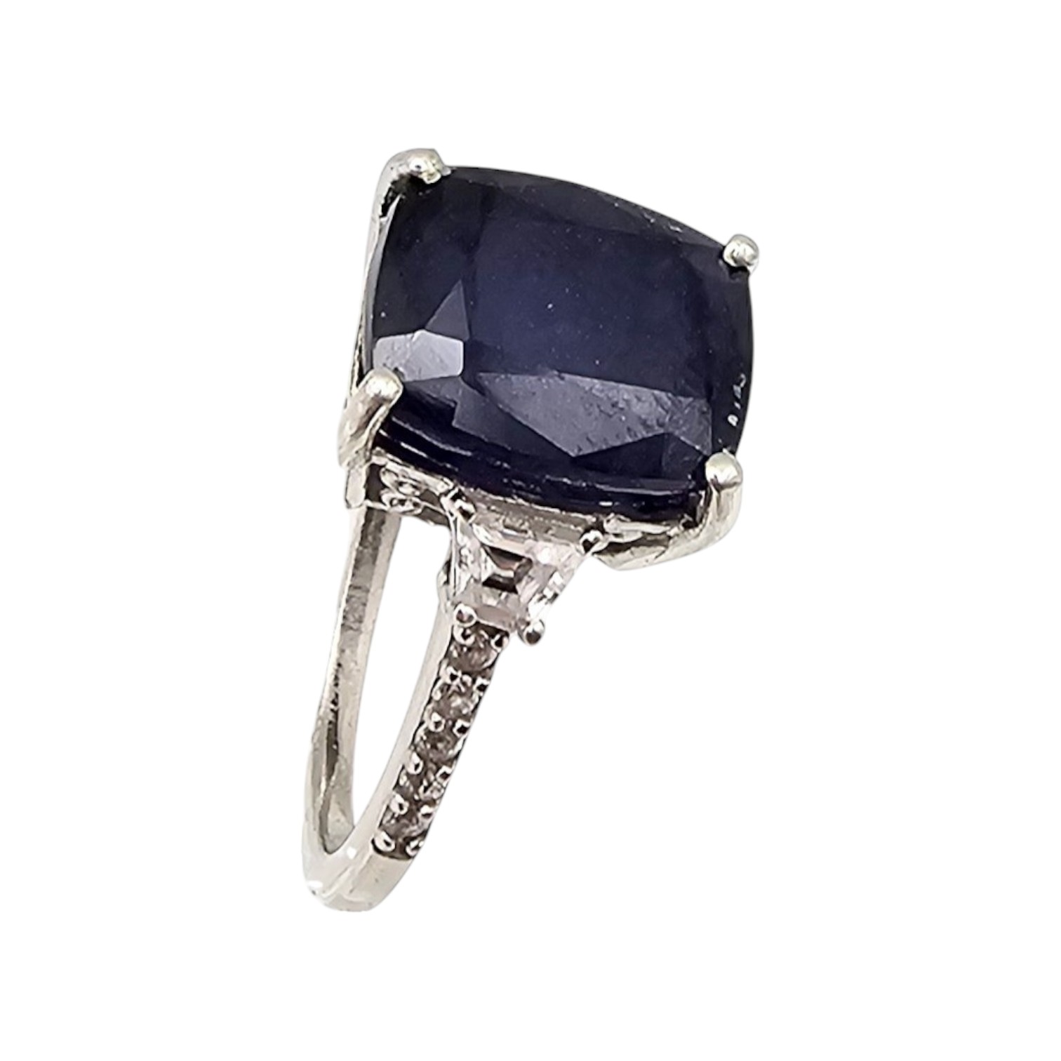D’Joy Sapphire White Topaz Sterling Silver Cocktail Ring Size 7.75 5 G