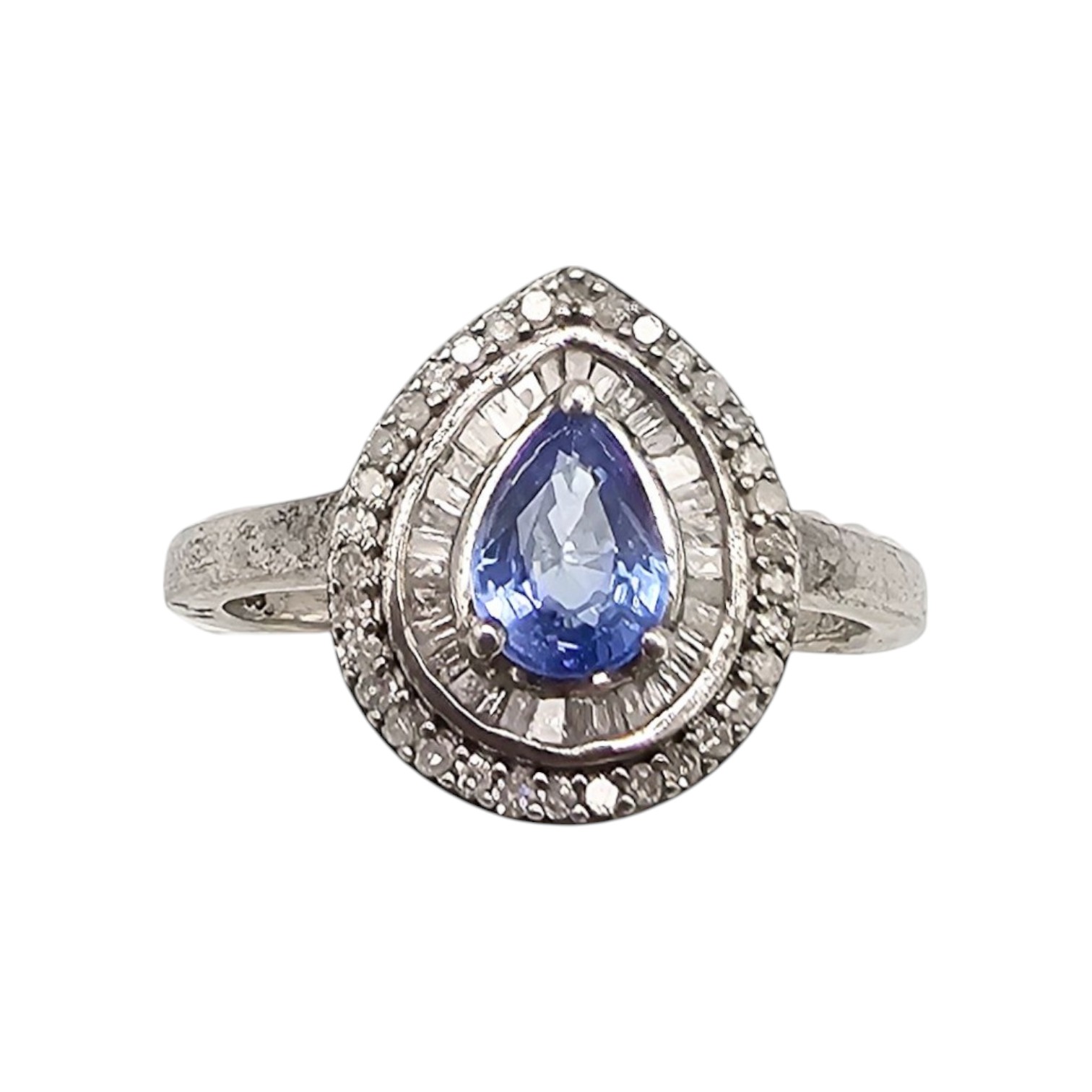 D’Joy Diamond Sapphire Sterling Silver Cocktail Ring Size 8.5 3.9 G