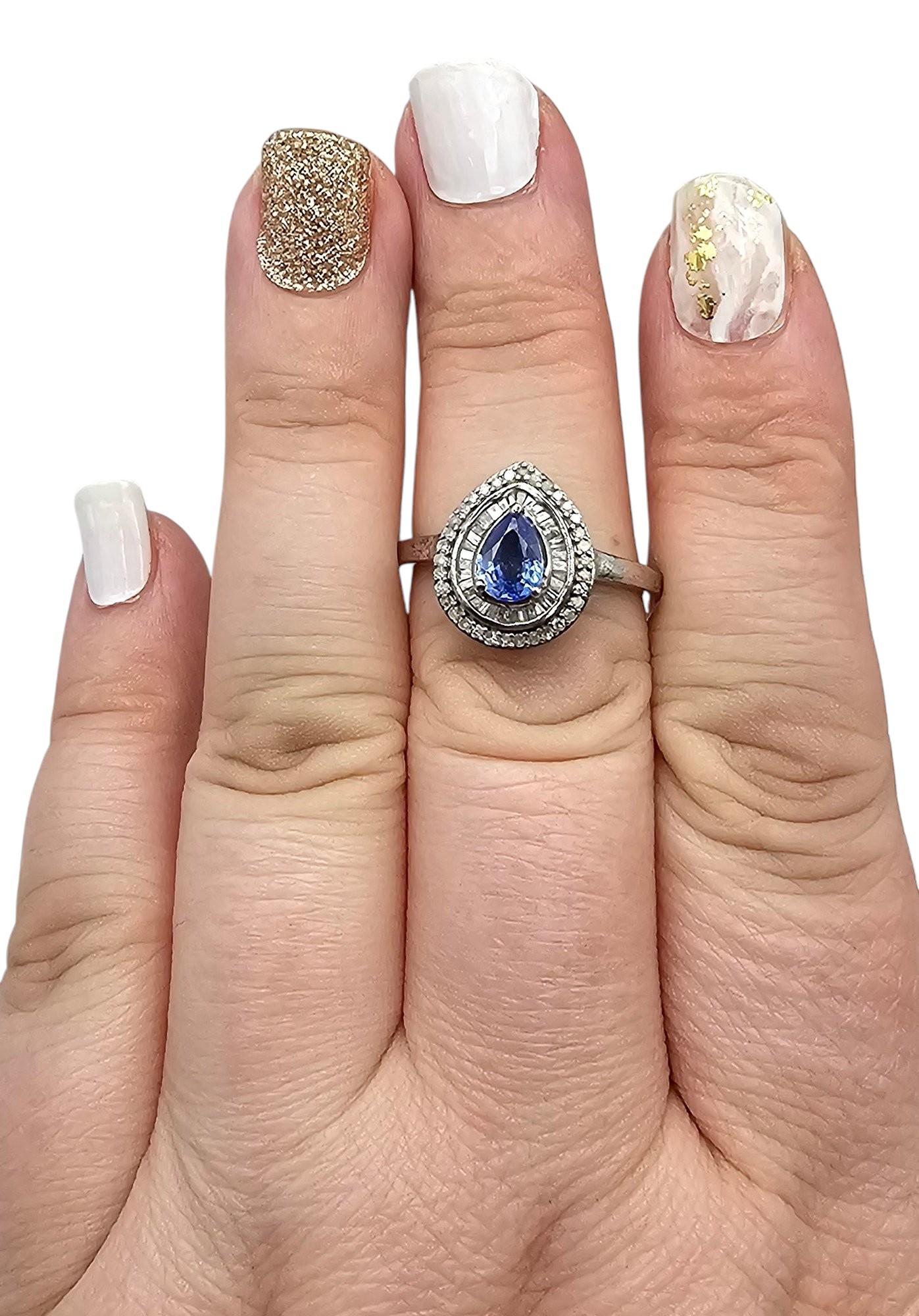 D'Joy Diamond Sapphire Sterling Silver Cocktail Ring Size 8.5 3.9 G