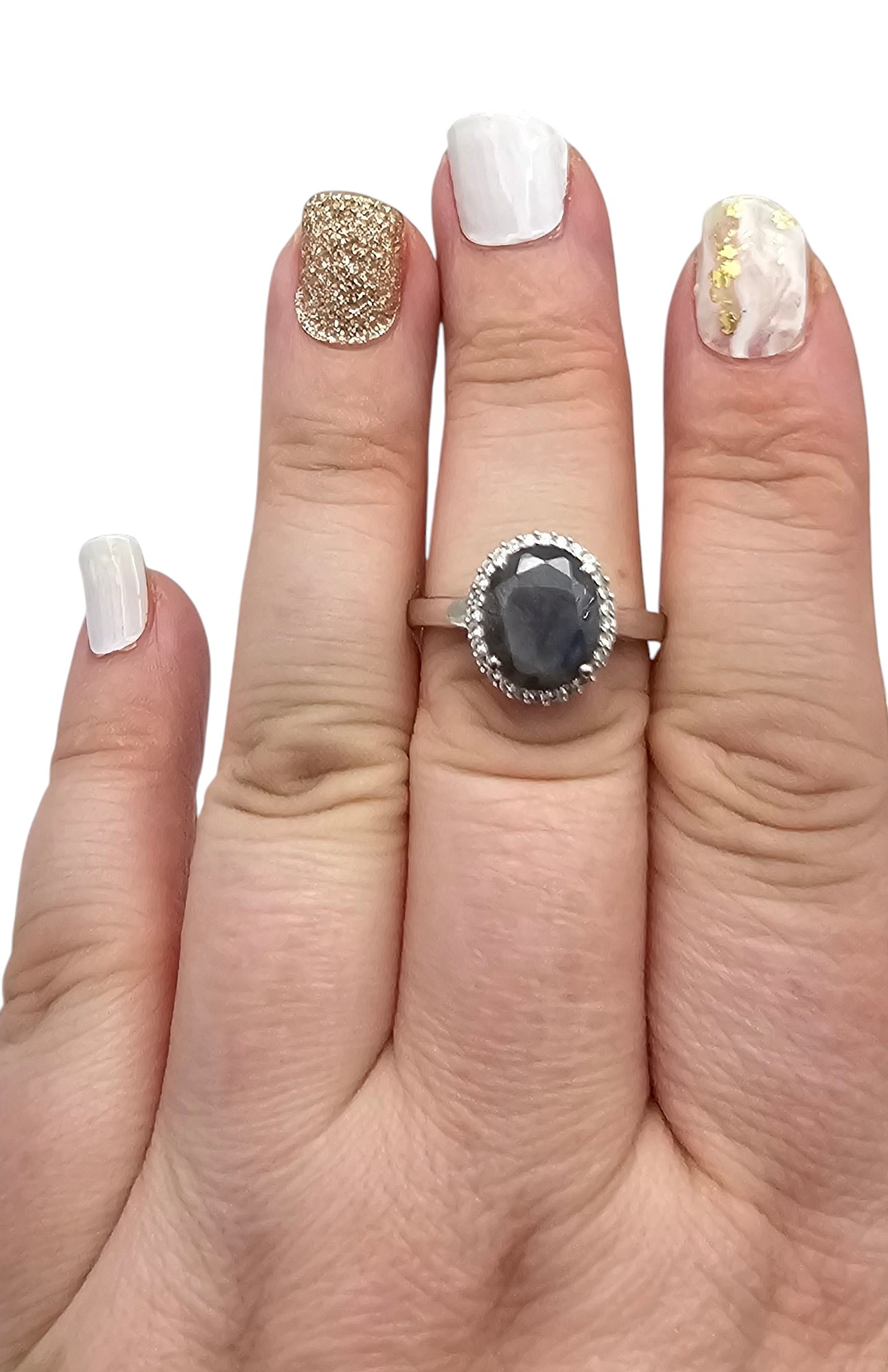 STS Sapphire Diamond Sterling Silver Cocktail Ring Size 3.9 G