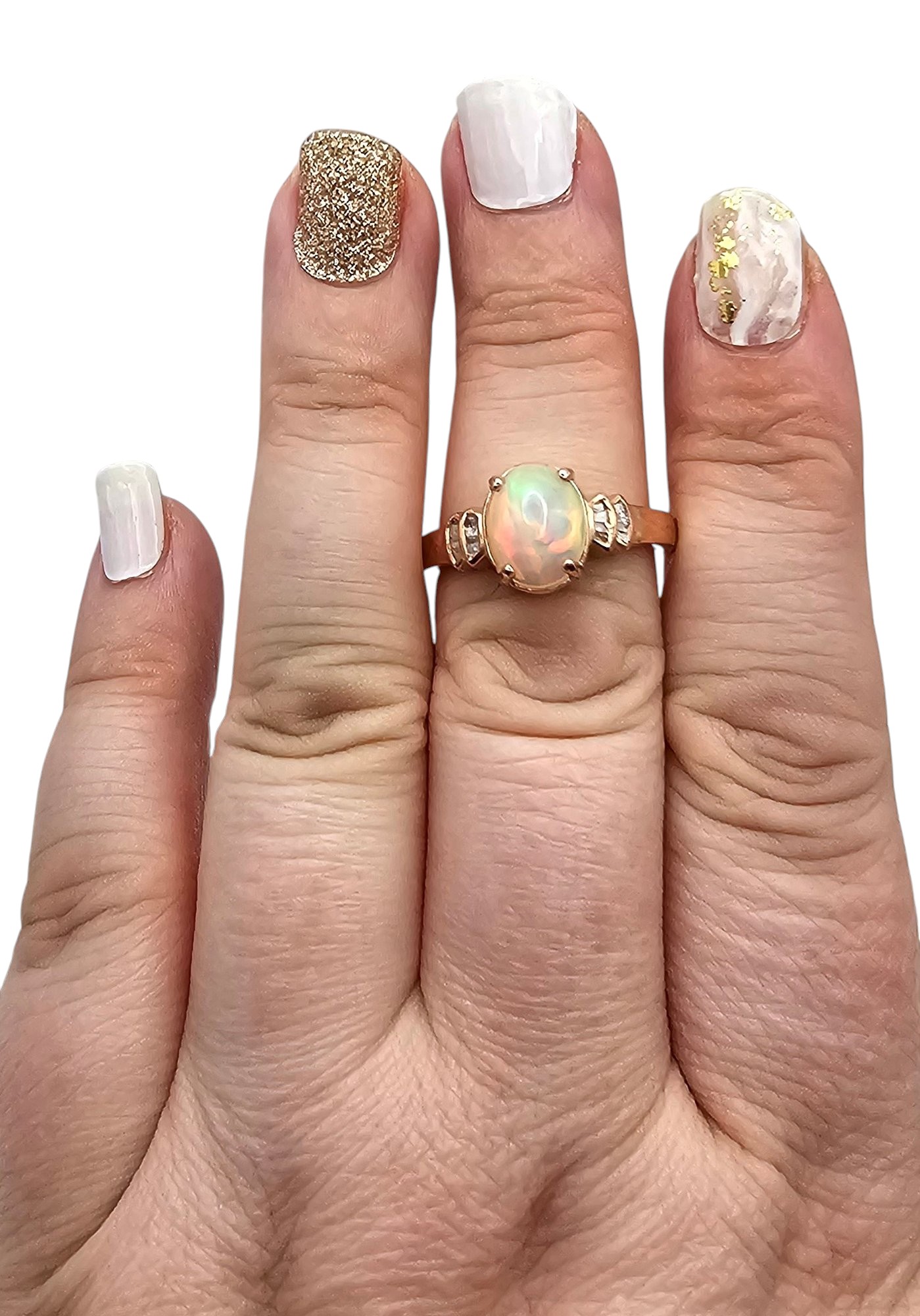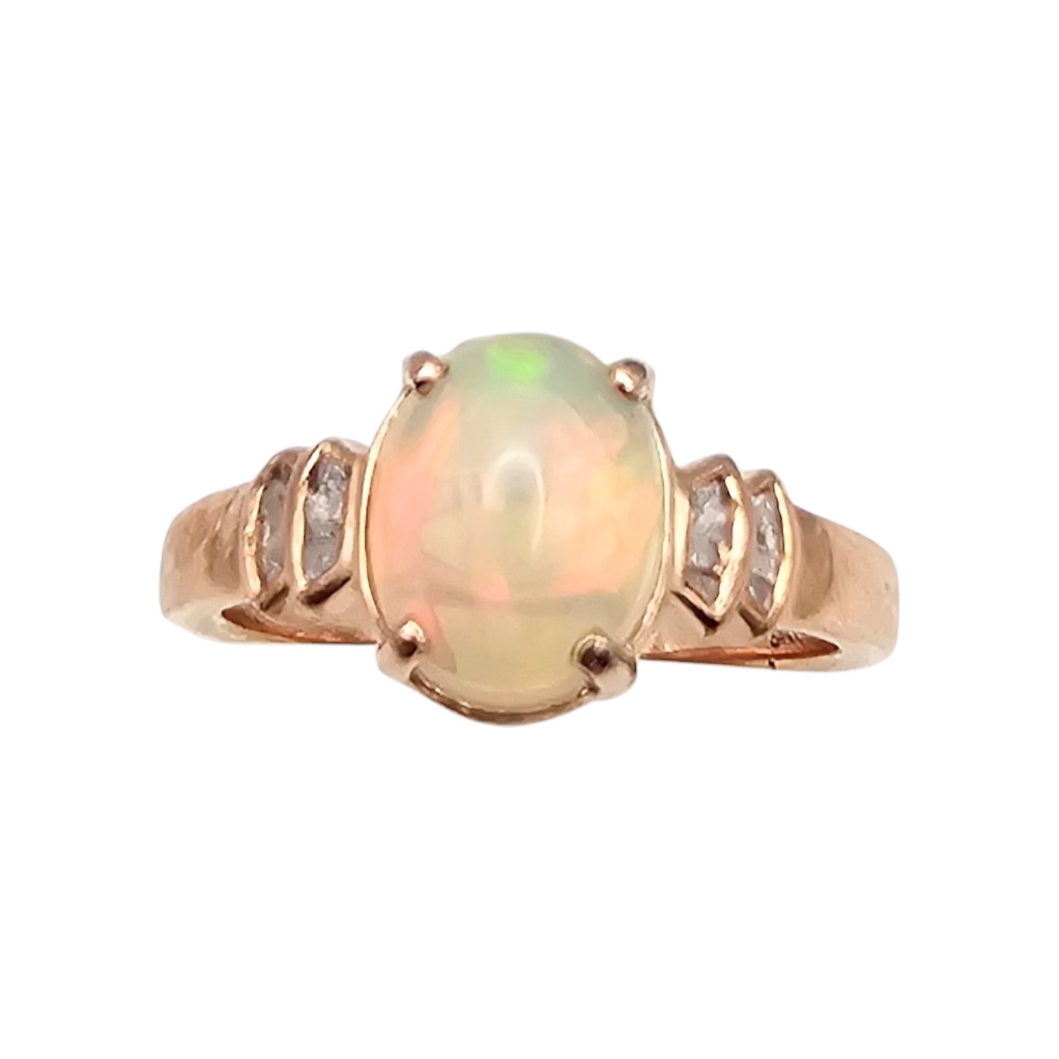 STS Opal Diamond Rose Gold Over Sterling Silver Cocktail Ring Size 8.5 4.2 G