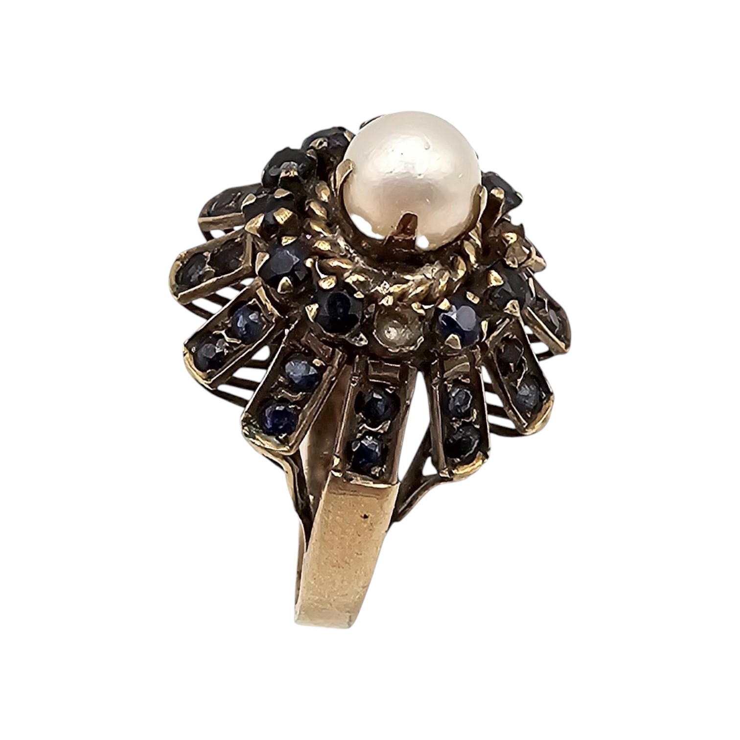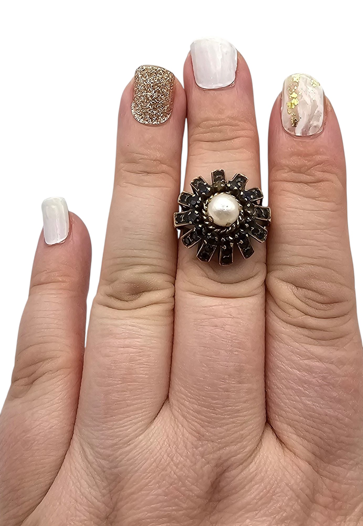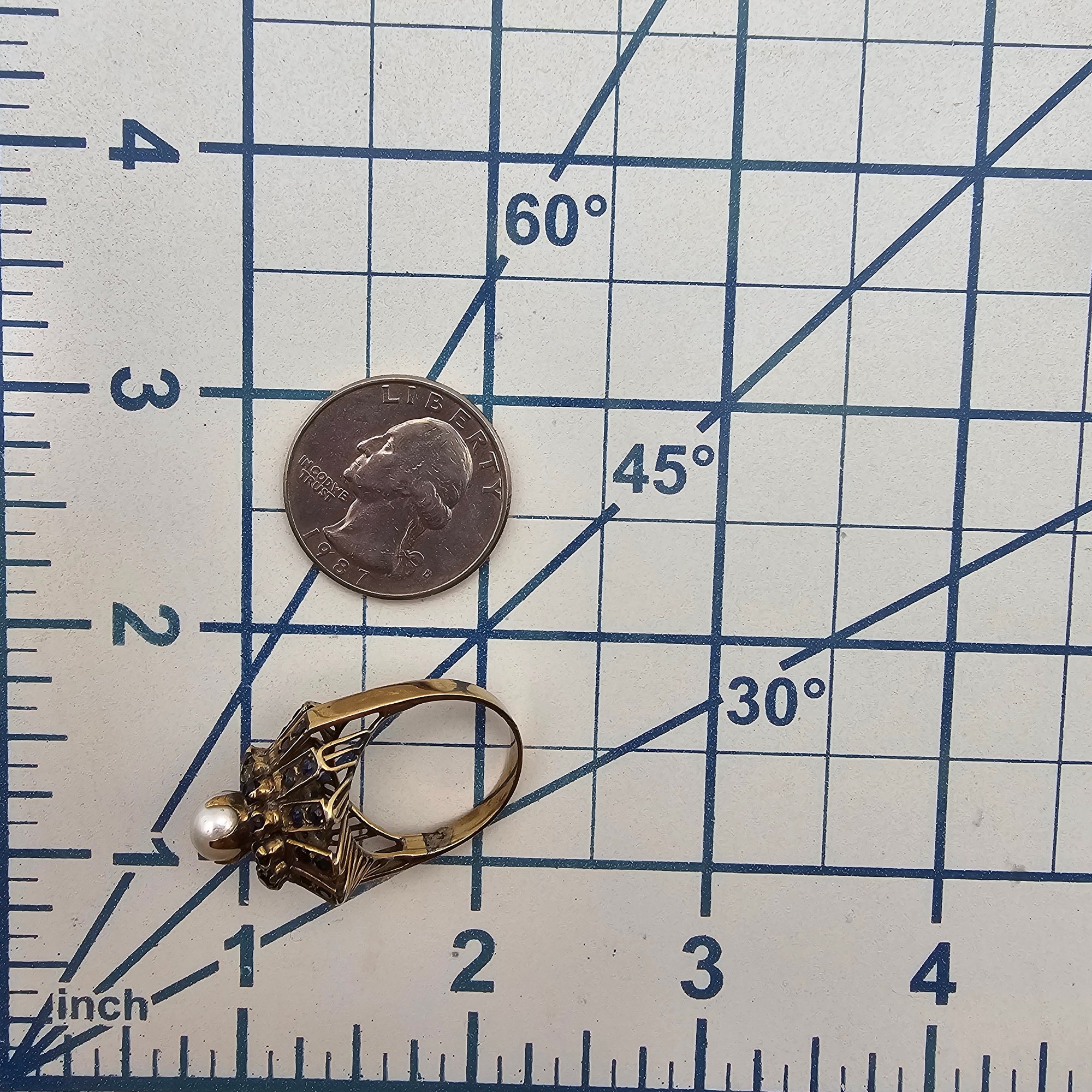 Vintage Topaz Pearl 14K Gold Dome Ring Size 7.75 4.9 G as is missing 2 stones