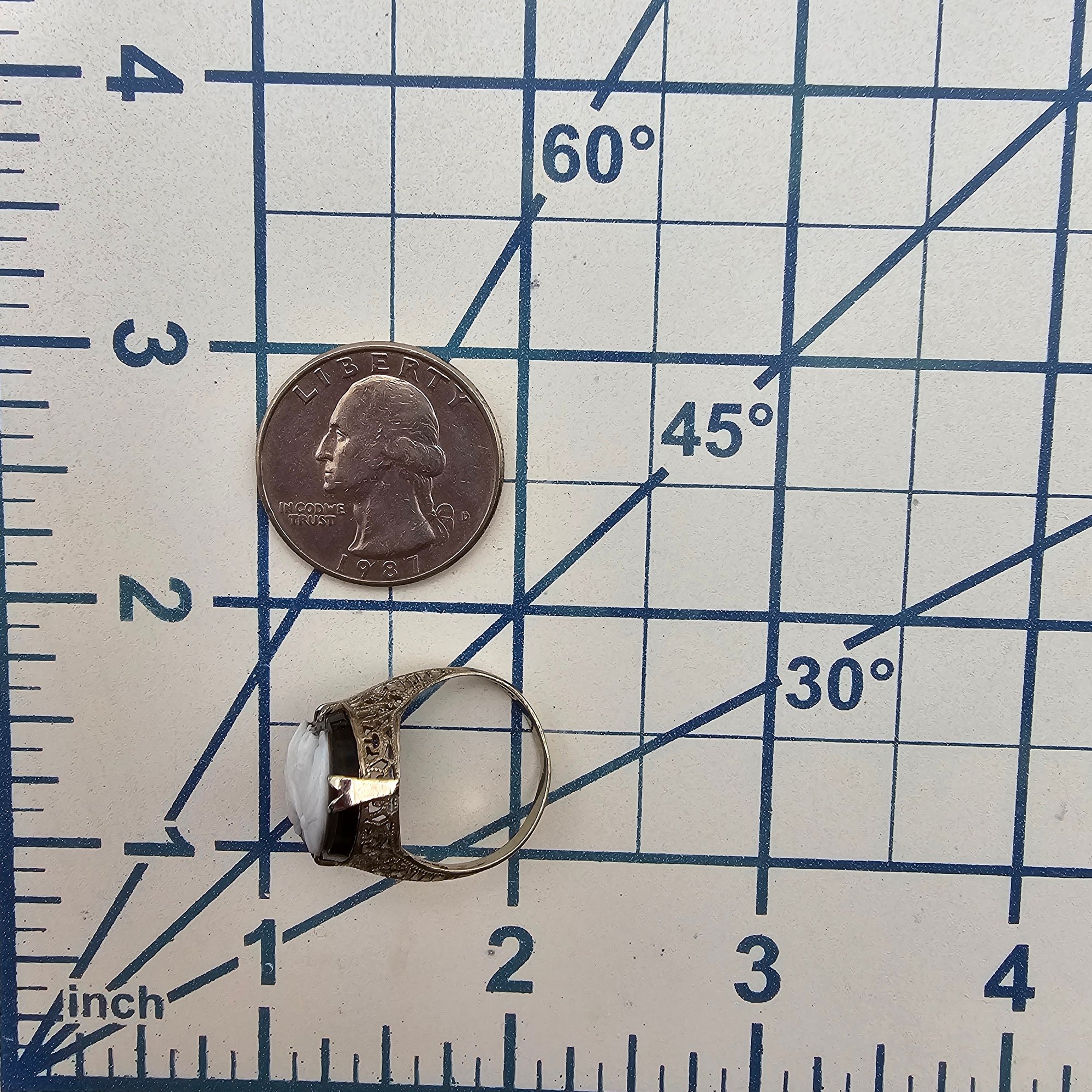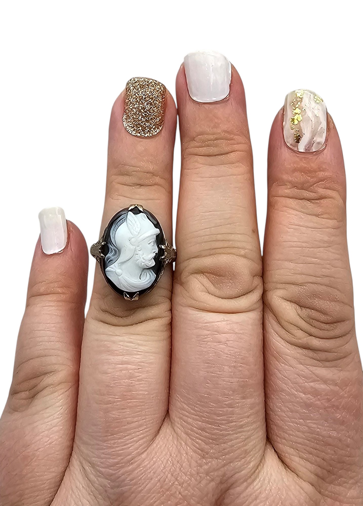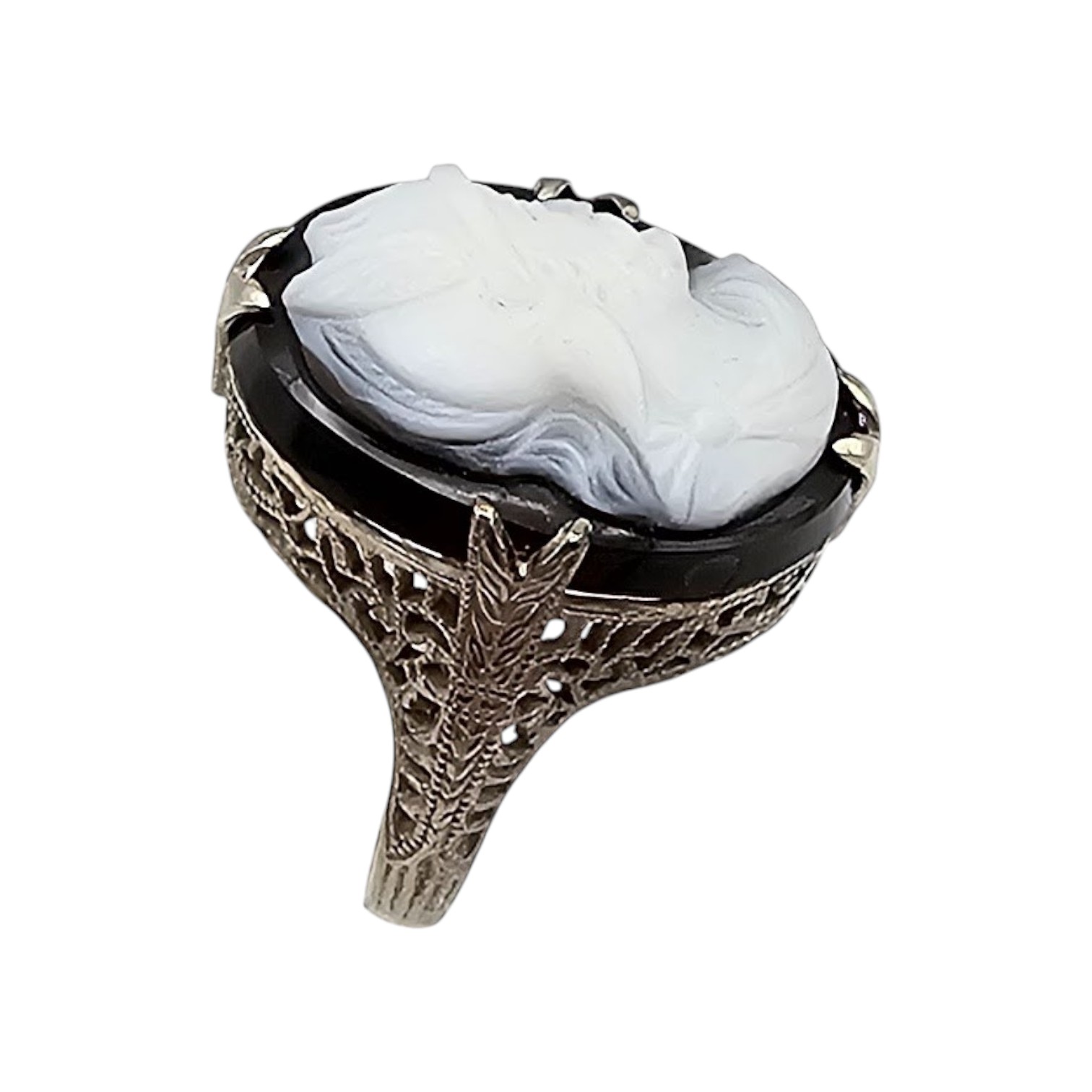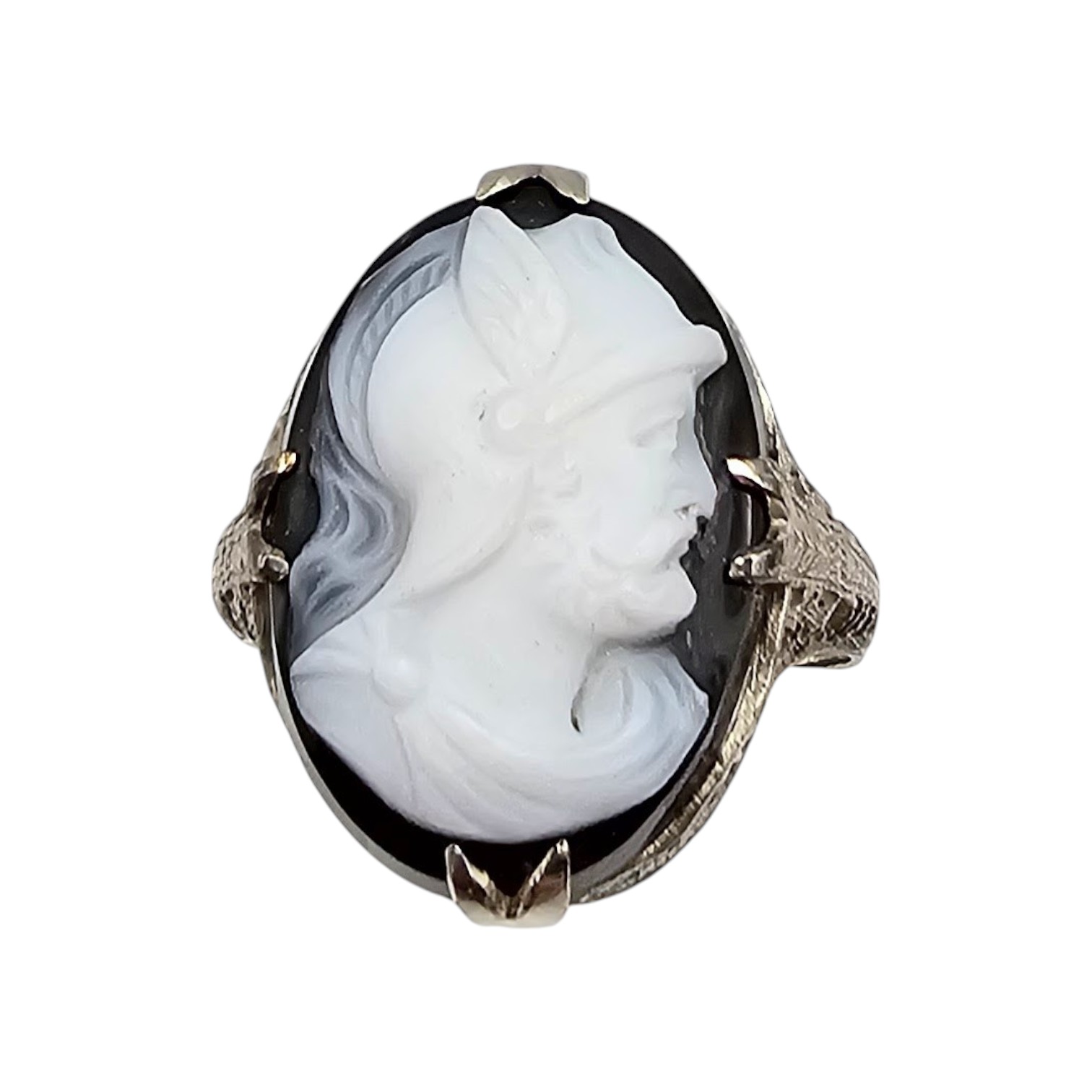 Vintage Mother Of Pearl Onyx 14K White Gold Roman Soldier Cameo Ring Size 6.25 3.6 G