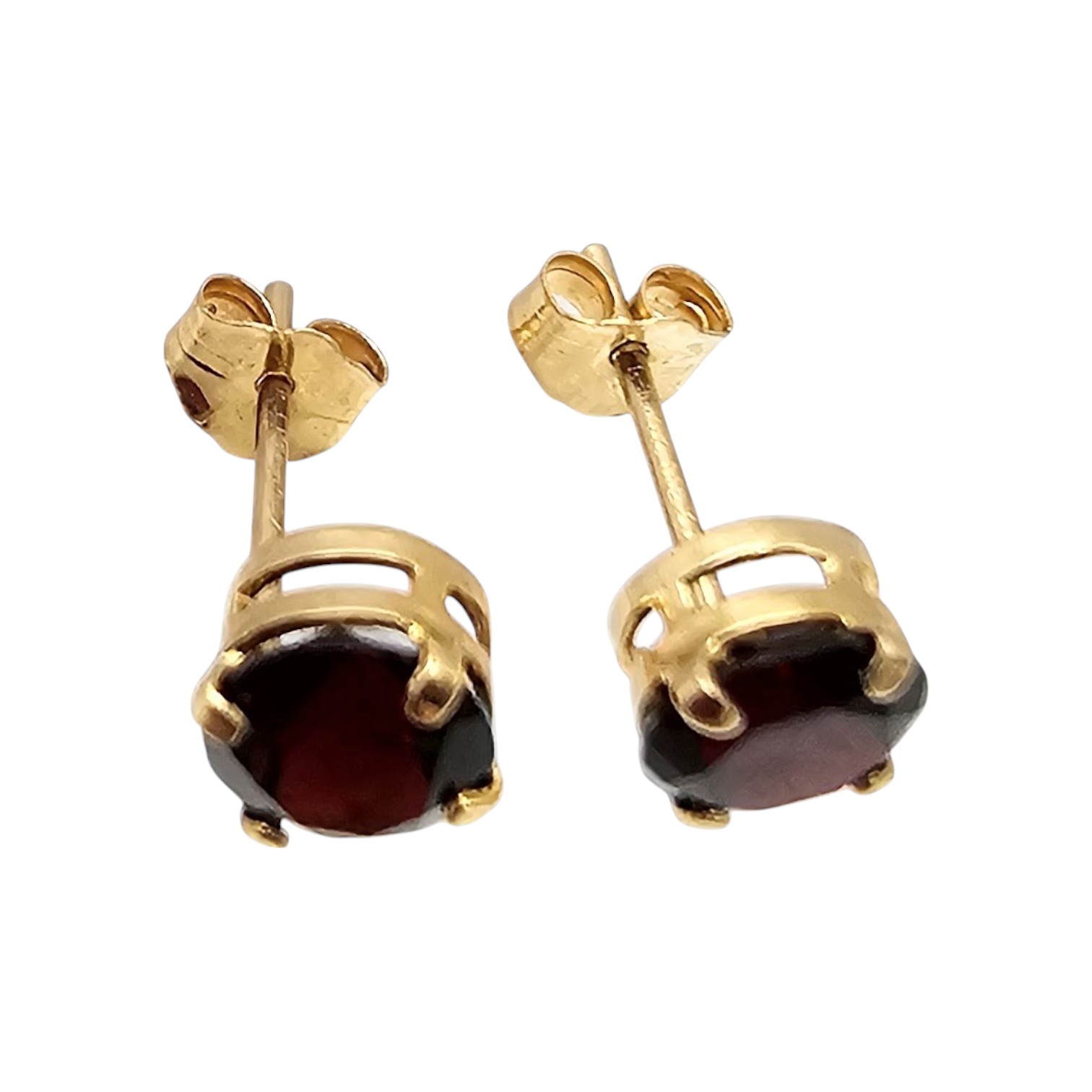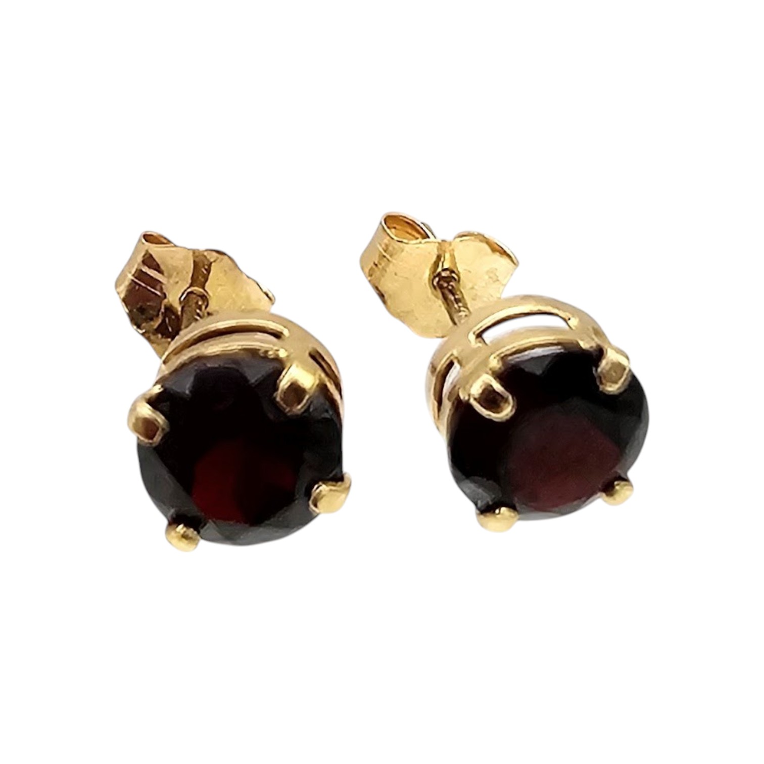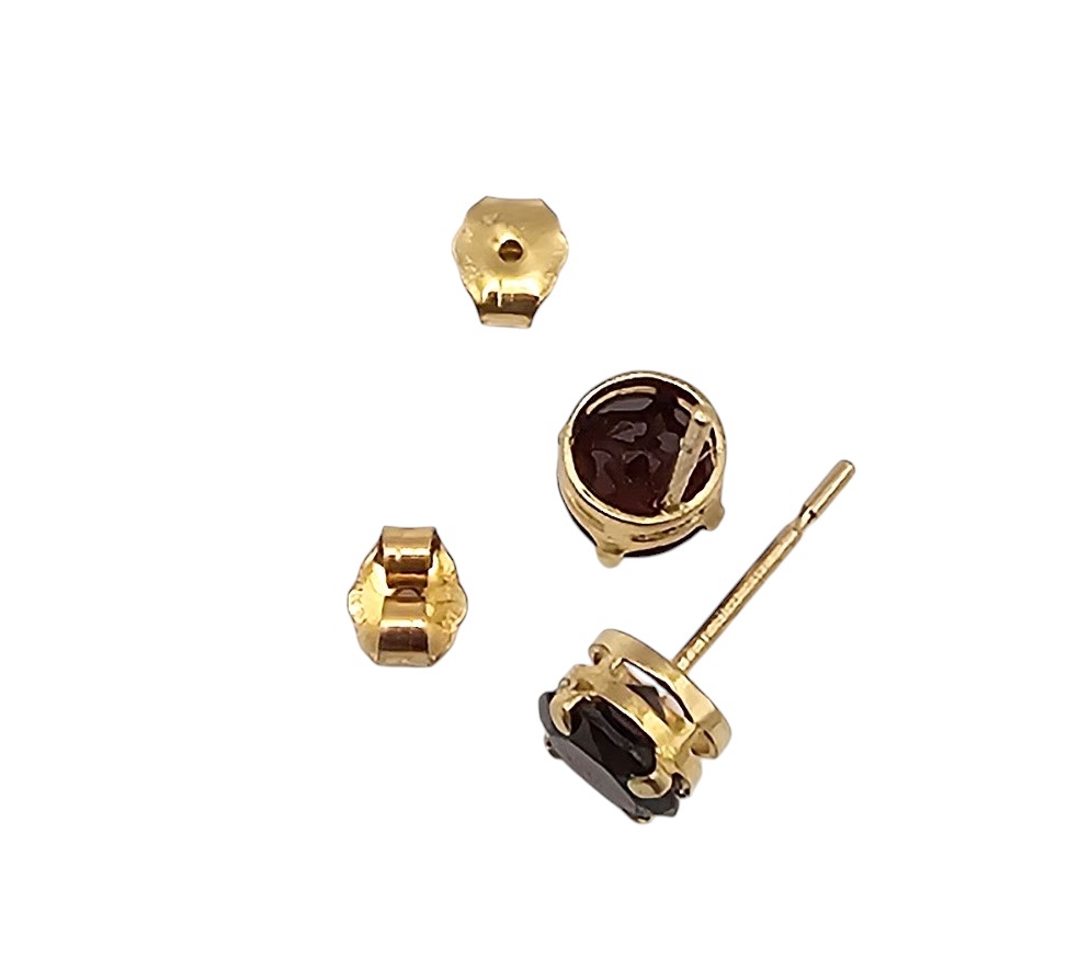 Mexico Garnet 14K Gold Stud Earrings 0.6 G