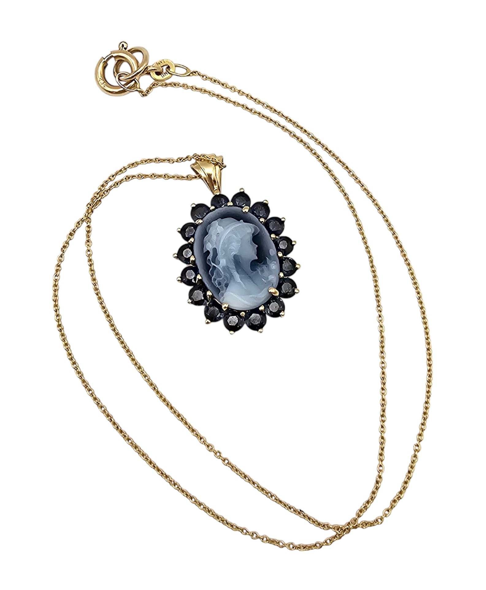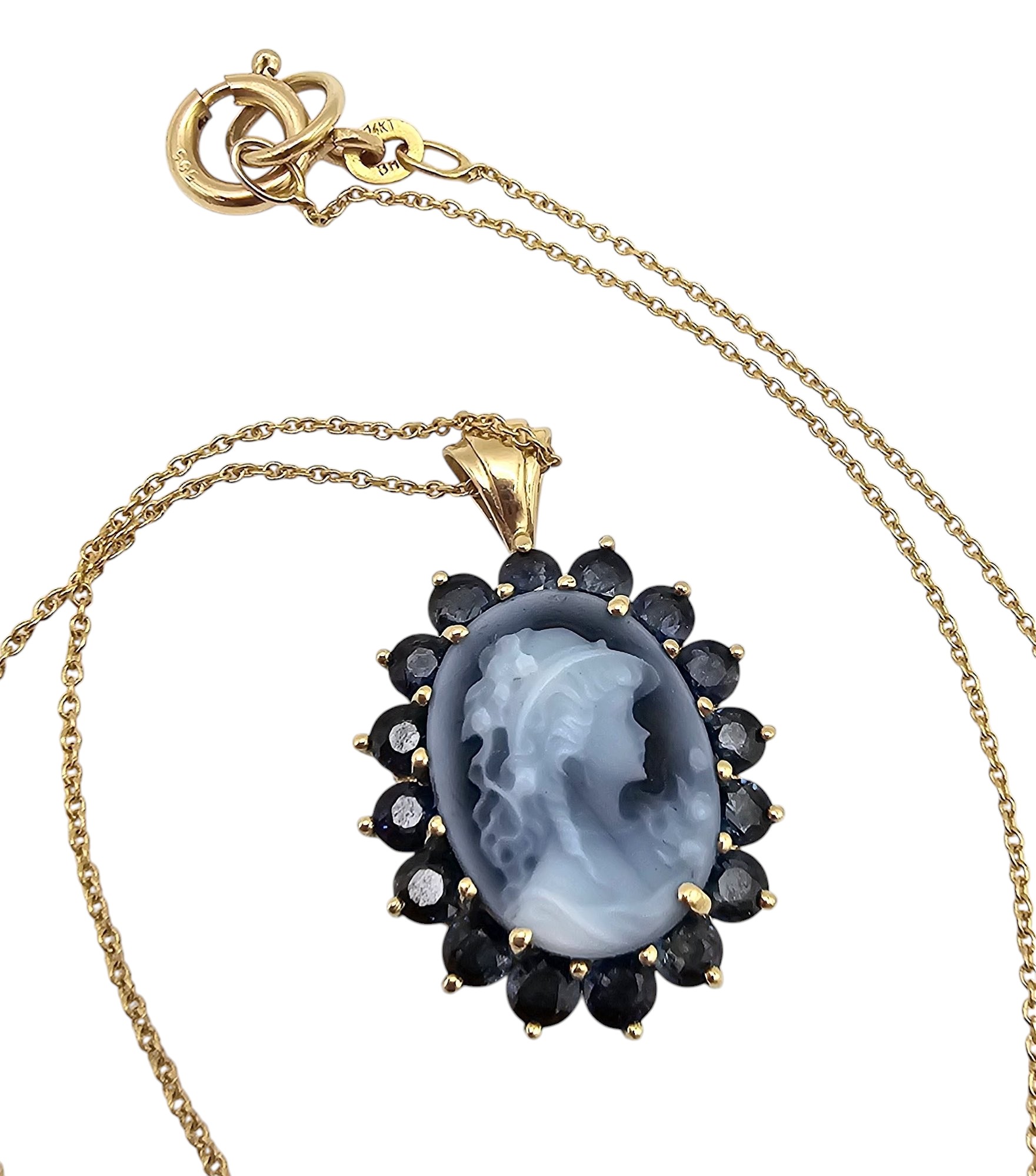 EFFY BH Blue Cameo Sapphire 14K Gold Necklace 6.8 G
