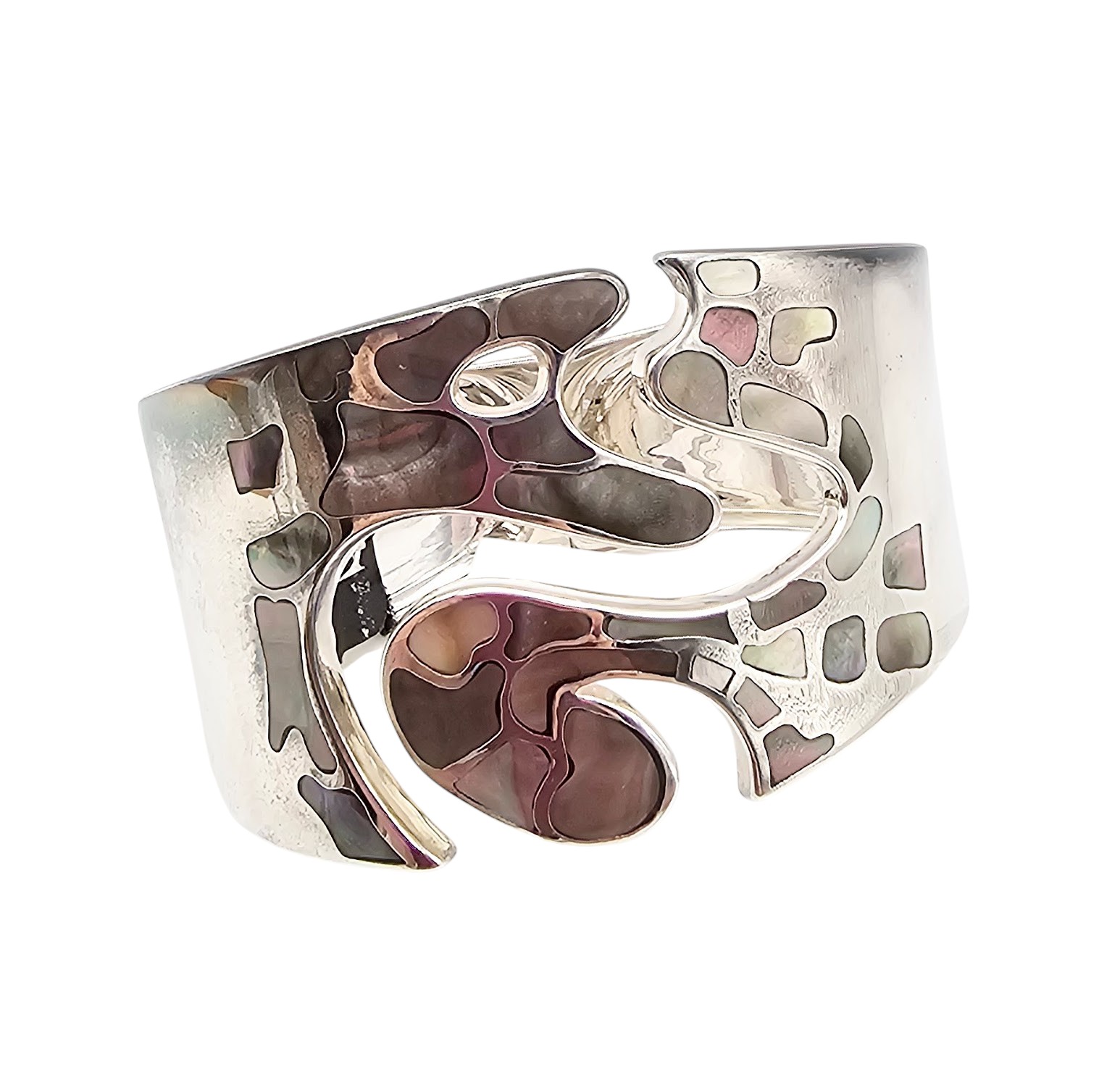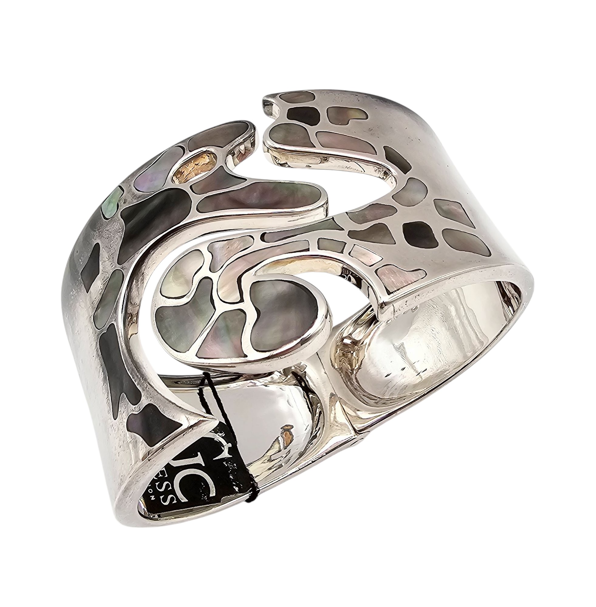 Guess Collection NWT abalone Sterling Silver Hinge Bangle Bracelet 92.5 G