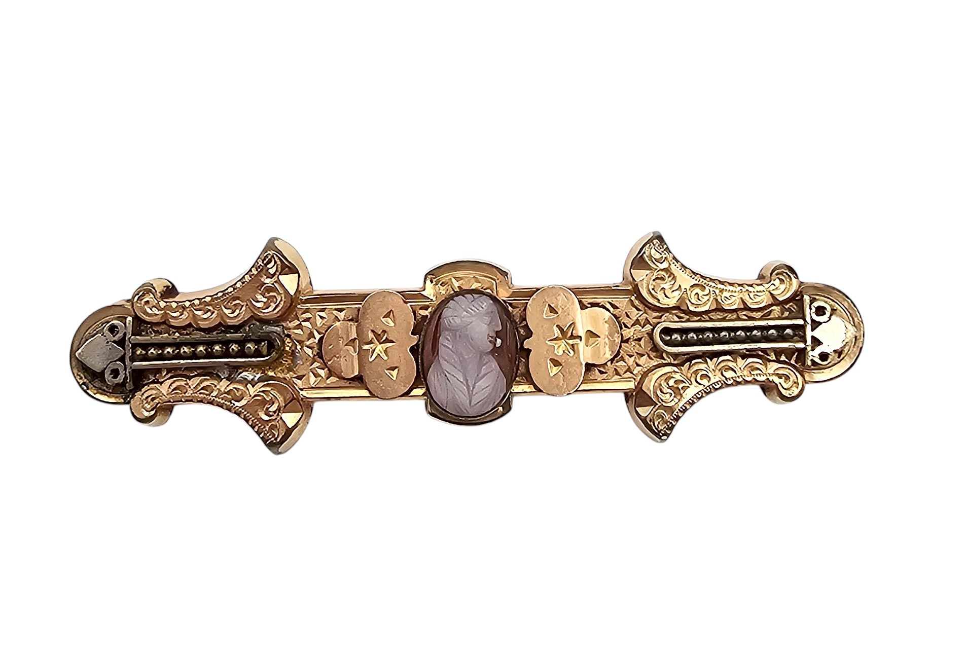 Victorian Vintage Gold Filled Carved Cameo Bar Pin 7.6 G