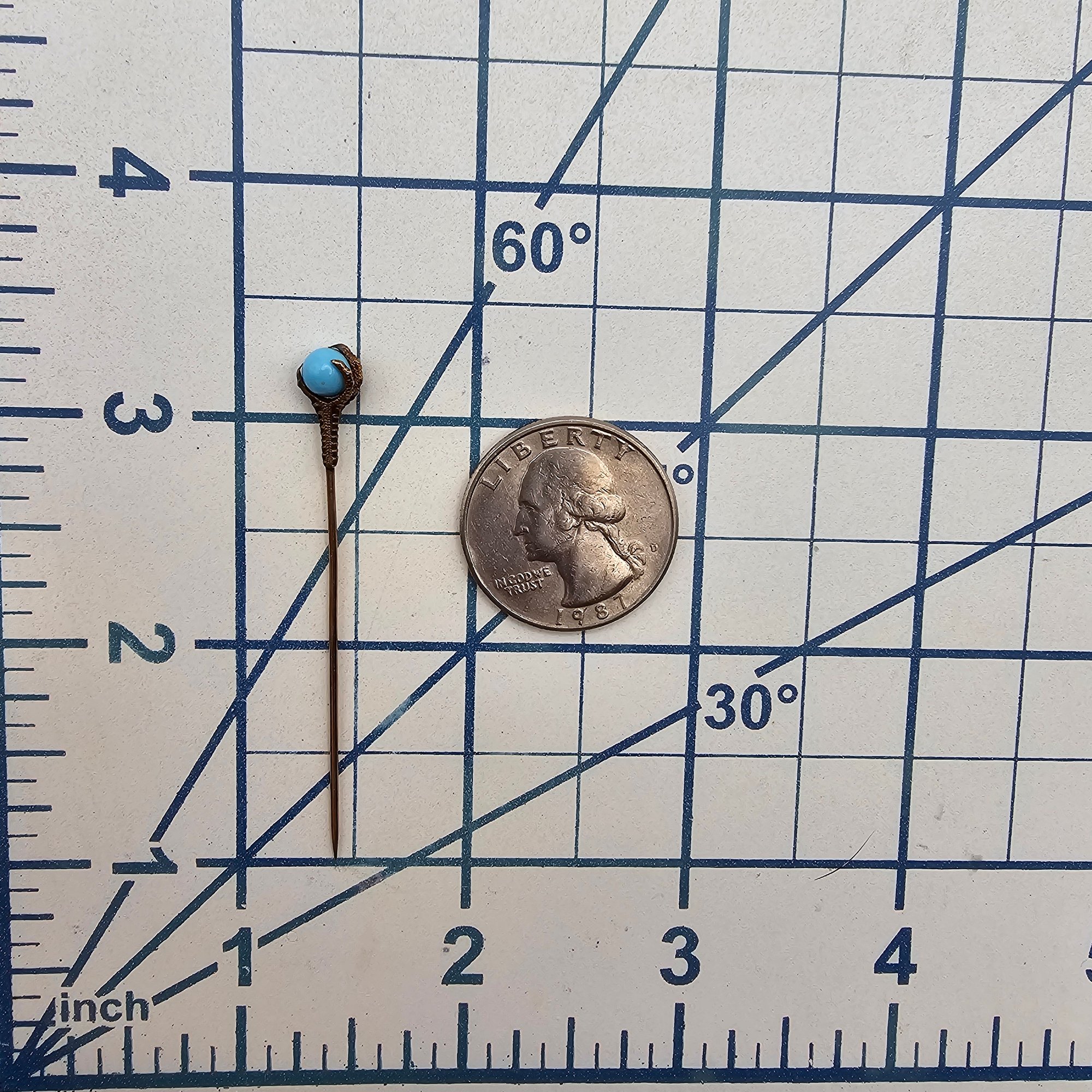 Vintage Turquoise 10K Gold top Raven Claw Stick pin 1.3 G