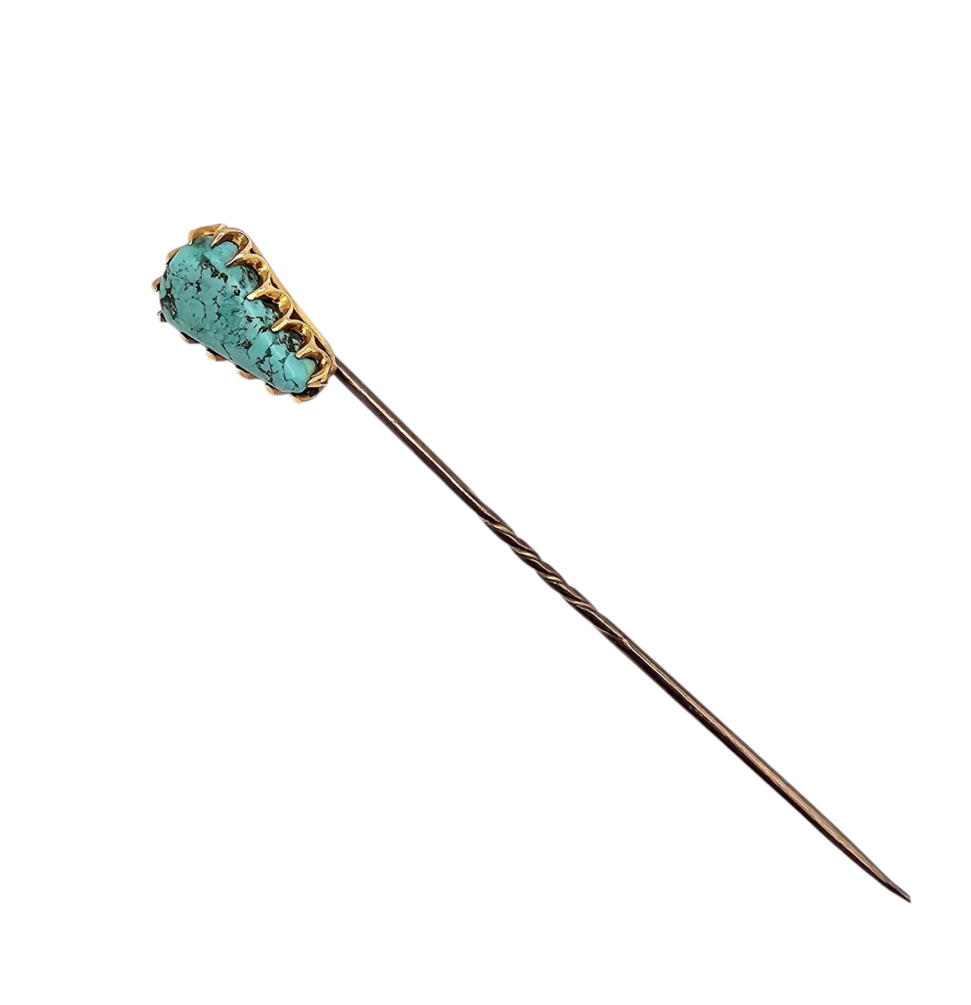 Vintage Turquoise 14K Gold Top Stick Pin 3.5 G