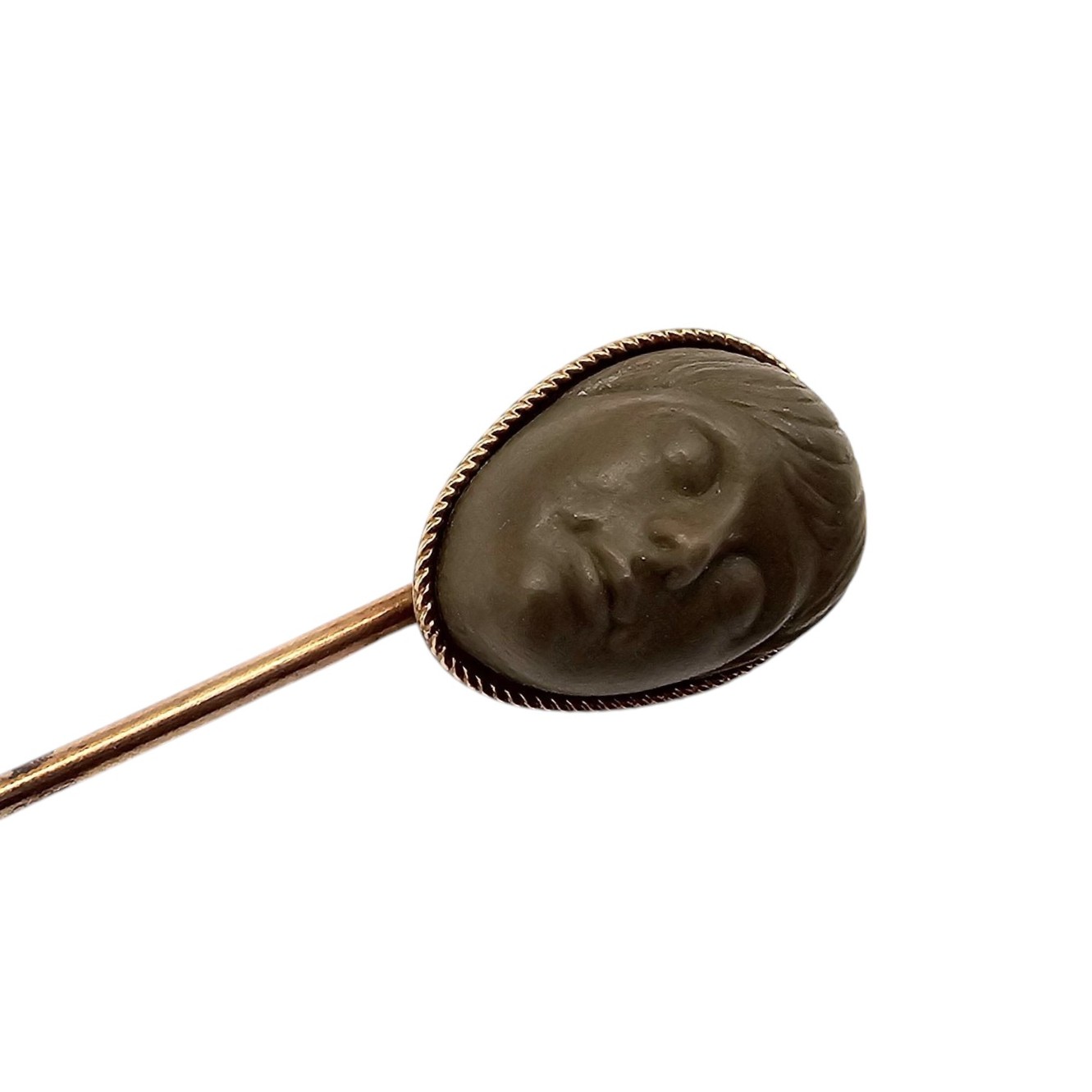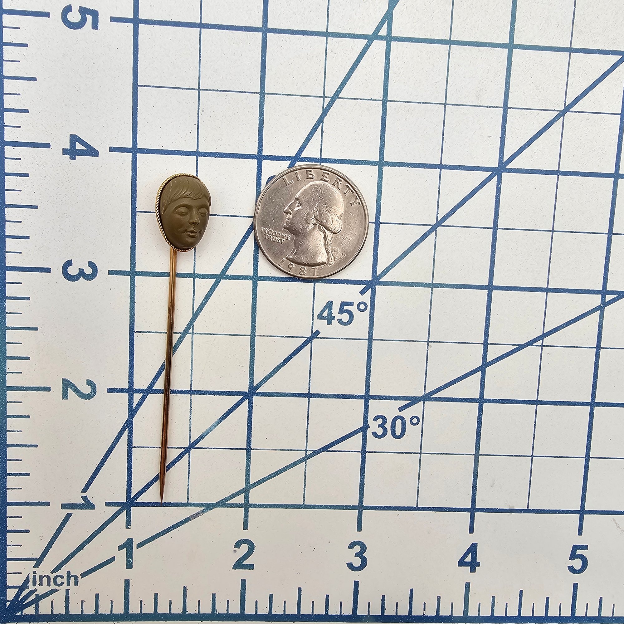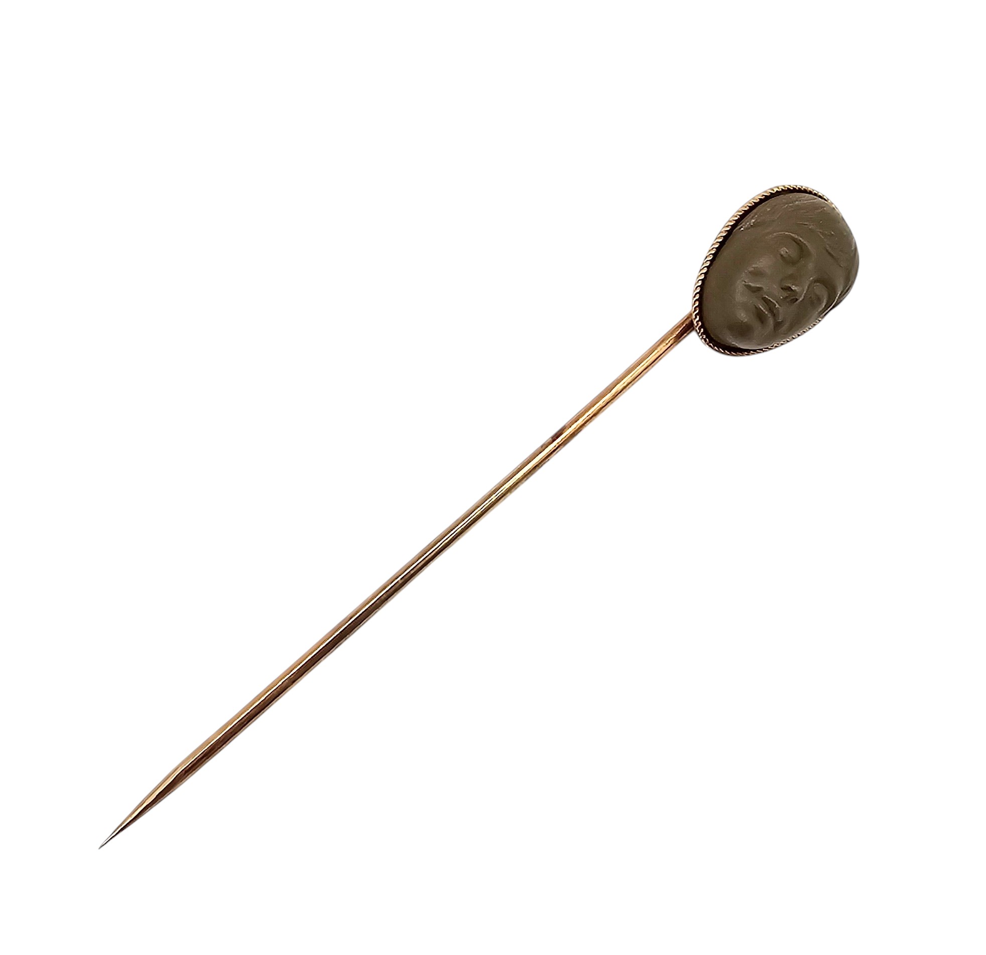 Vintage Carved Face 14K Gold Top Stick Pin 3.3 G