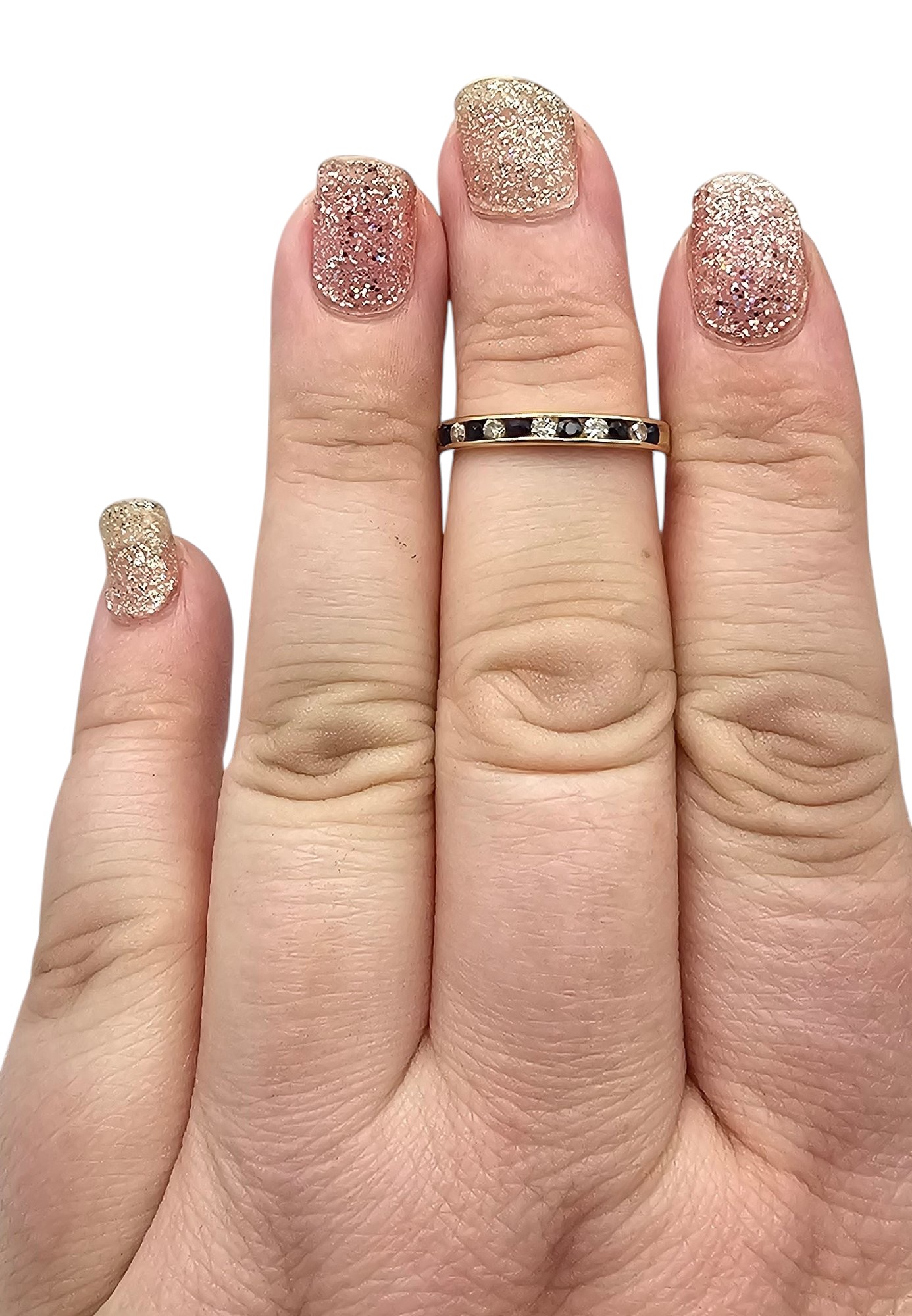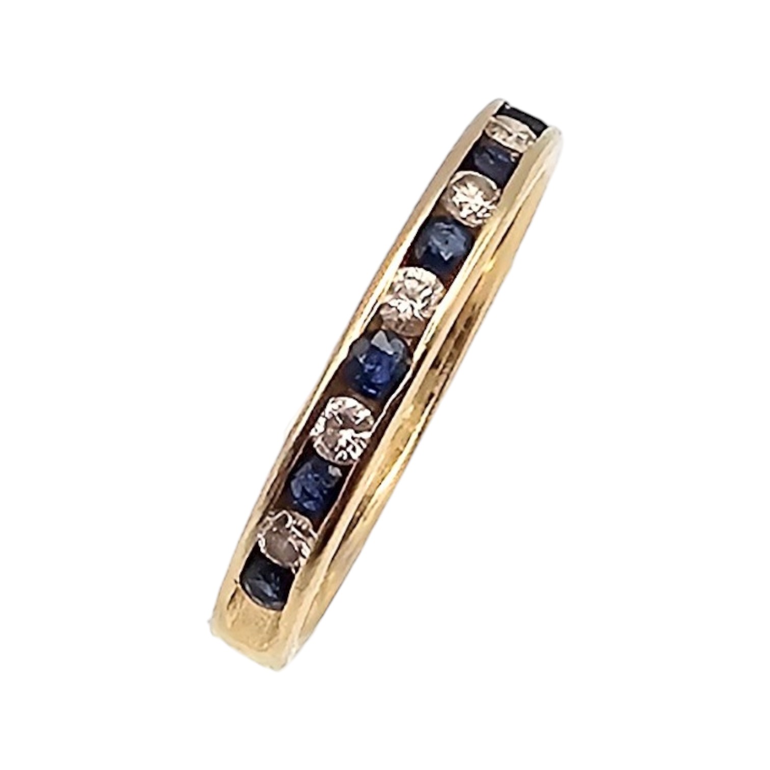 14K Gold Diamond Sapphire Wedding Band Size 6.25, approx .03 diamonds and sapphires